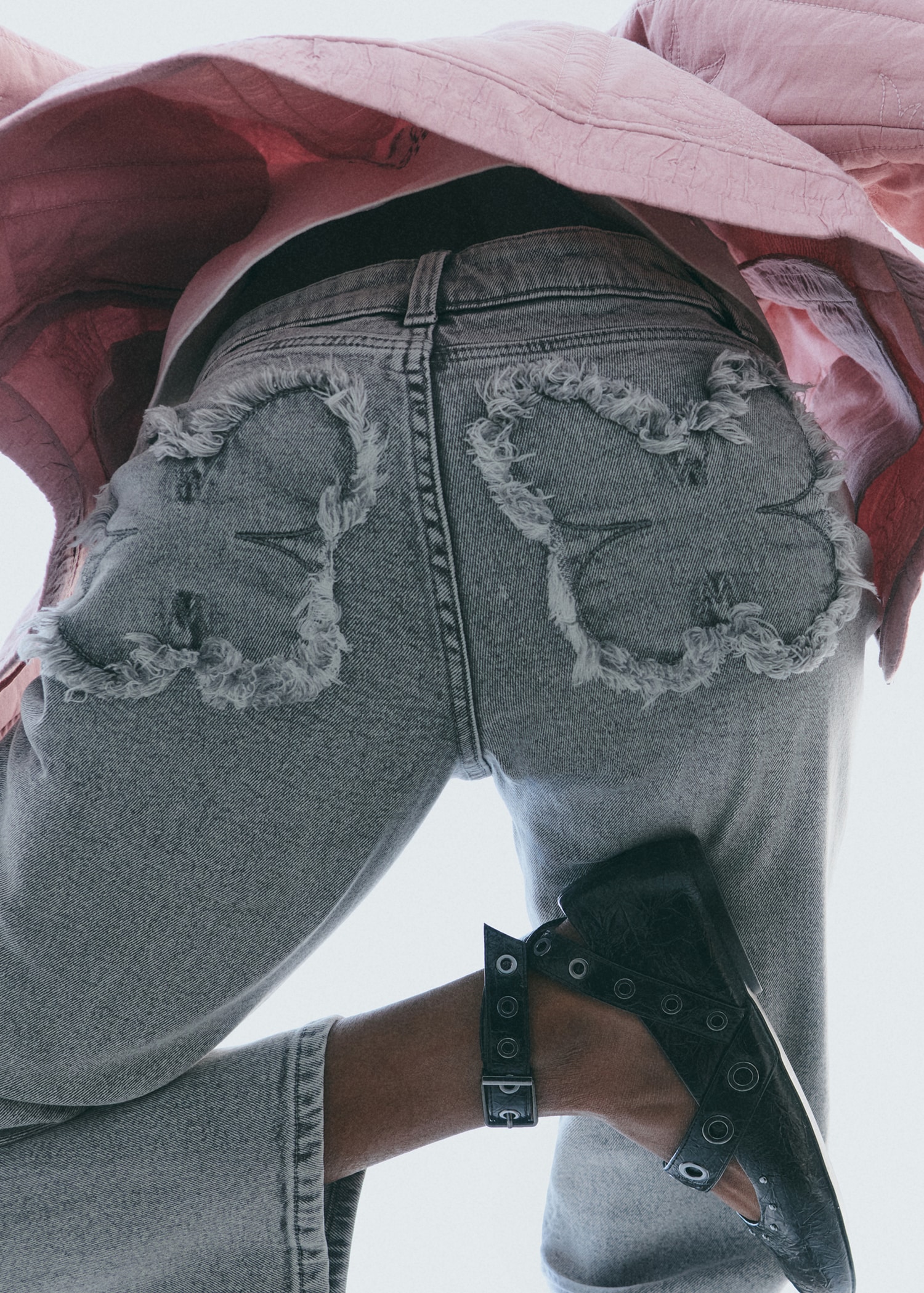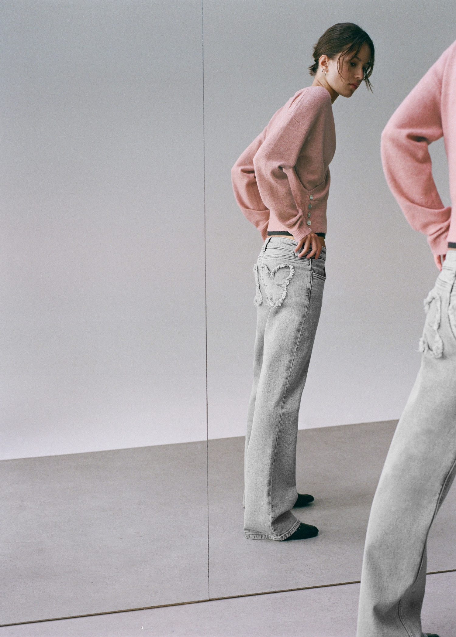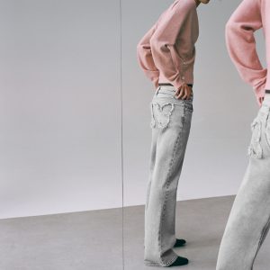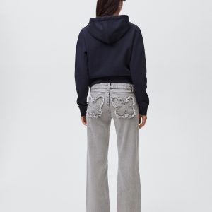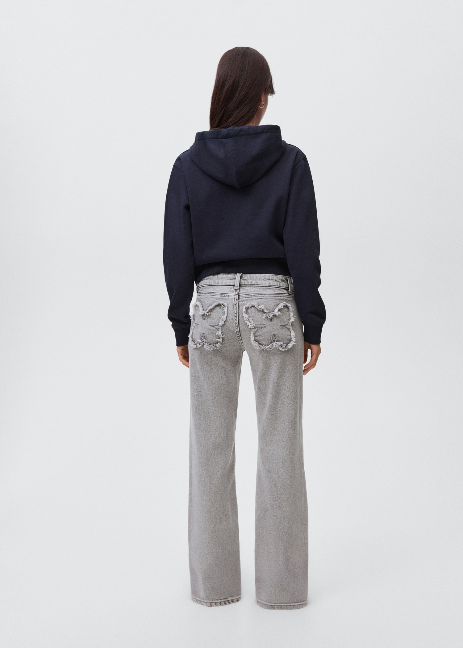 Straight jeans with embroidered butterflies