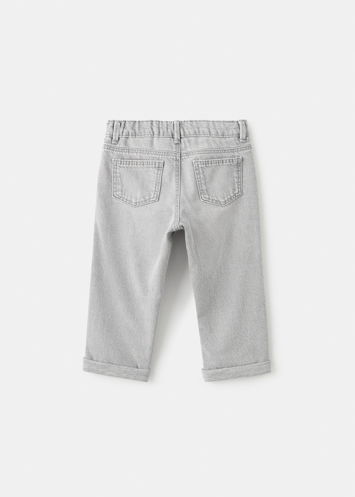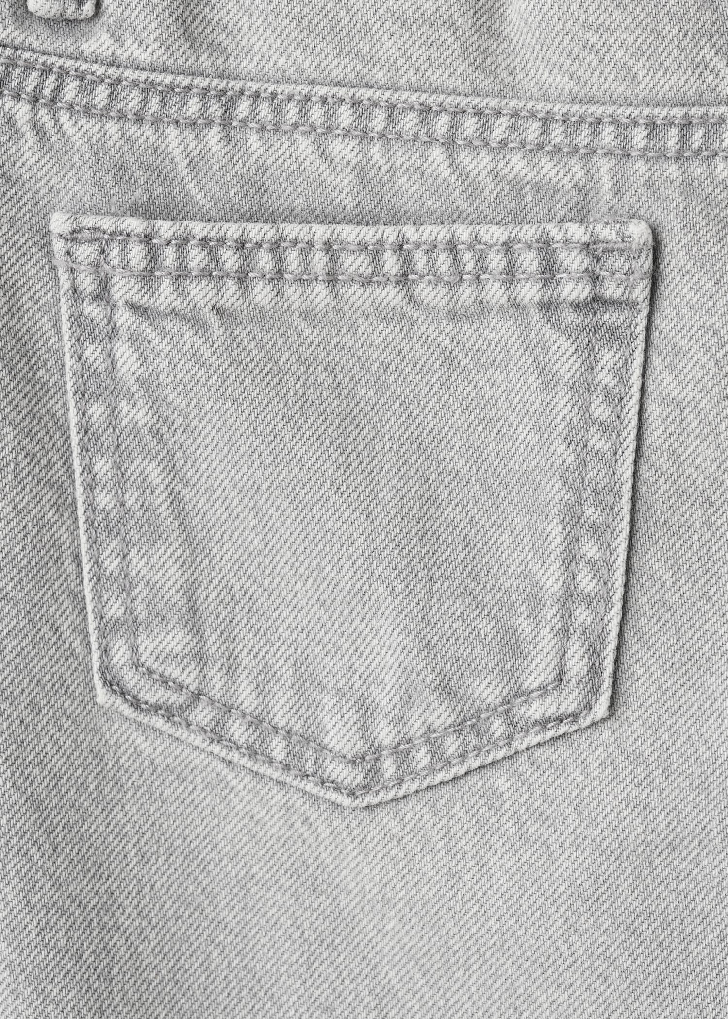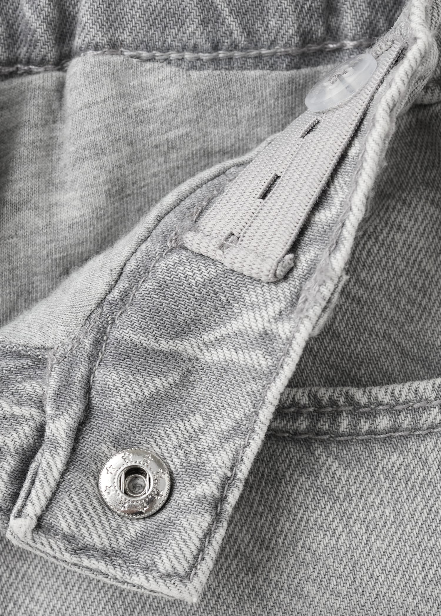 100% cotton fabric. Long design. Straight Design. Belt loops. One press stud fastening. Two side pockets. Cuffed hem