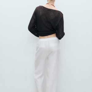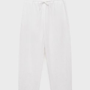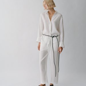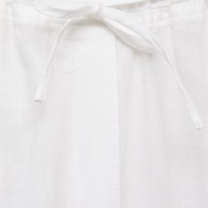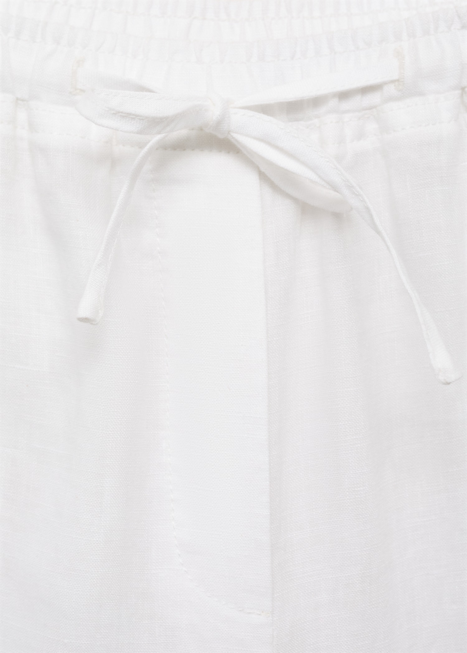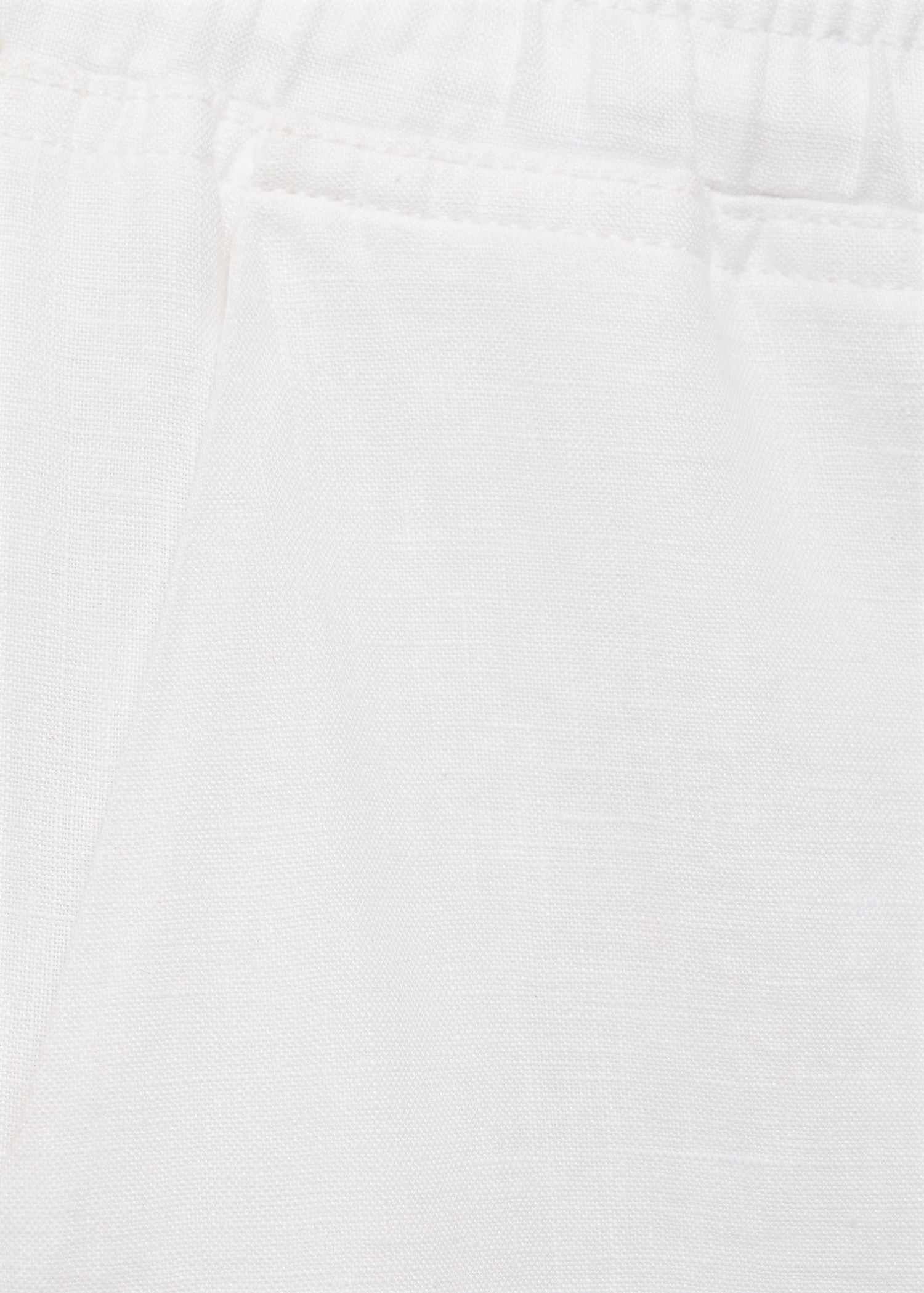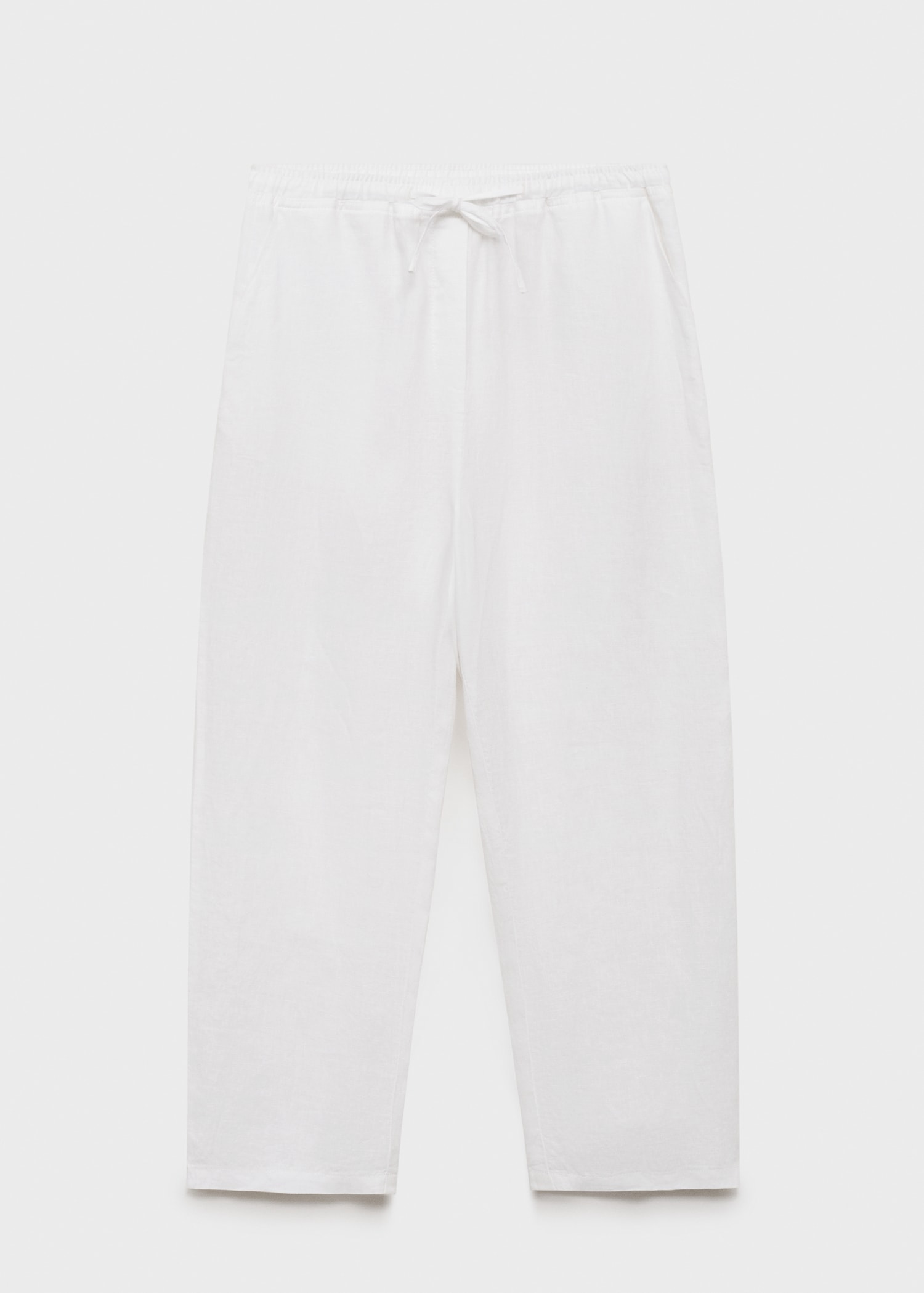 100% linen fabric. Straight design. Long design. High-rise. Elastic waistband. No closure. Promotional product