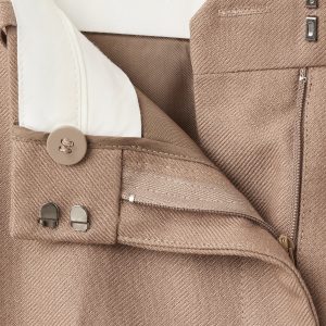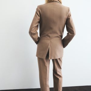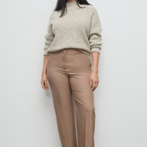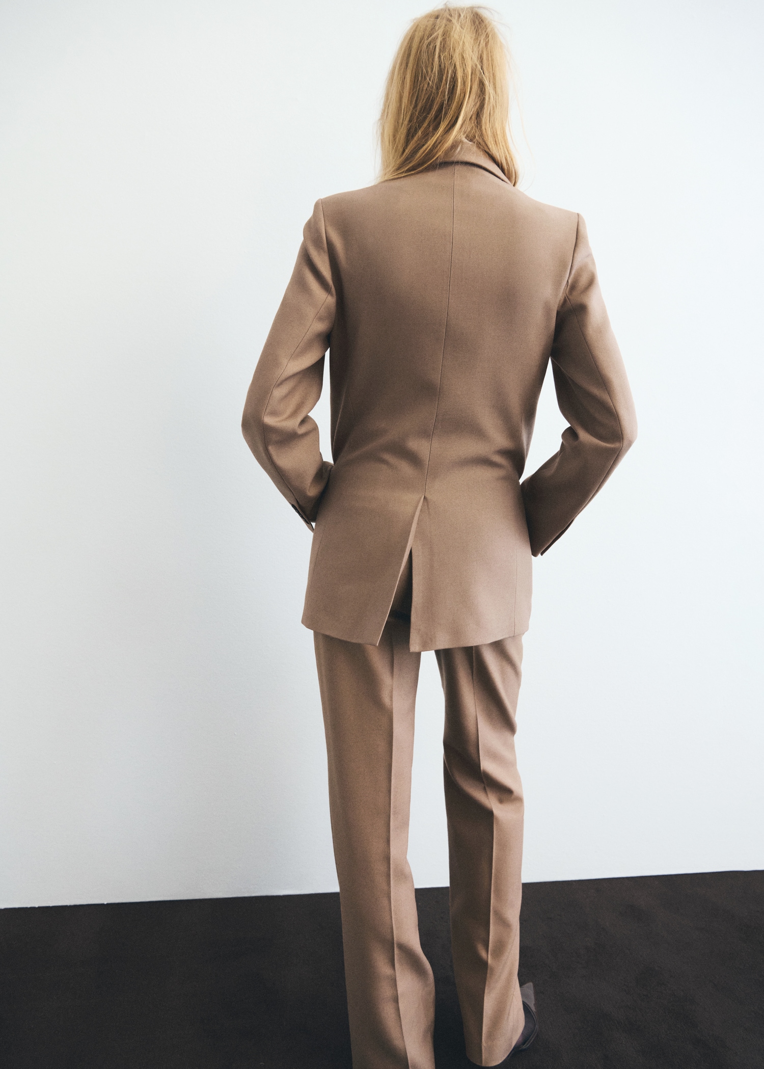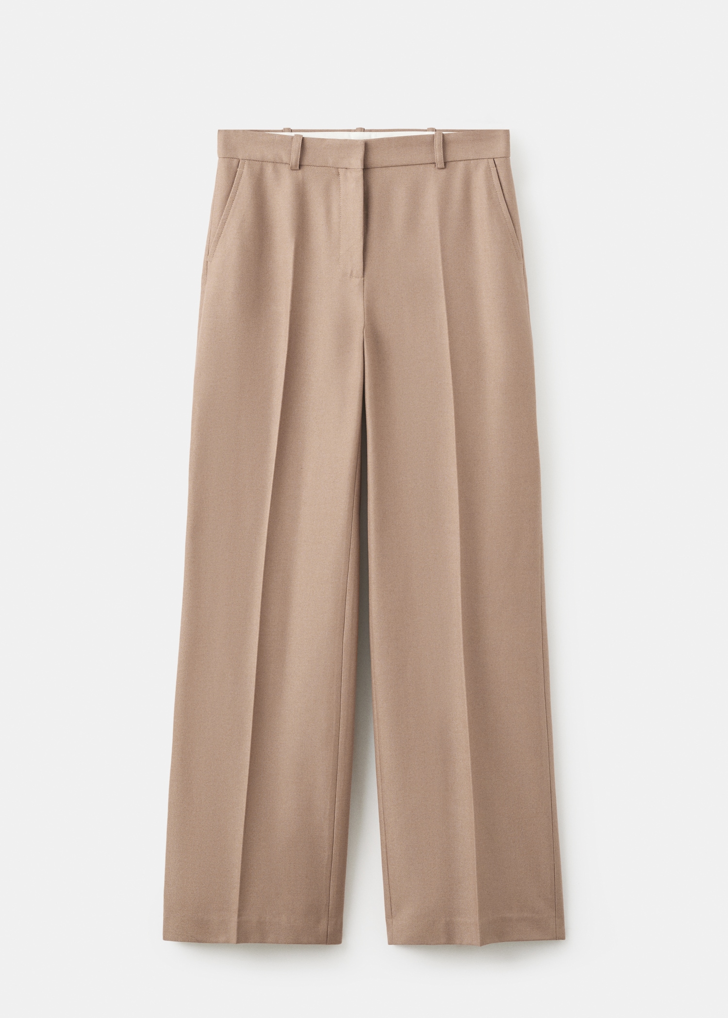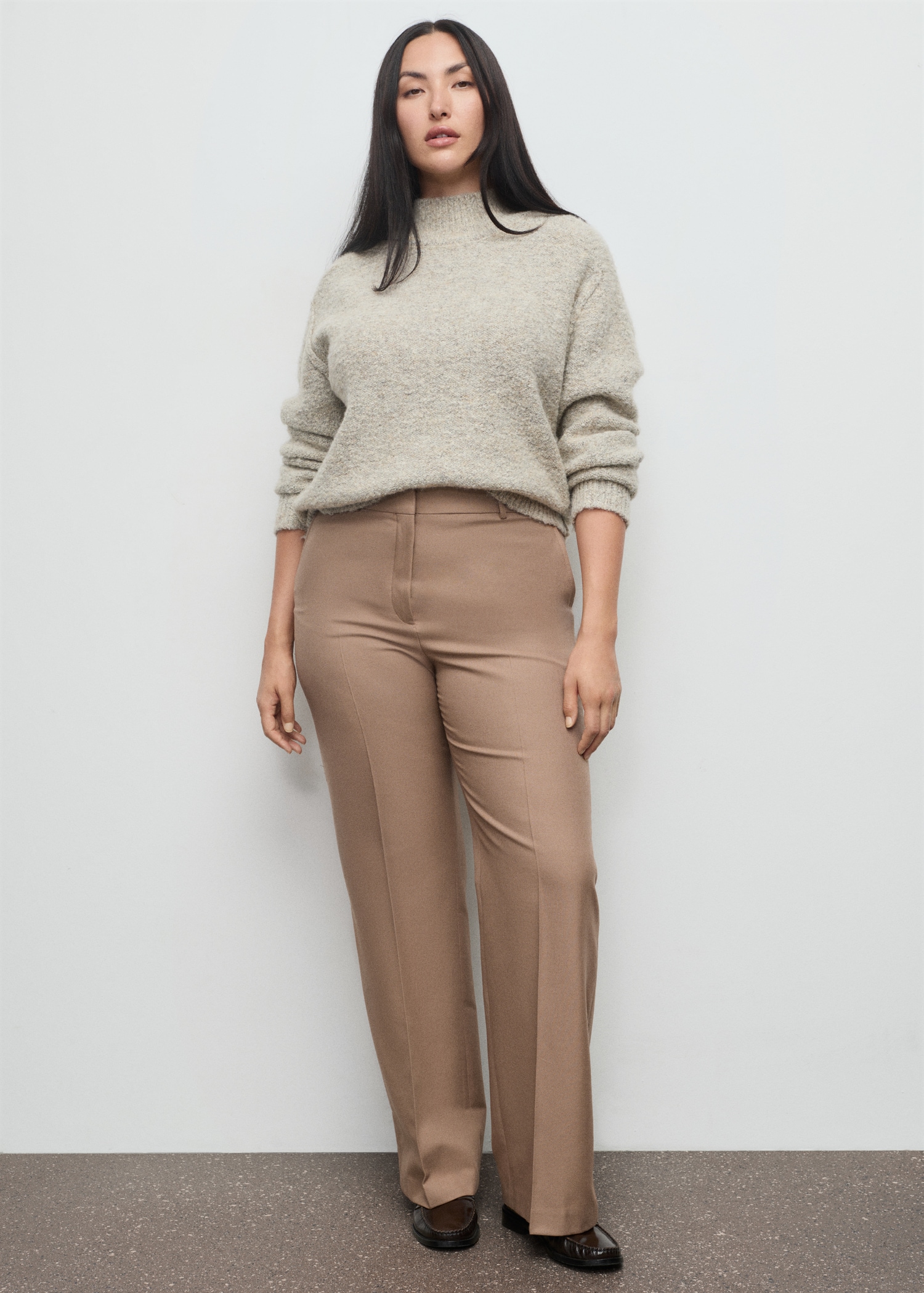 Wool mix fabric. Long design. Straight Design. Mid-rise. Belt loops. Two side pockets. Two welt pockets at the back. Concealed button, hook and zip fastening. Inner lining. Total look. Available Plus