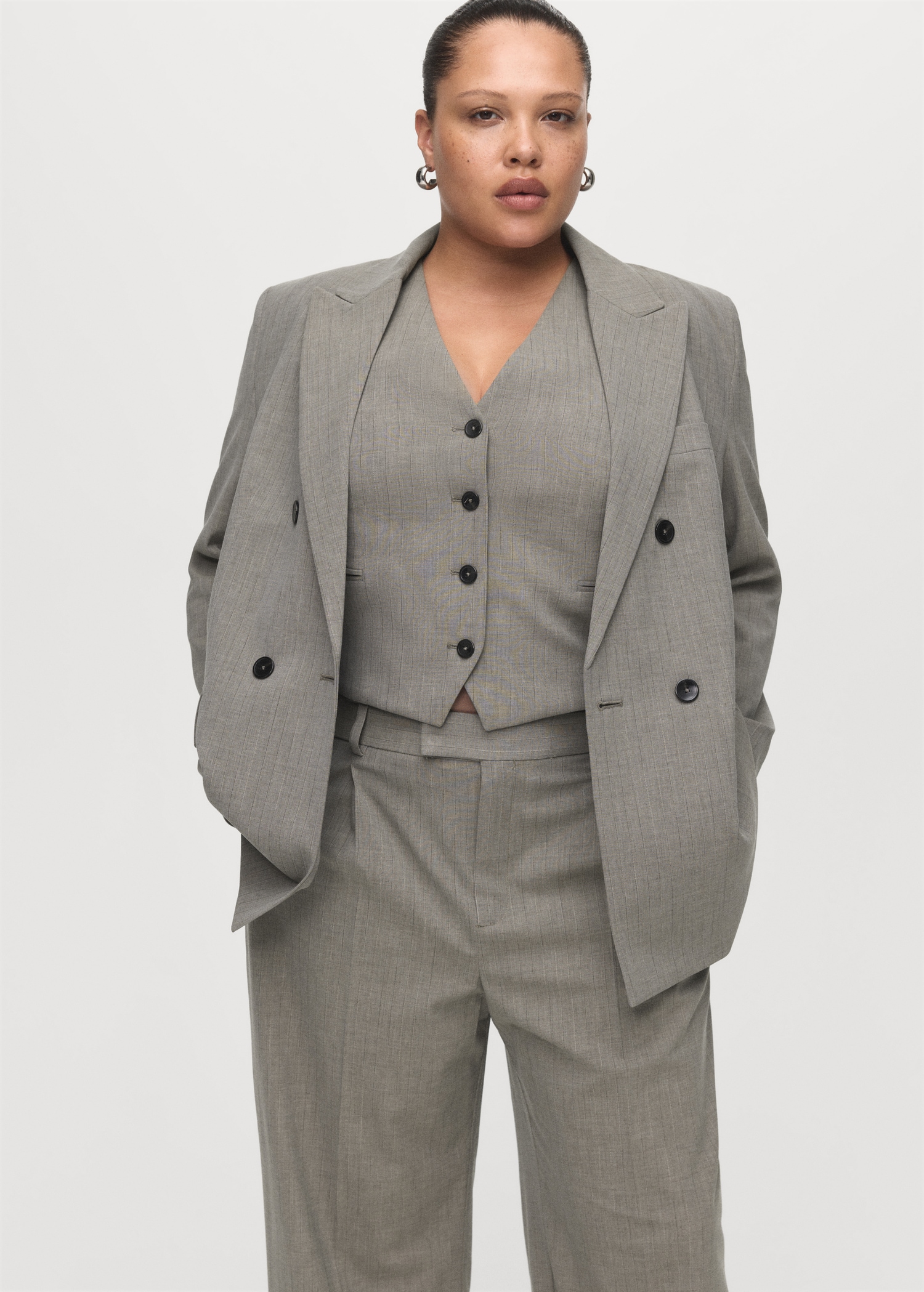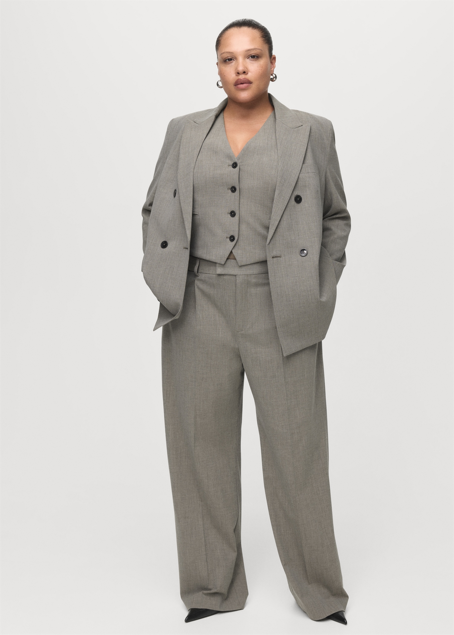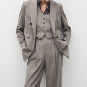 Straight wool-blend suit pants