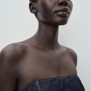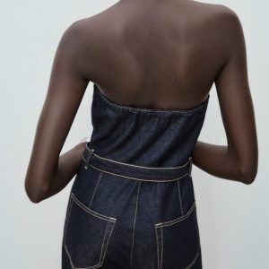 Strapless denim jumpsuit