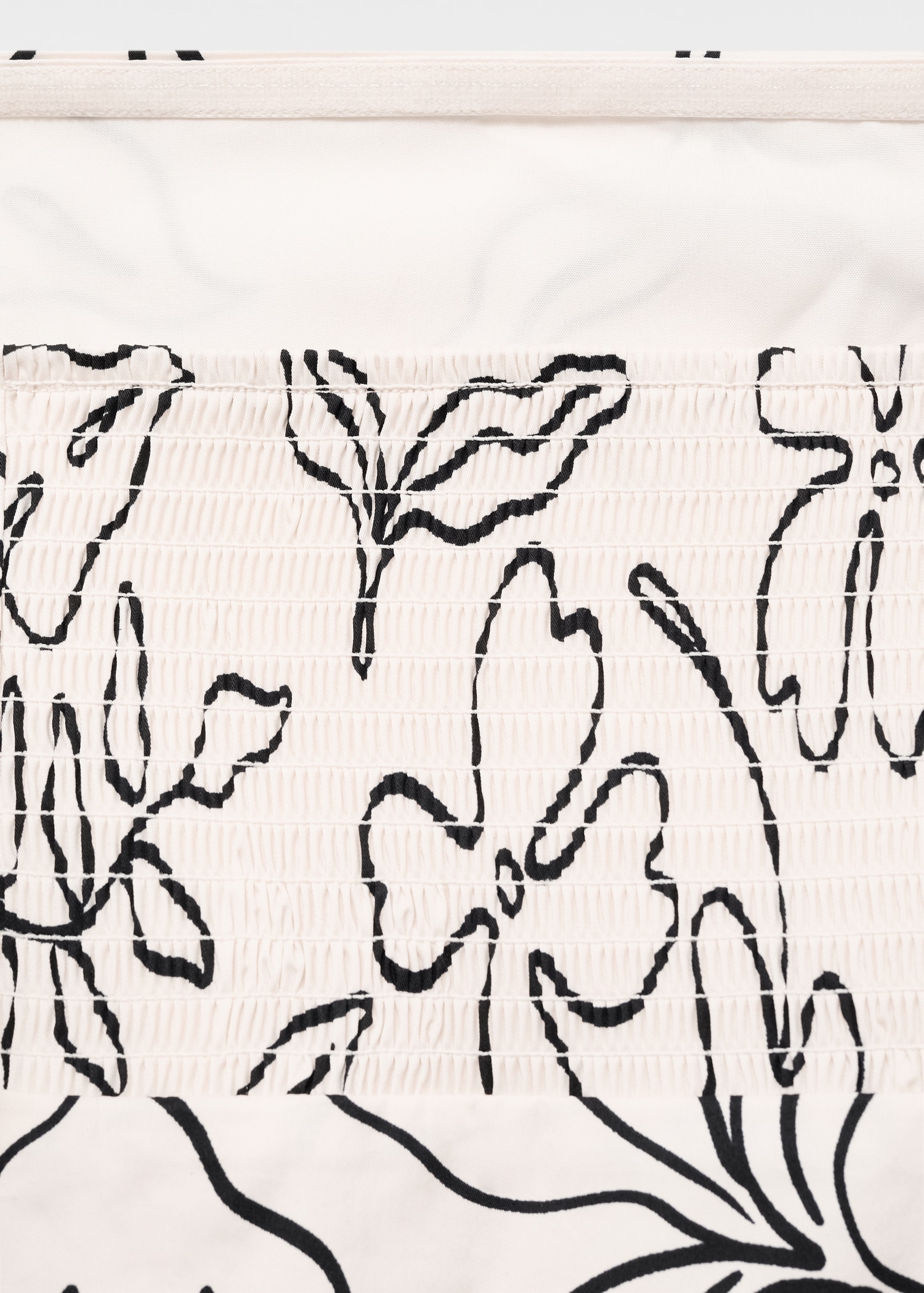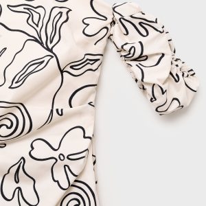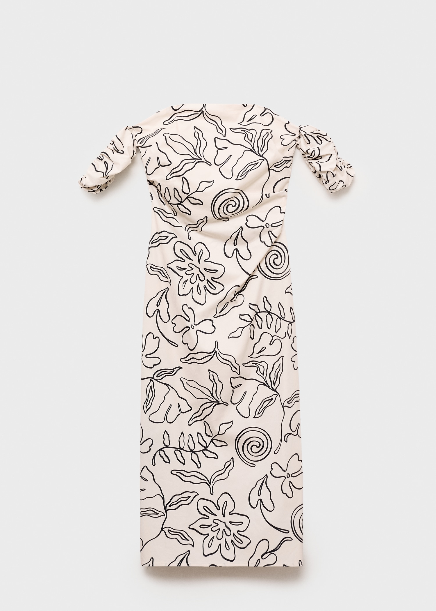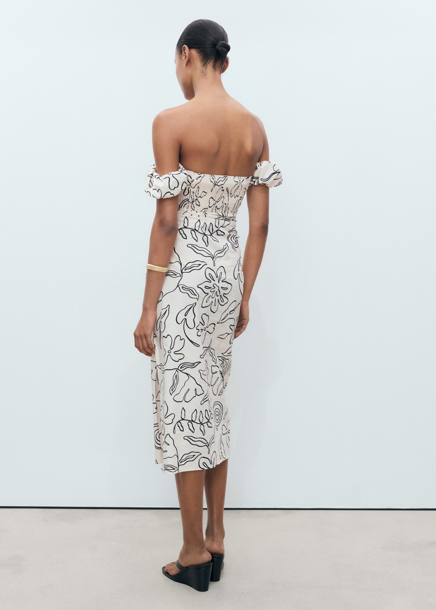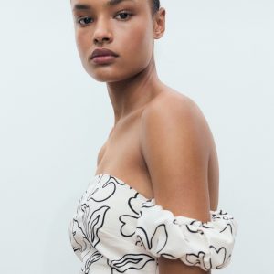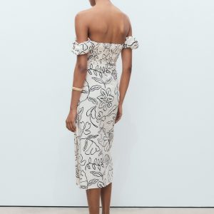 Straight Design. Midi design. Floral print. Strapless. Puffed short sleeve. Side opening on the hem. Side zip closure. Inner lining. This garment is part of our casual collection, designed to stylishly accompany you in your day-to-day life