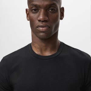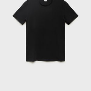 Slim fit. Stretch fabric. Light cotton. Crew neck. Straight hem. Short sleeve. Basic design. Stretch fit. Stretch cotton fabric. Cotton fabric. Standard Length. Sustainable cotton. Slim Silhouette. 95% cotton fabric. Short sleeves. Round Lapel Collar. Short Sleeve Length. We are working to reduce the impact of garment manufacturing on the planet. Growing sustainable cotton restricts the use of chemical products. It also saves water, energy and keeps farming land clean. Sustainable Materials. Tailored Design. Central theme