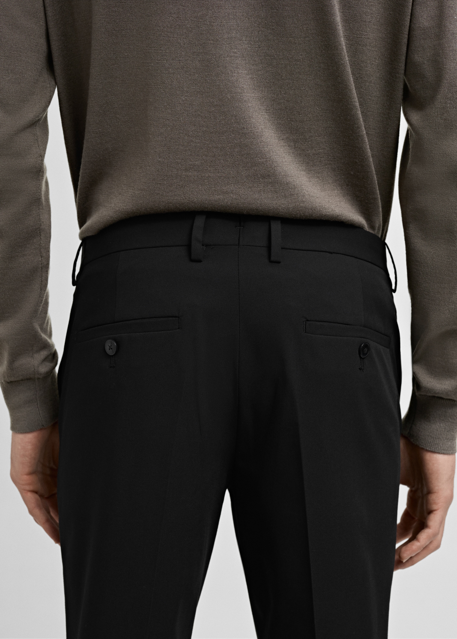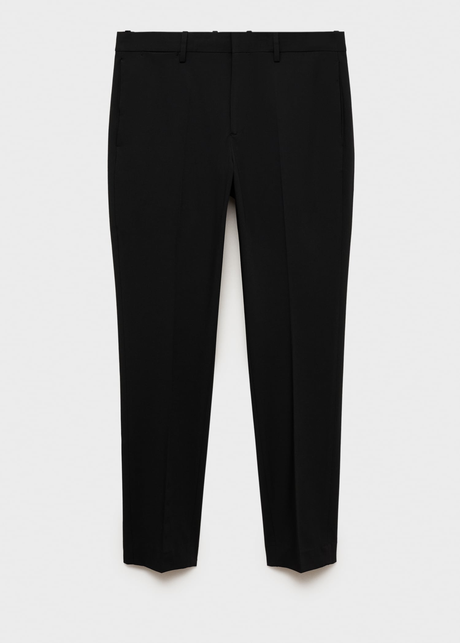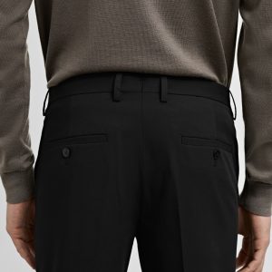 Slim fit. Tailoring collection. Belt loops. Front closure with double-breasted buttons and zipper. Side pockets. Two welt pockets with button at the back. Ironed stripe detail at front and back. Super slim fit. Standard Length. Comfort Stretch: Stretch fabric that provides extra comfort. Stretch fabric providing maximum comfort and freedom of movement. Light Flat Structure. Fabric made of recycled polyester, a durable, breathable, easy-care fiber that provides comfort in use. Front zipper, hook and double button closure. Mid-rise. Front Closure Location. Regular Waist Rise. Concealed button, hook and zip fastening. Coin pocket. Silhouette Super Slim Fit. Belt loops. Two front pockets. Two side pockets. Concealed coin pocket at hip level. Two welt pockets with button at the back. Comfort: Horizontal and vertical stretch fabric for added comfort. Tailored line. Short design. Notch lapels. Button closure. Double back slit. Two pockets with flaps on the front. Inner lining. Interior pocket. Customizable inside label. Long buttoned sleeves