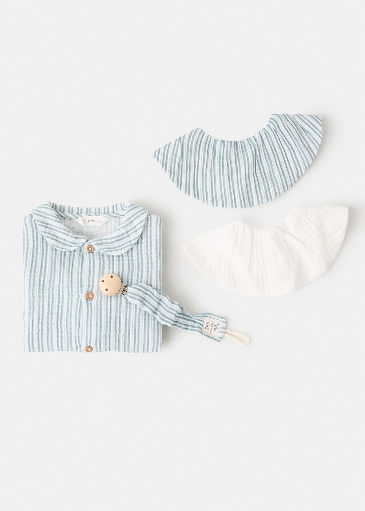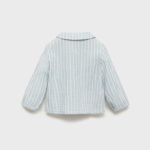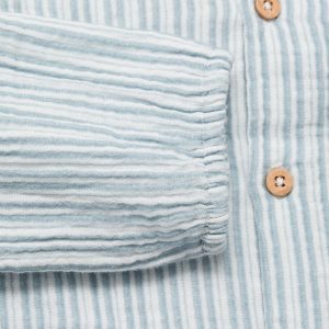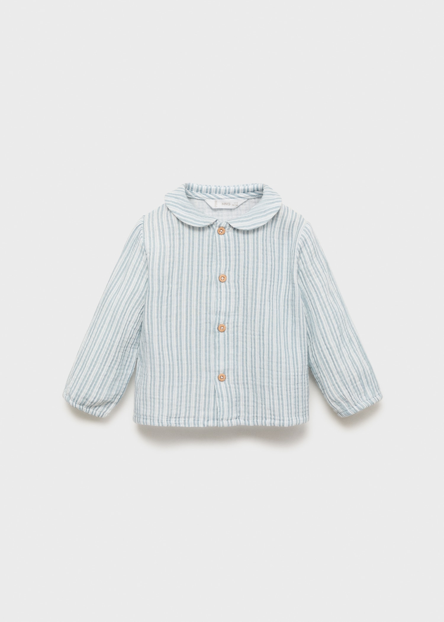 100% cotton fabric. Straight Design. Striped design. Peter Pan collar. Long Sleeve. Front button closure