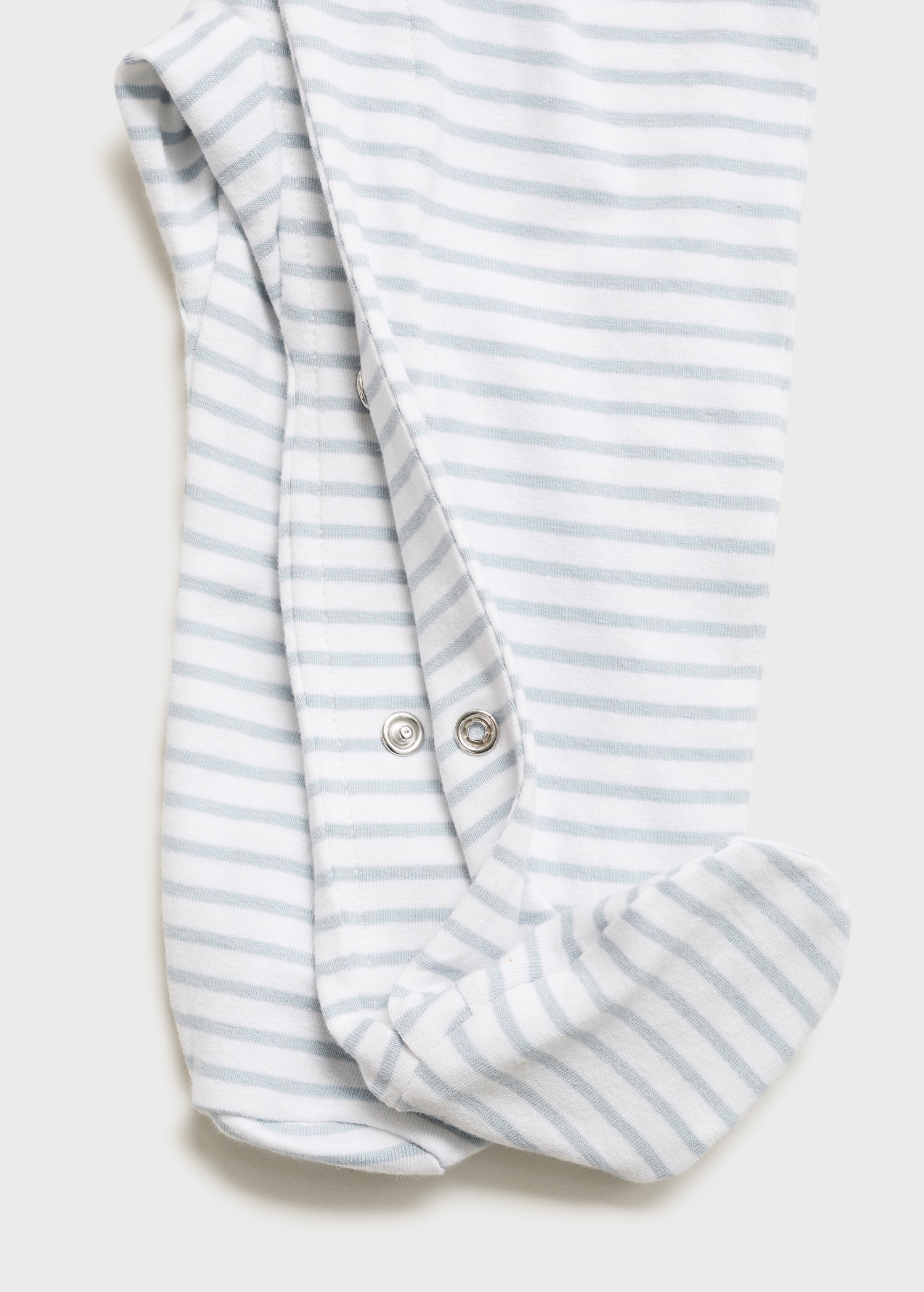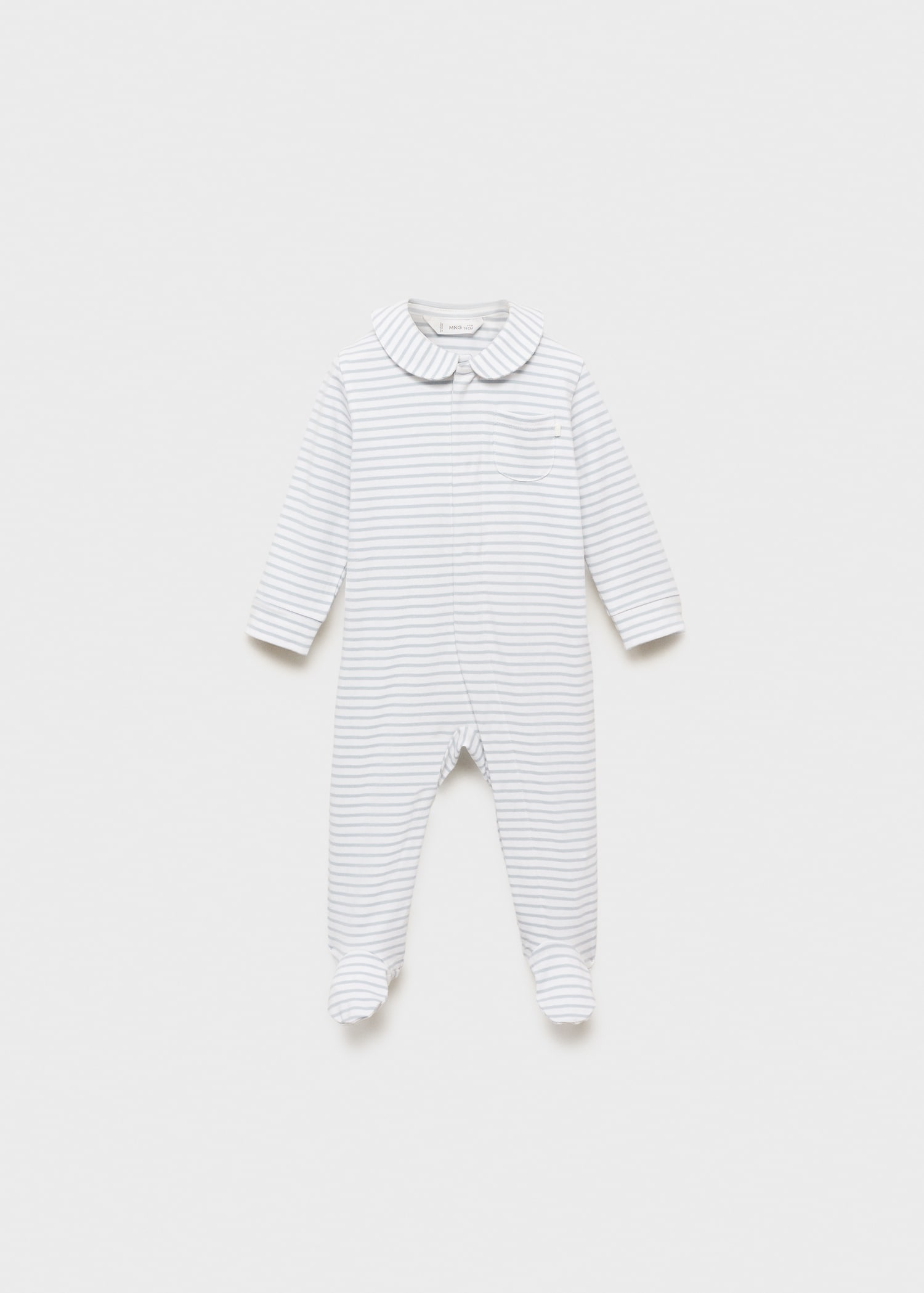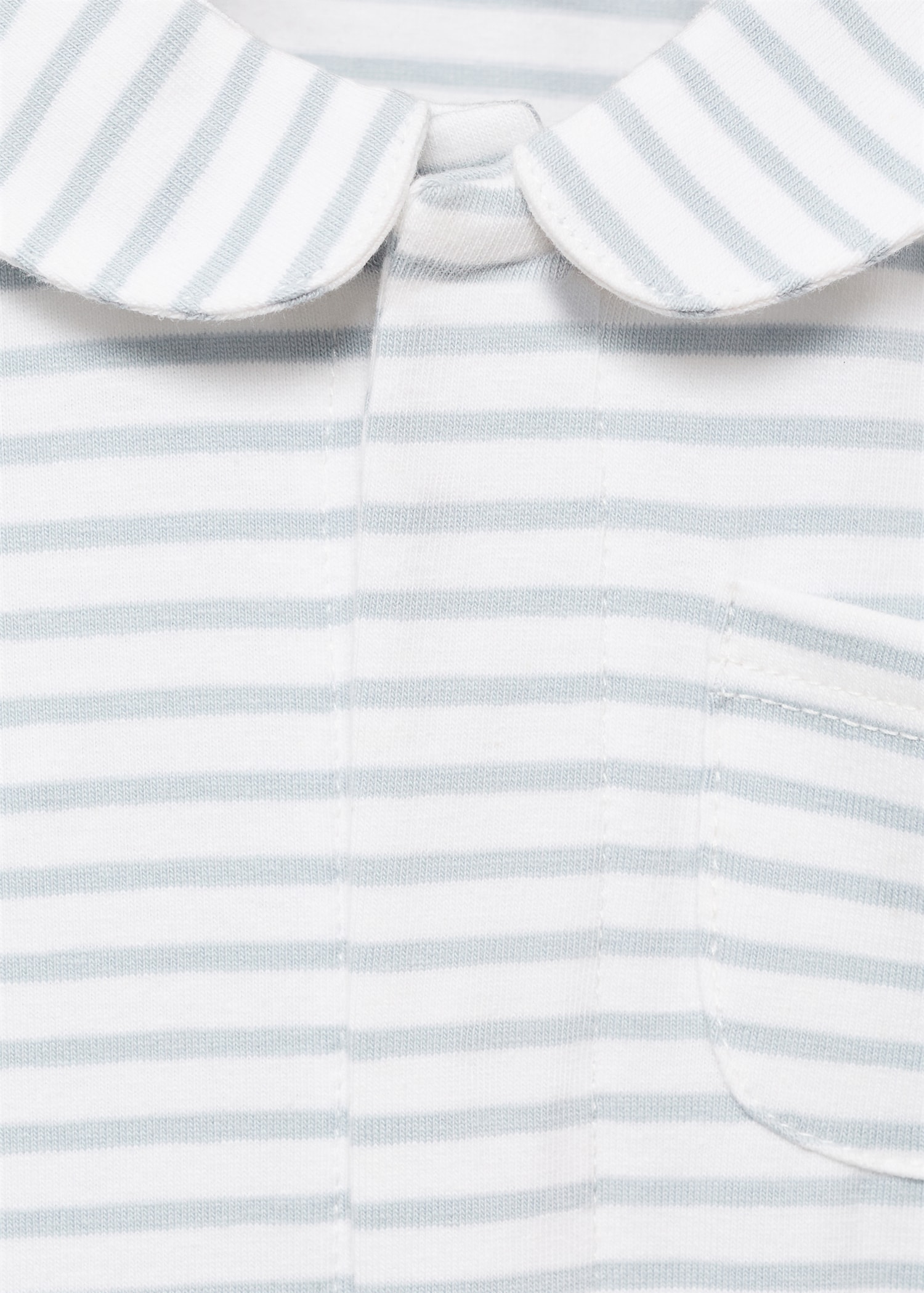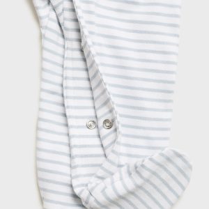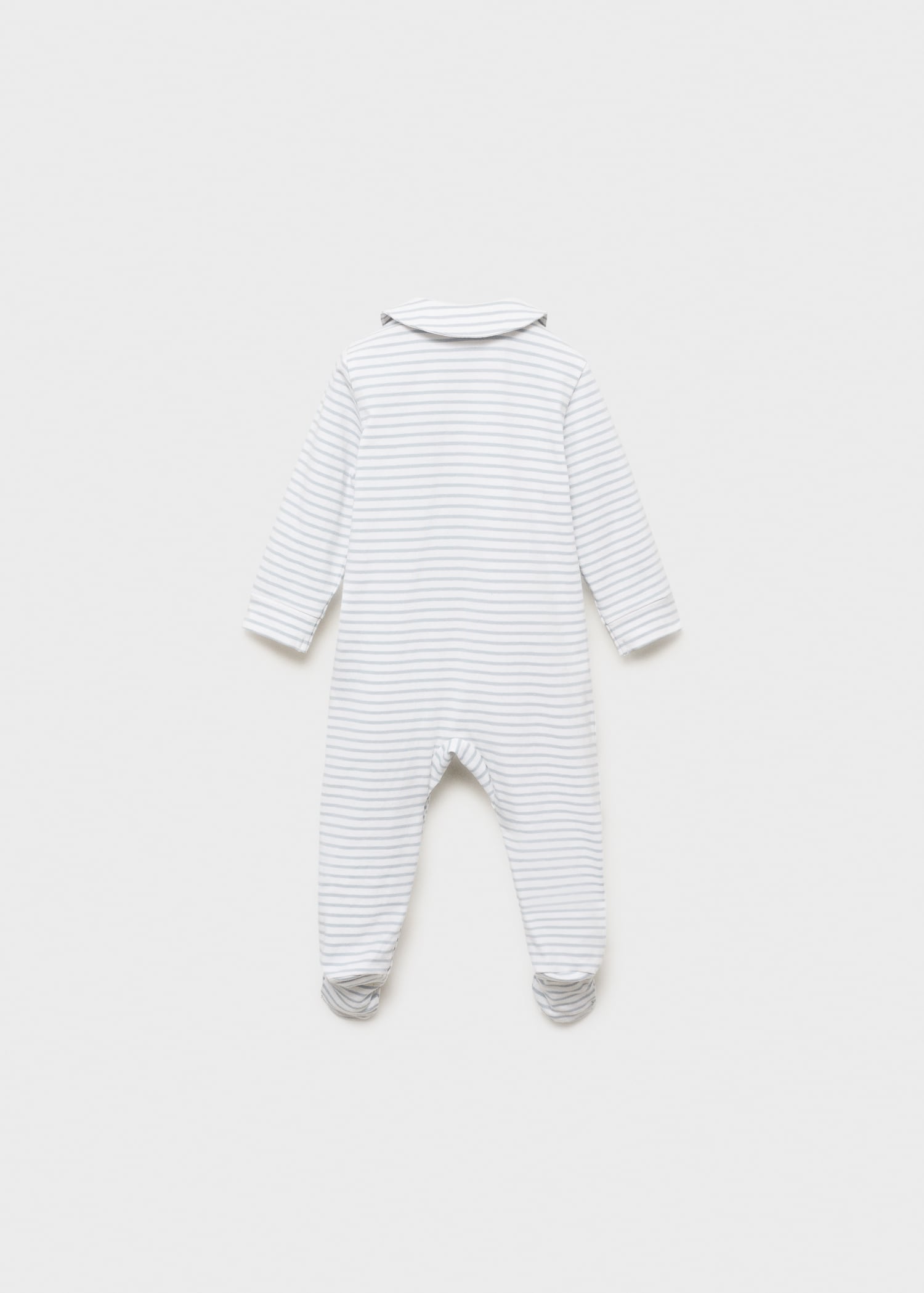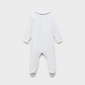 Cotton fabric. Long design. Striped design. Peter Pan collar. Long Sleeve. With booties. Snap button closure