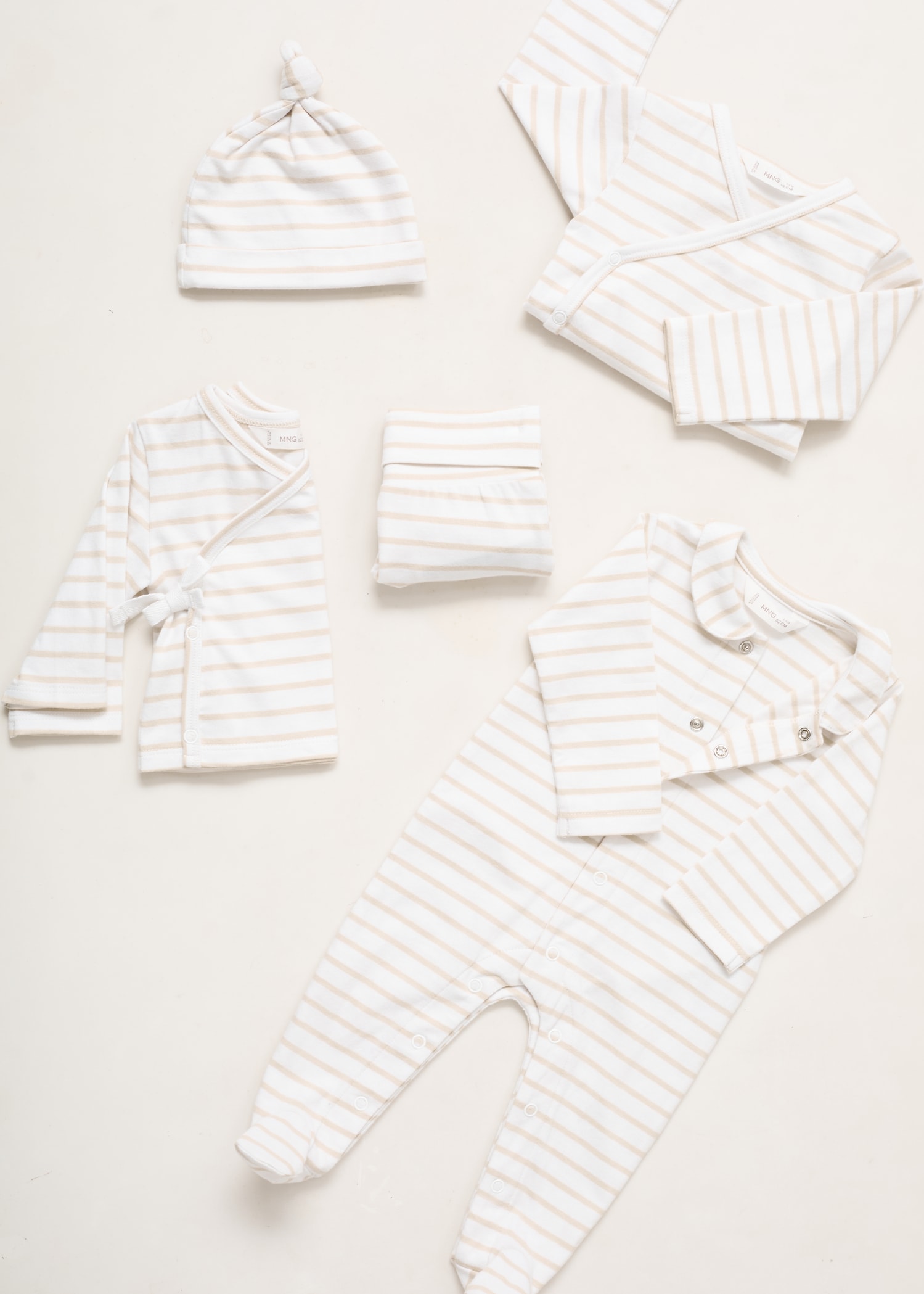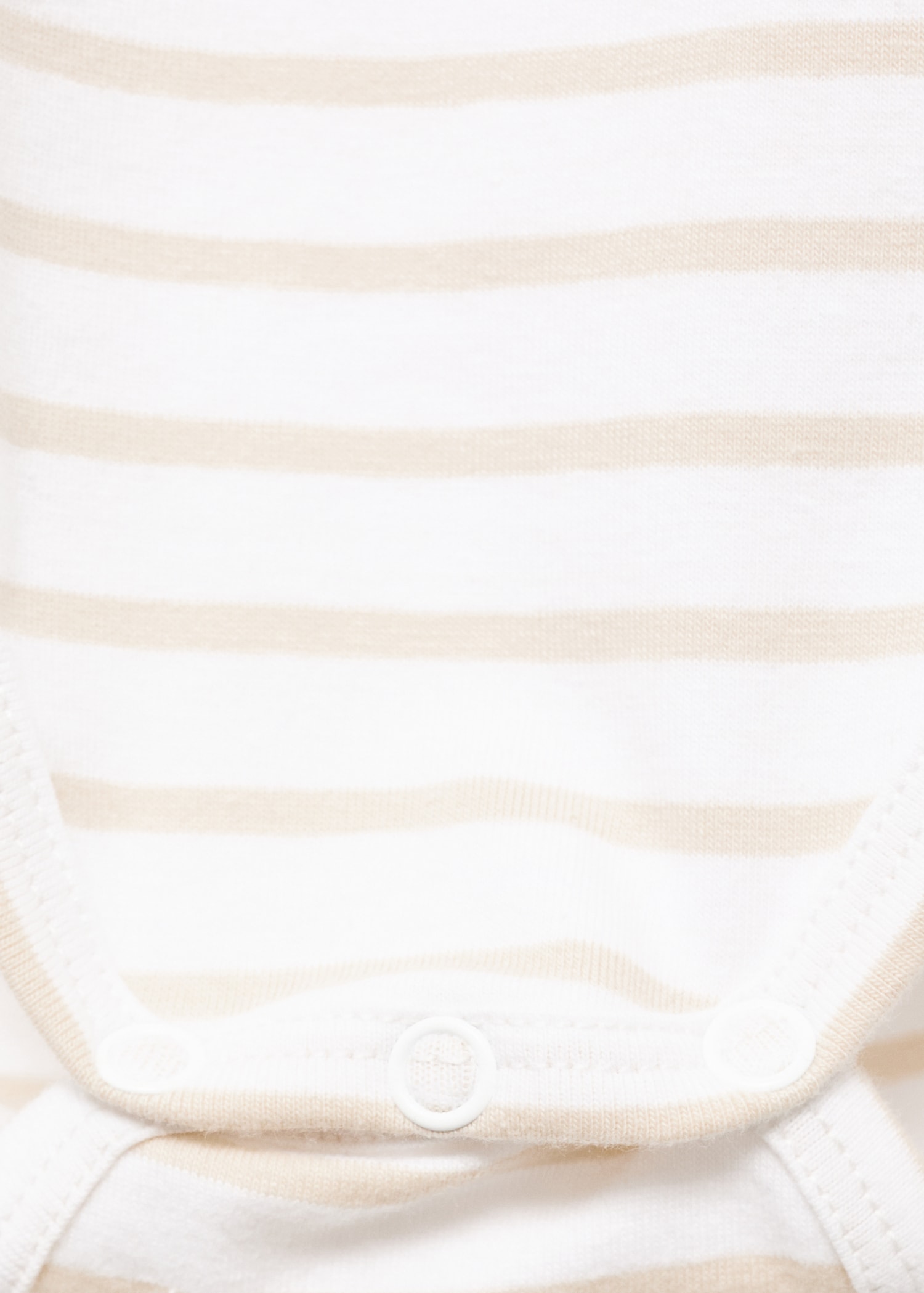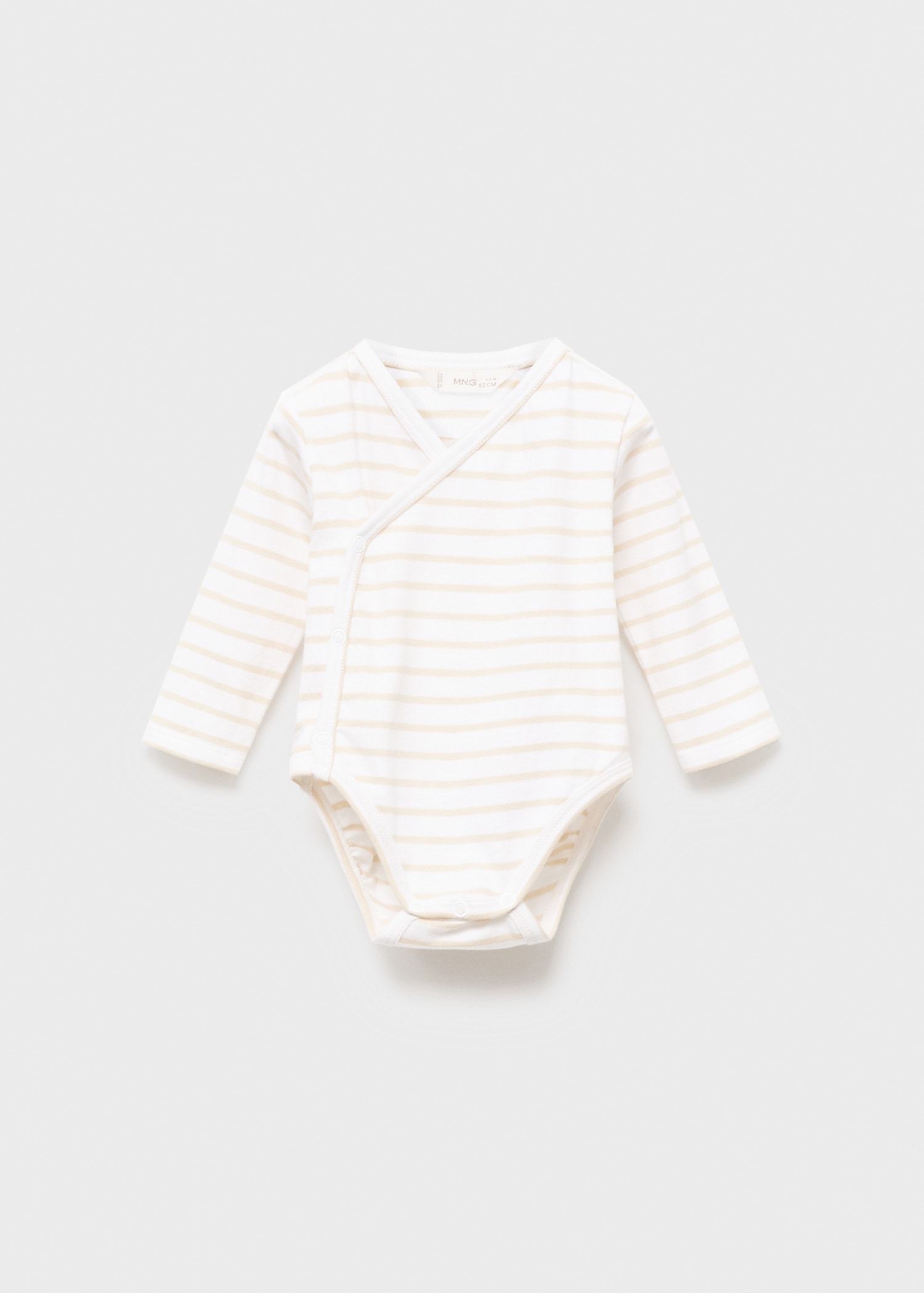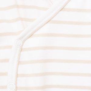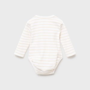 Crafted from stretch cotton fabric, this bodysuit features a striped design with a crossover V-neck and long sleeves. It has a side button fastening and an opening at the hem. Part of the Maternity Collection