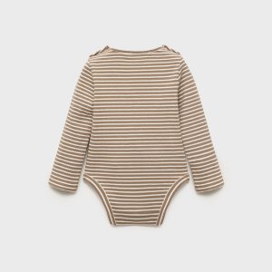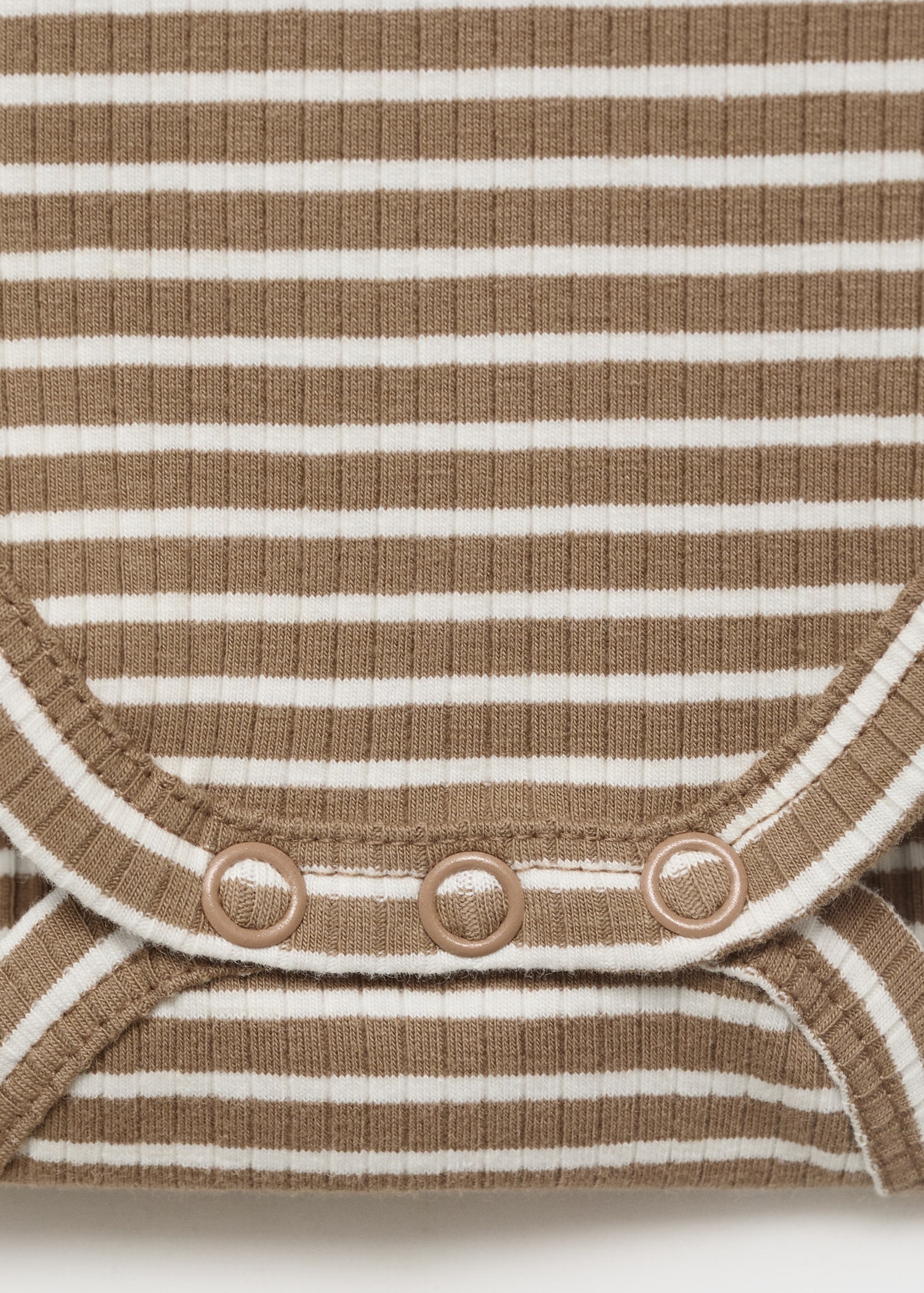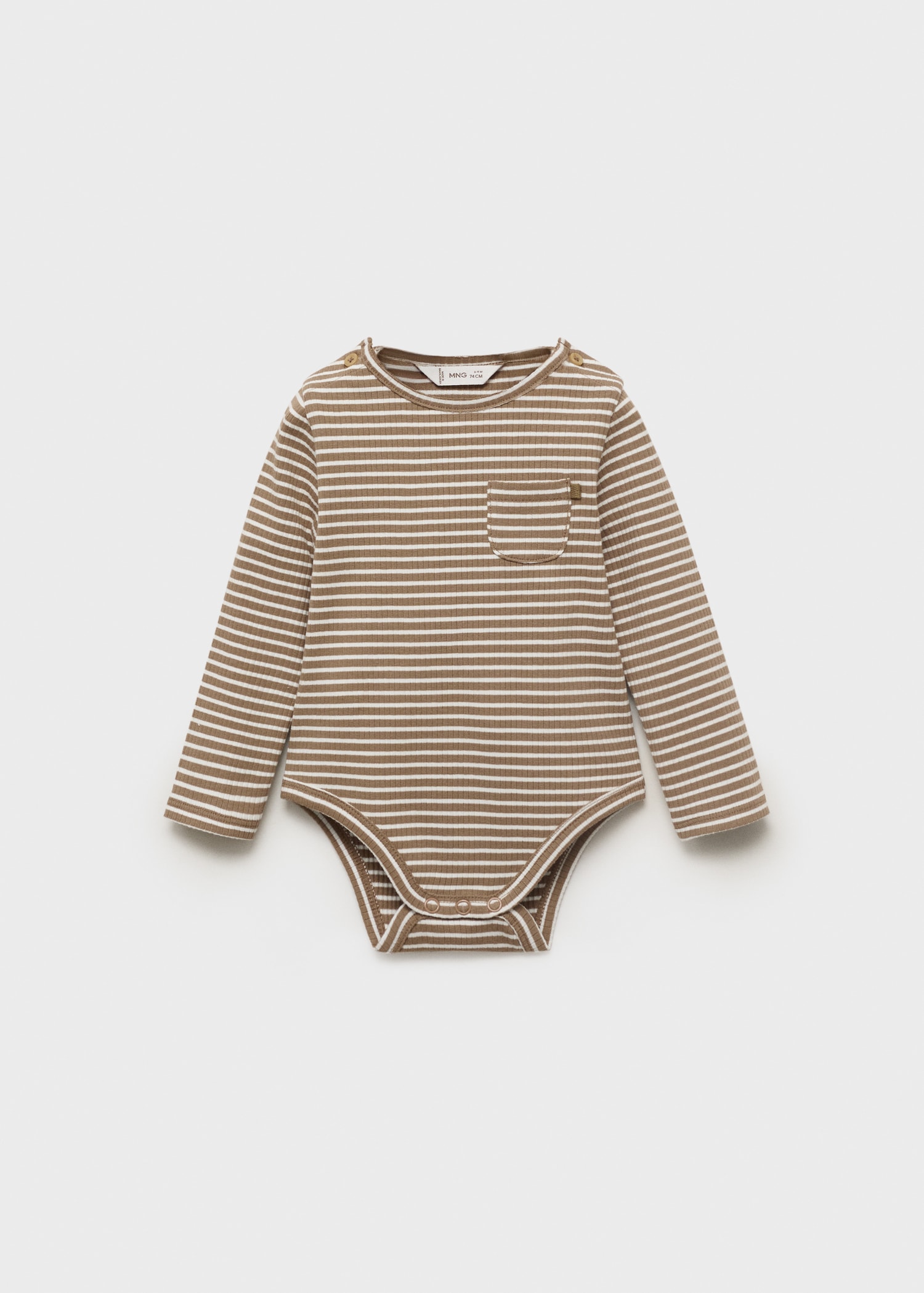 Crafted from a cotton-blend fabric, this fitted design features a striped body style. It has a round neck, long sleeves, and a patch pocket on the chest. Fastens with poppers