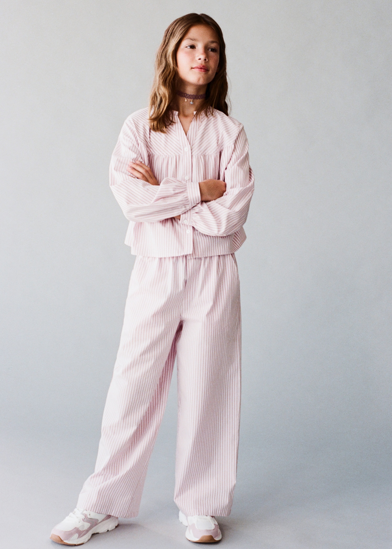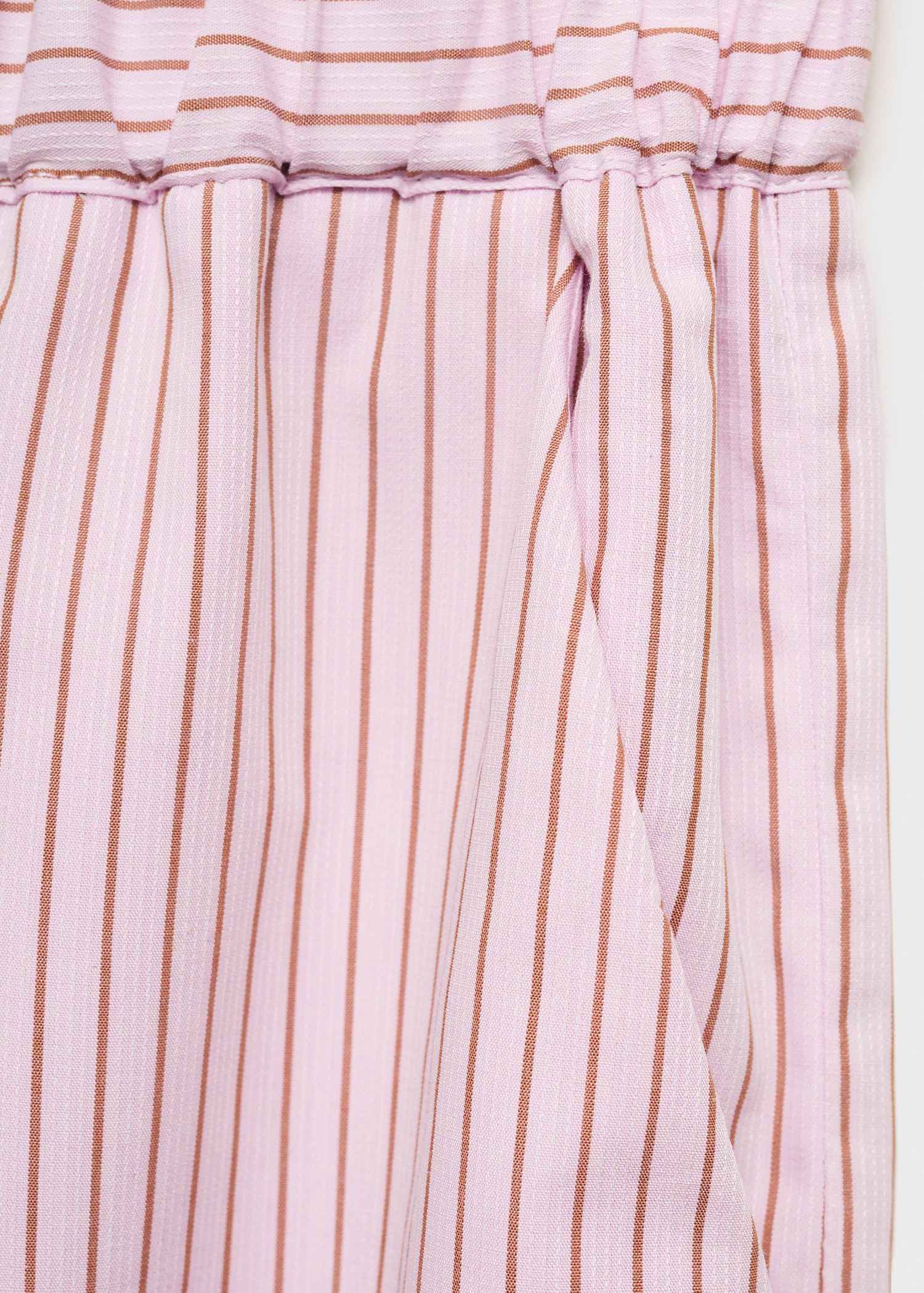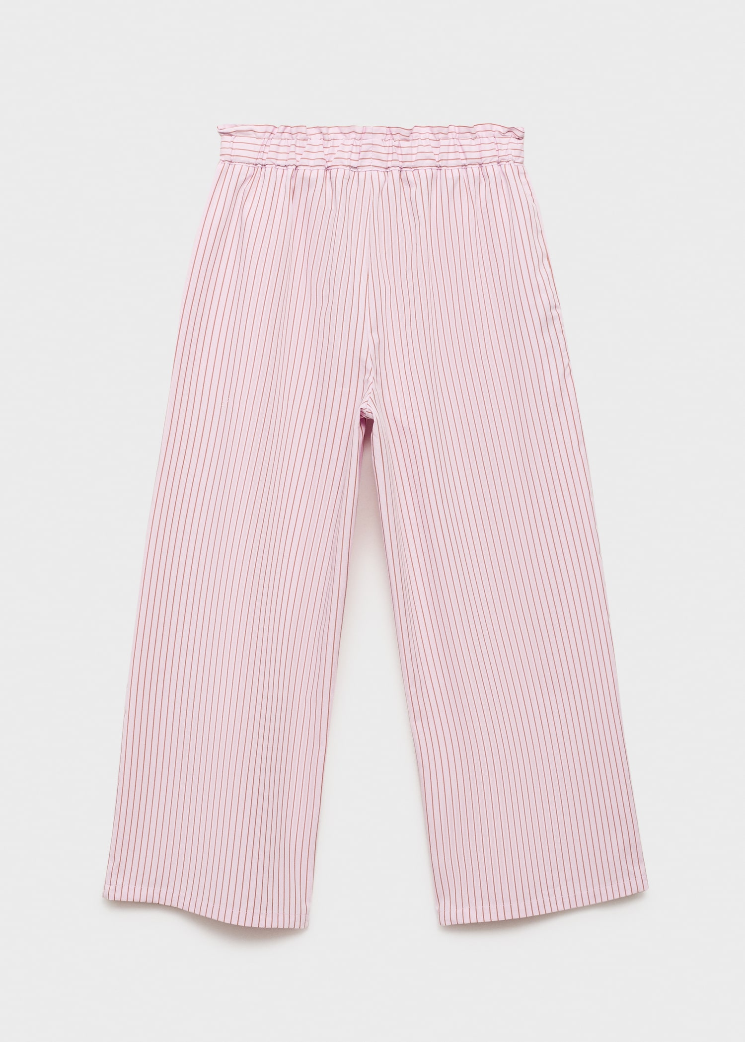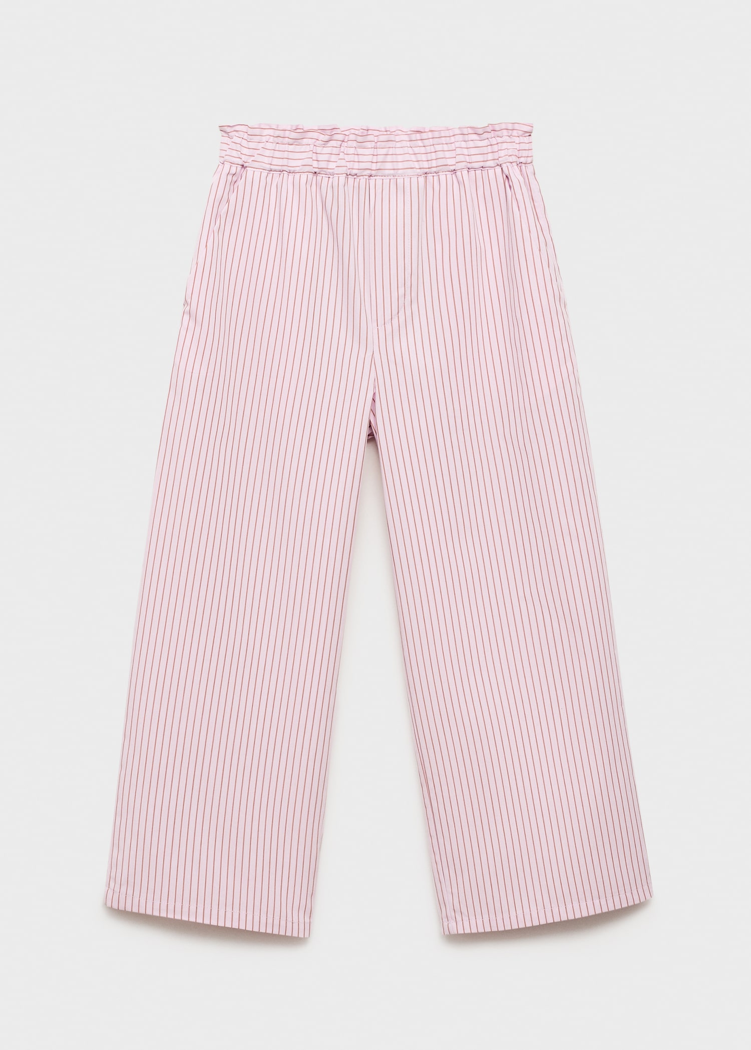 Crafted from 100% cotton fabric with stripes, this straight design offers comfort thanks to its elasticated waistband. It includes two side pockets, ideal for a versatile total look.