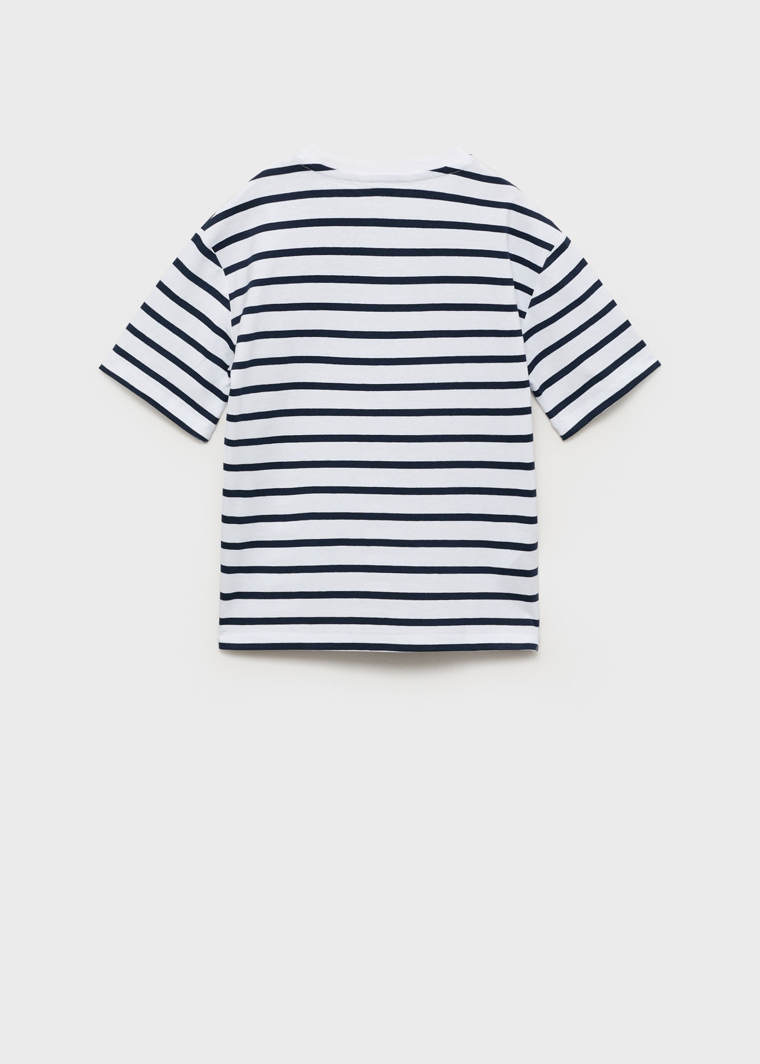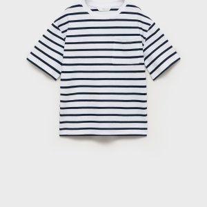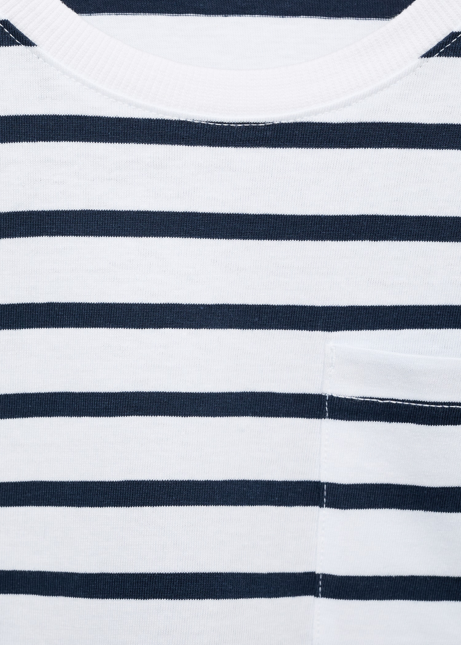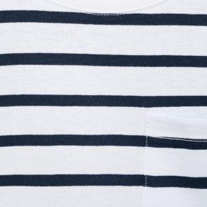 100% Cotton. Striped design. Chest welt pocket. Contrast collar. Round neck with ribbed finish. Short sleeves