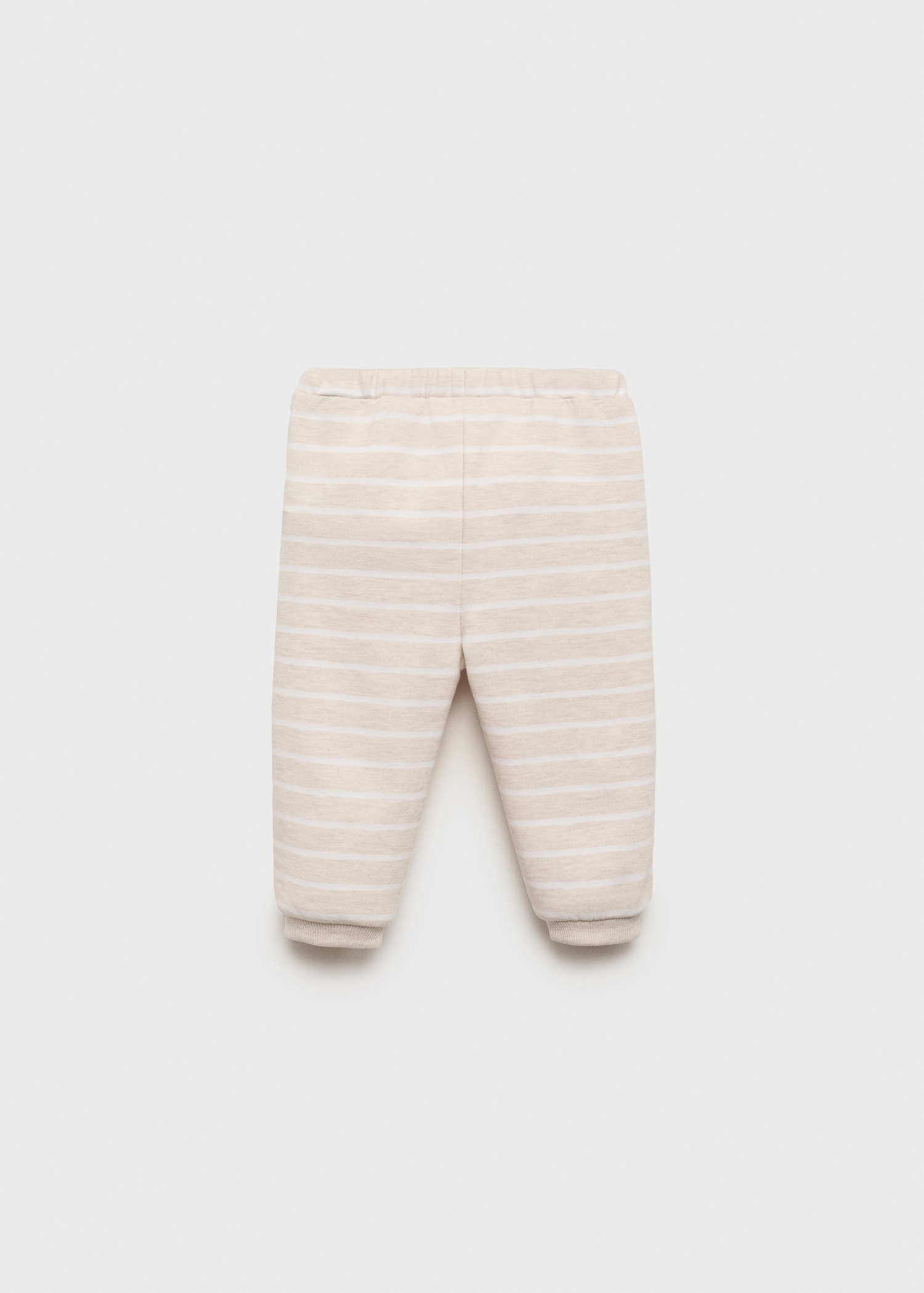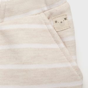 Cotton fabric. Striped fabric. Long design. Elastic waist with drawstring. Two side pockets