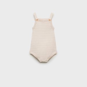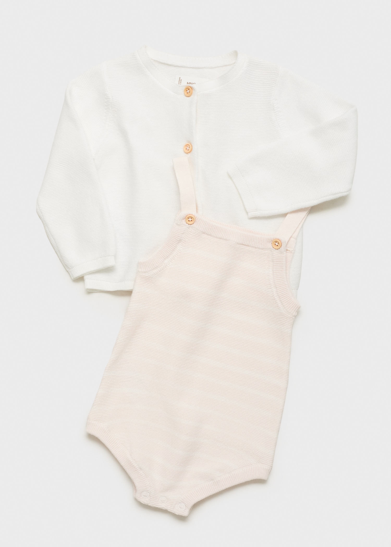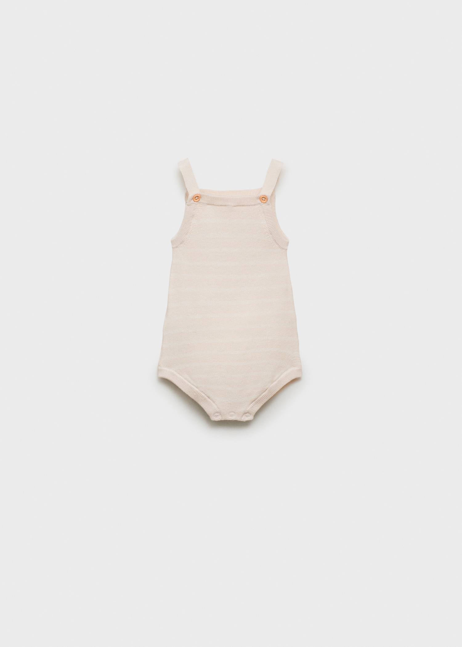 100% cotton fabric. Fine knit fabric. Striped design. Square Neckline. Thin straps. Straps with button closure. Bottom opening with button closure. Snap button closure. Set