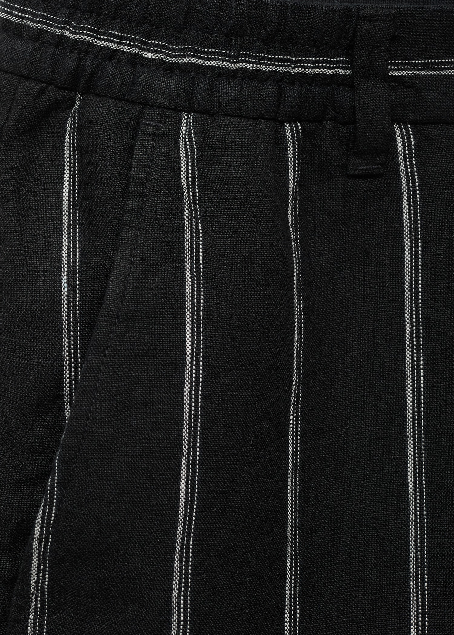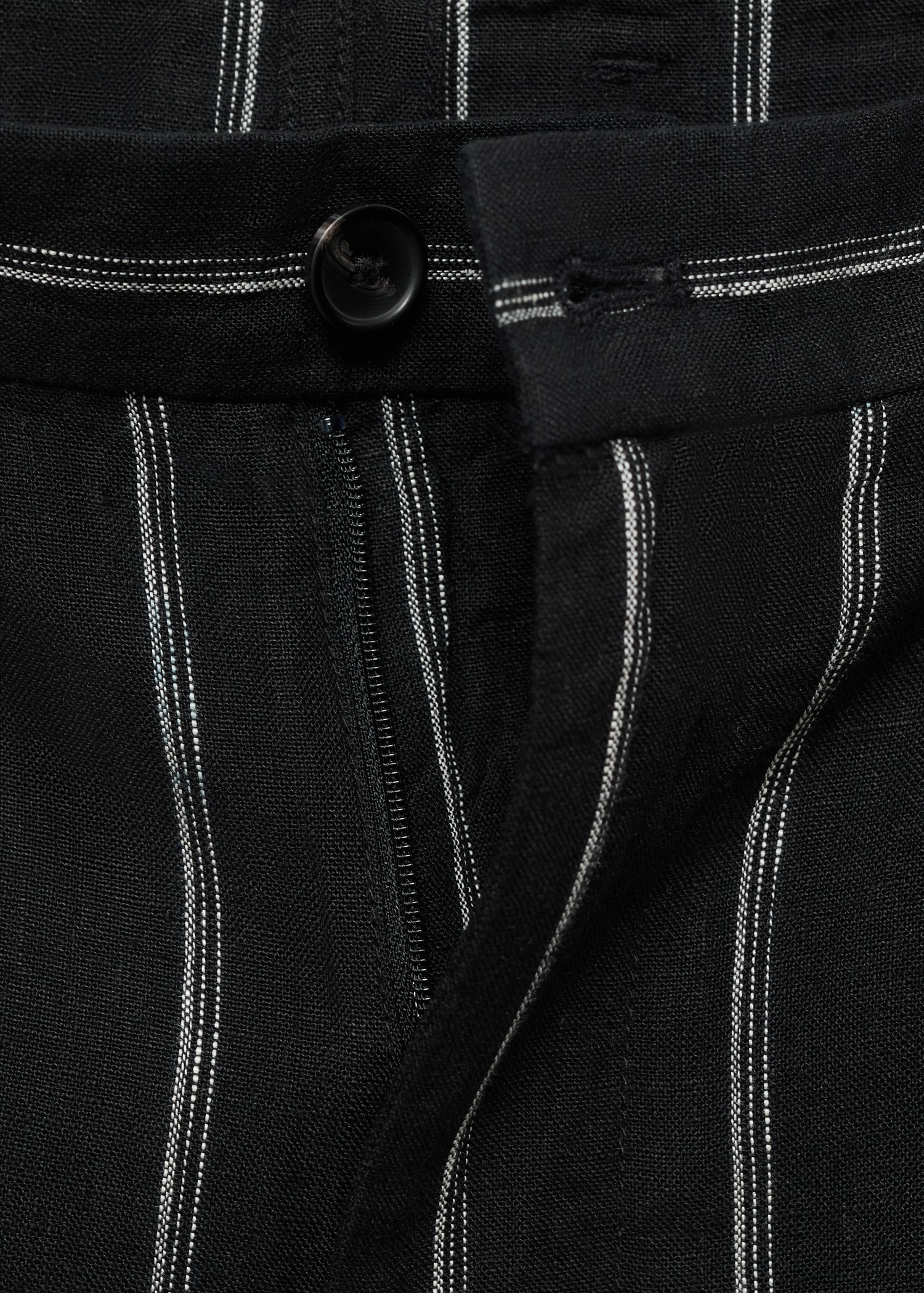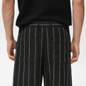 100% Linen. Striped print. Straight Design. Slim Silhouette. Belt loops. Two side pockets. Button and zipper closure