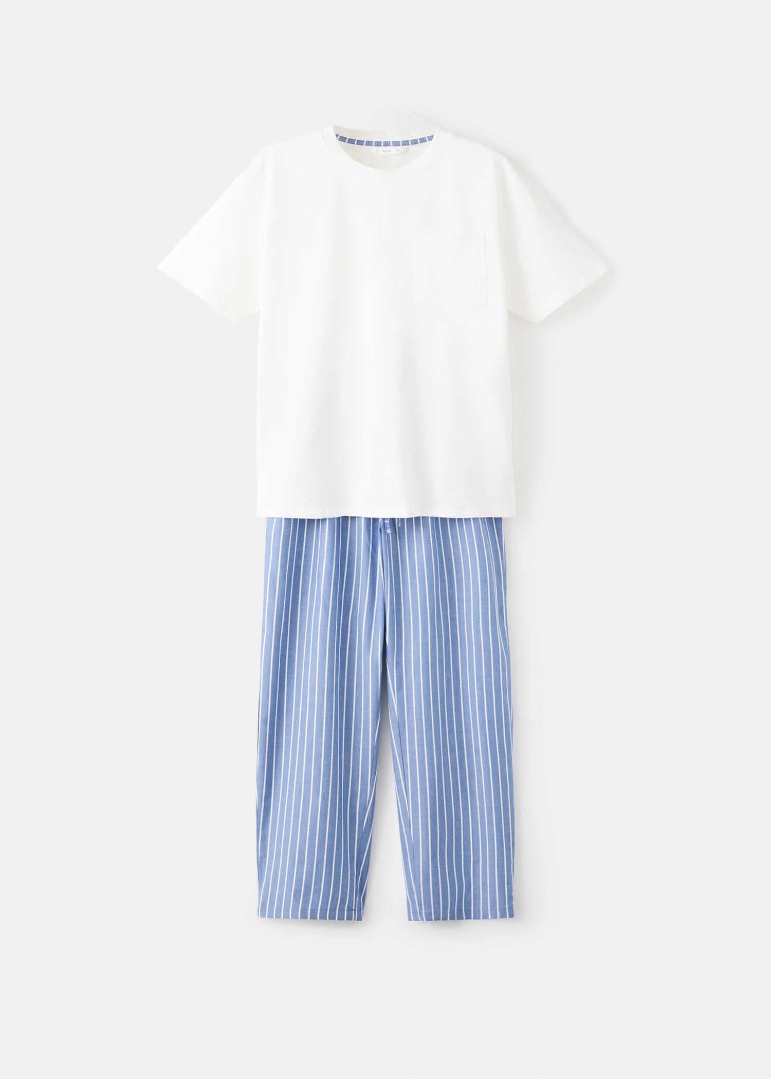 Long pajama pack. 100% cotton fabric. T-shirt. Stripes long pants. Elastic waist with drawstring