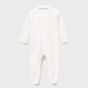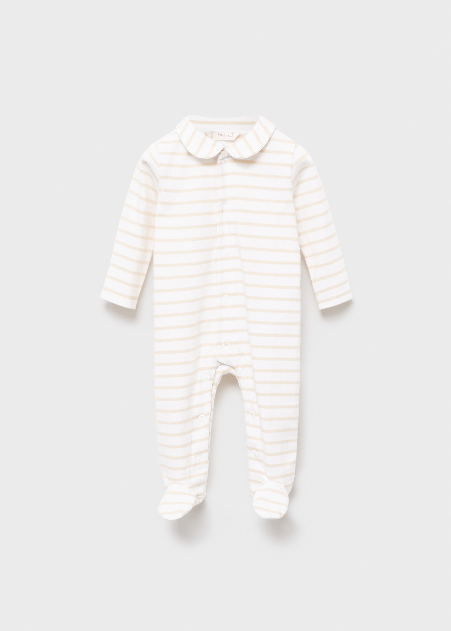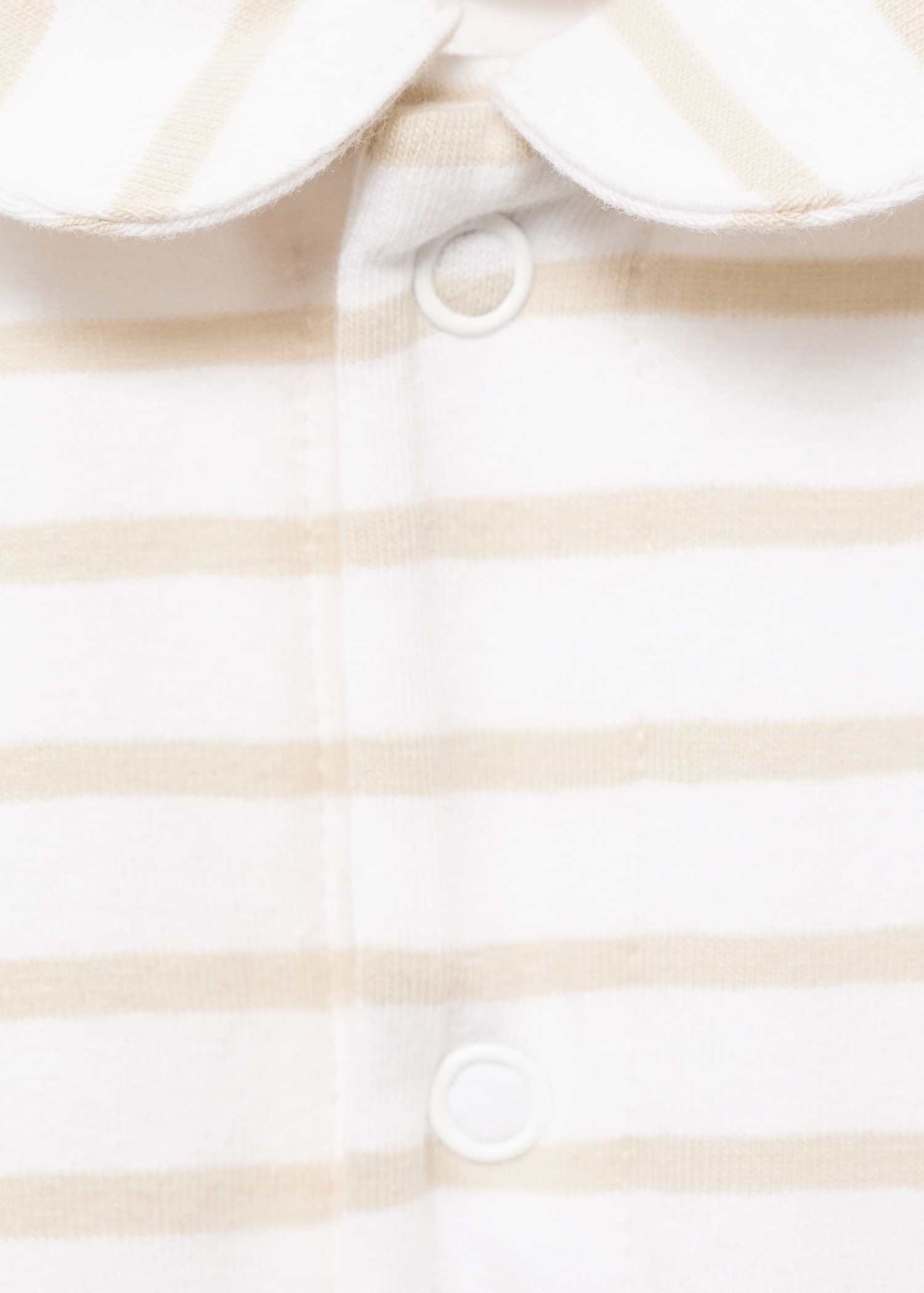 Welcome Collection. Maternity Collection. Cotton fabric. Stretch fabric. Long design. Striped design. Peter Pan collar. Long Sleeve. Front snap button closure