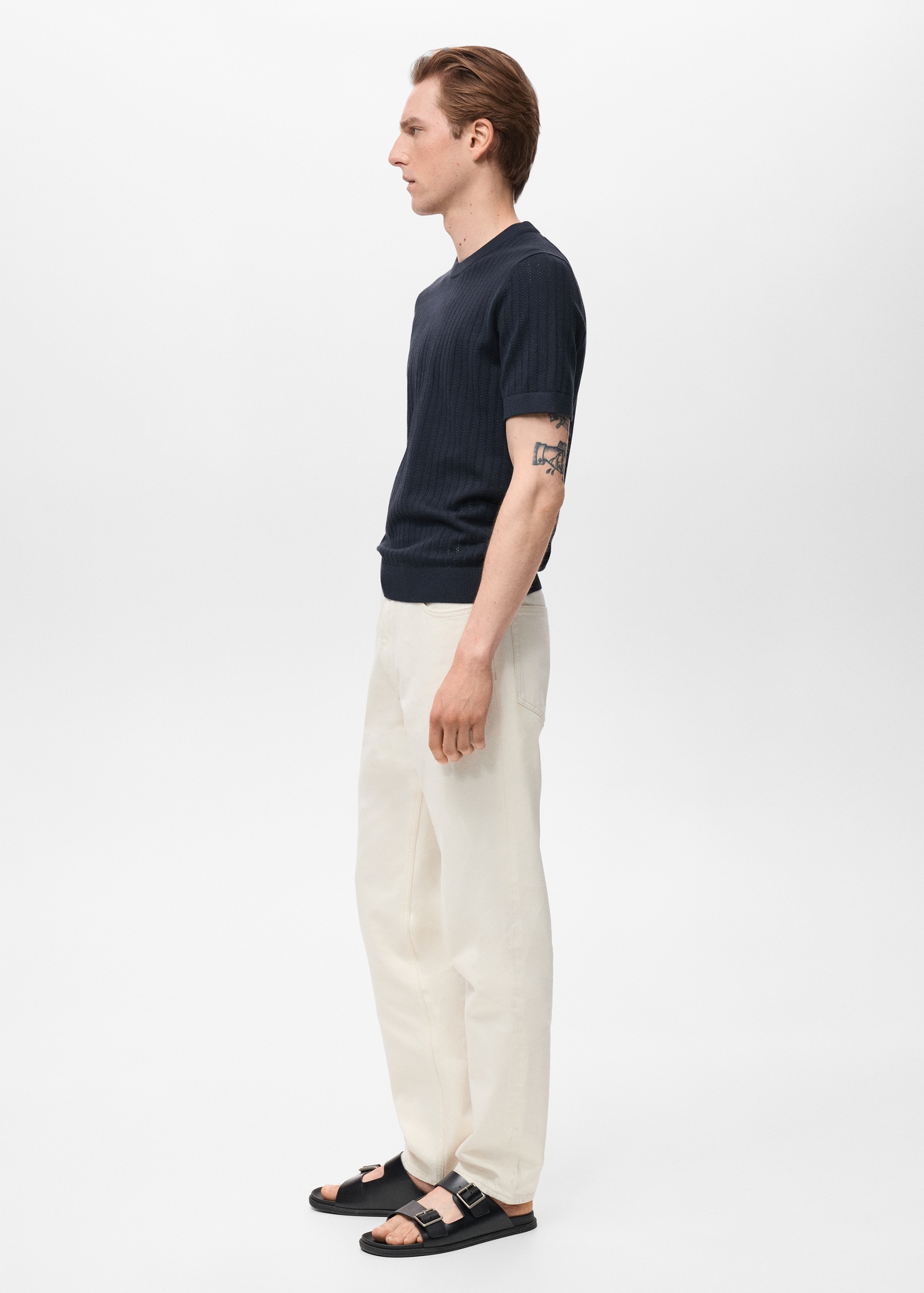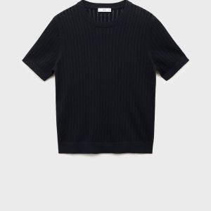 Striped openwork cotton t-shirt