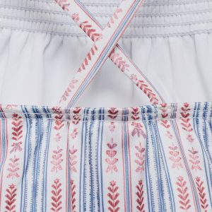 Stretch fabric. Striped design. Printed design. Gathered detail. Embroidered detail. Thin straps. Square Neckline. Elastic trims. Set. Promotional product