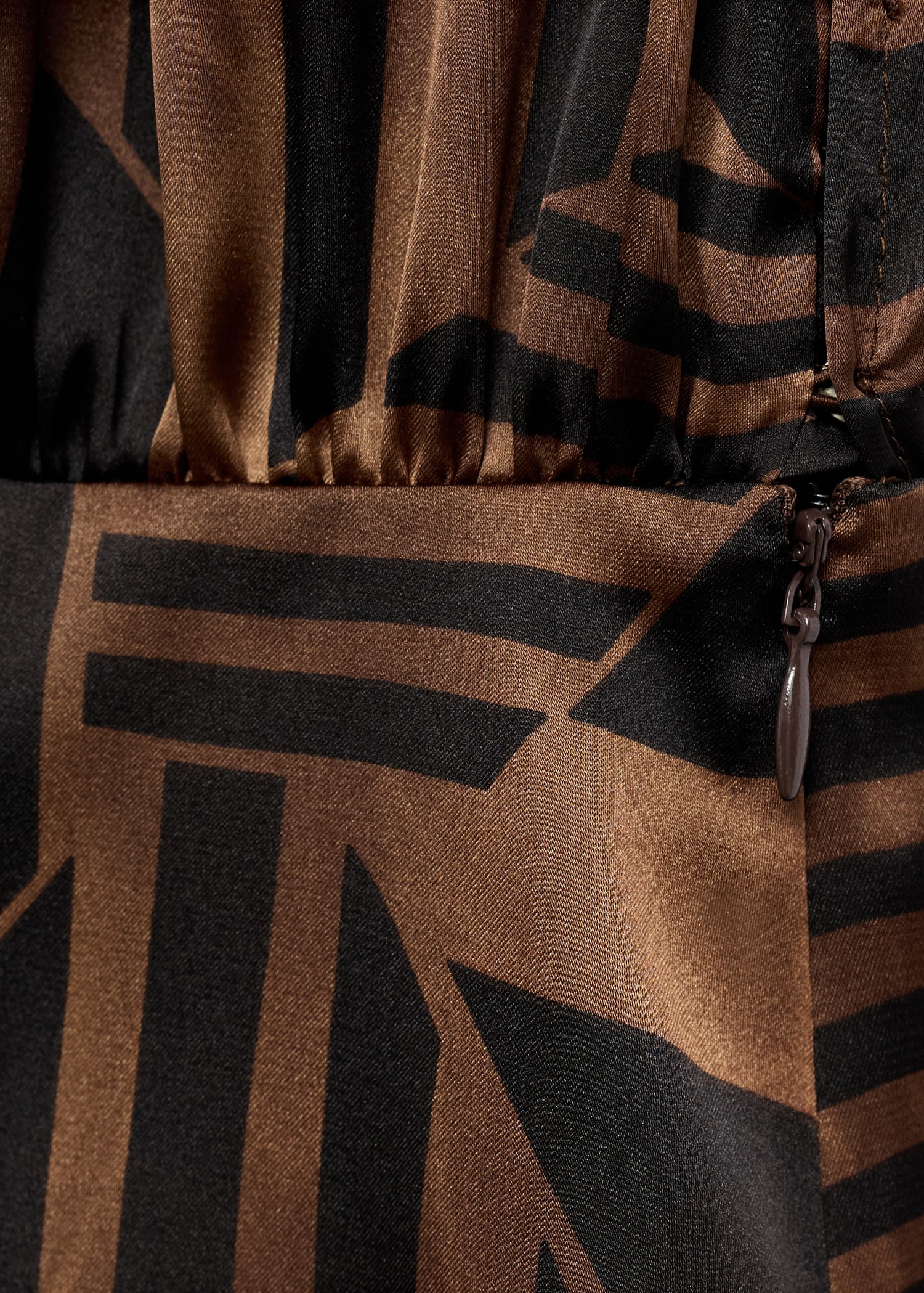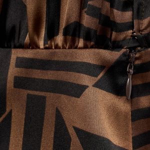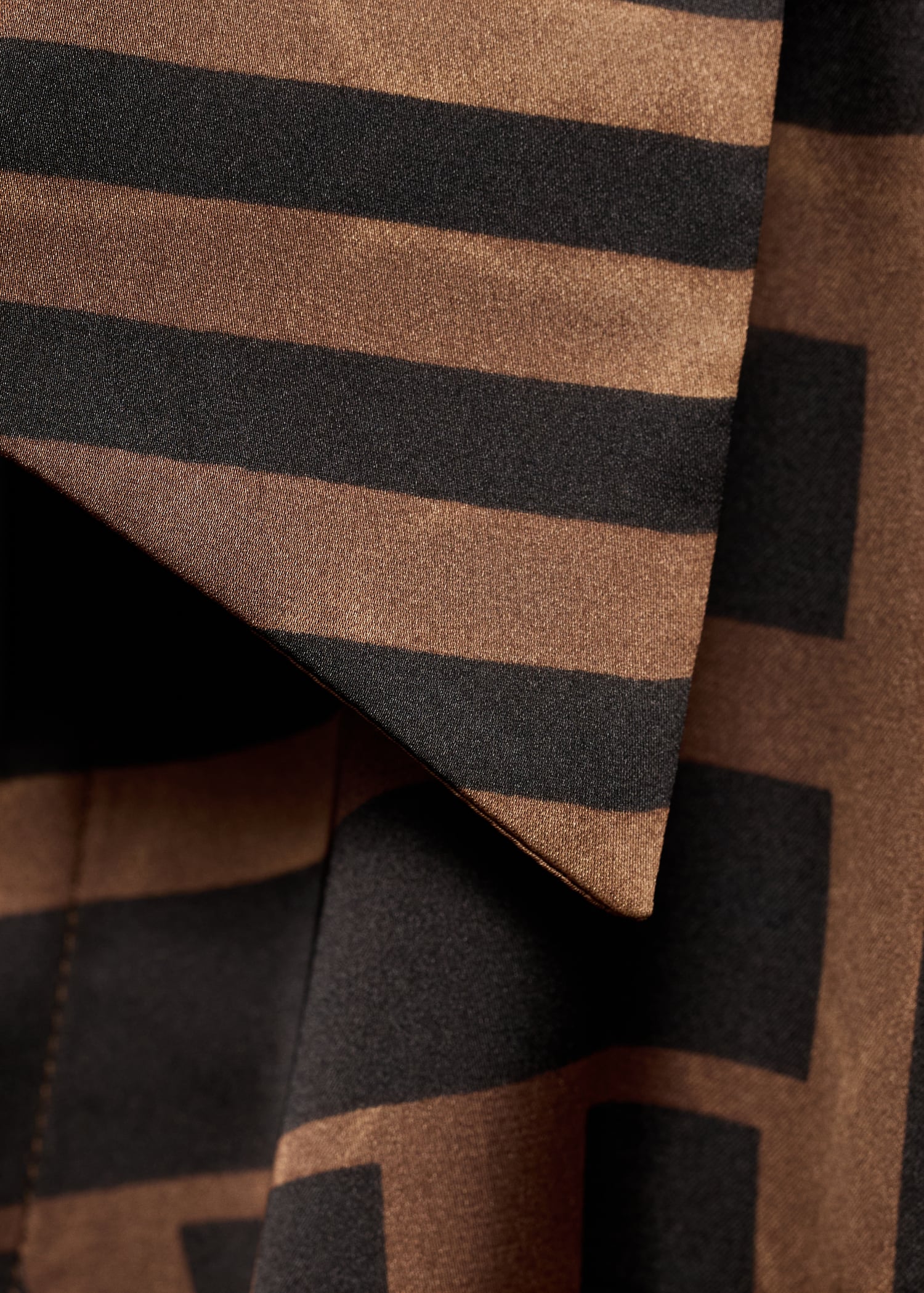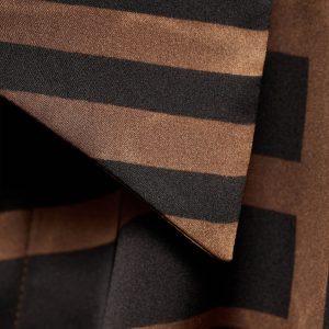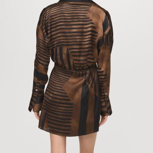 Satin weave. Short design. Straight Design. Striped design. Shirt-style V-neck collar. Long Sleeve. Side zip closure. Inner lining