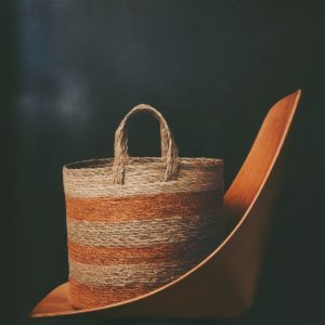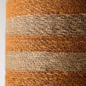 Diameter: 12.6in. Height: 11in. 100% seagrass. Two-tone design. Striped design. Two short handles. Adds a colorful and special touch. 14.96×17.32×14.96 in (Length x Height x Width)