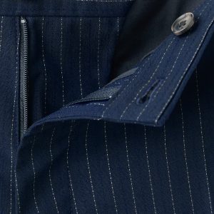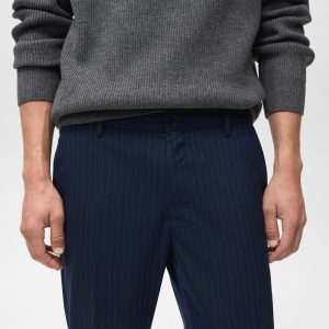 Slim fit. Mid-rise. Striped design. Front closure with double-breasted buttons and zipper. Two front pockets. Two welt pockets at the back. Ironed stripe detail at front and back