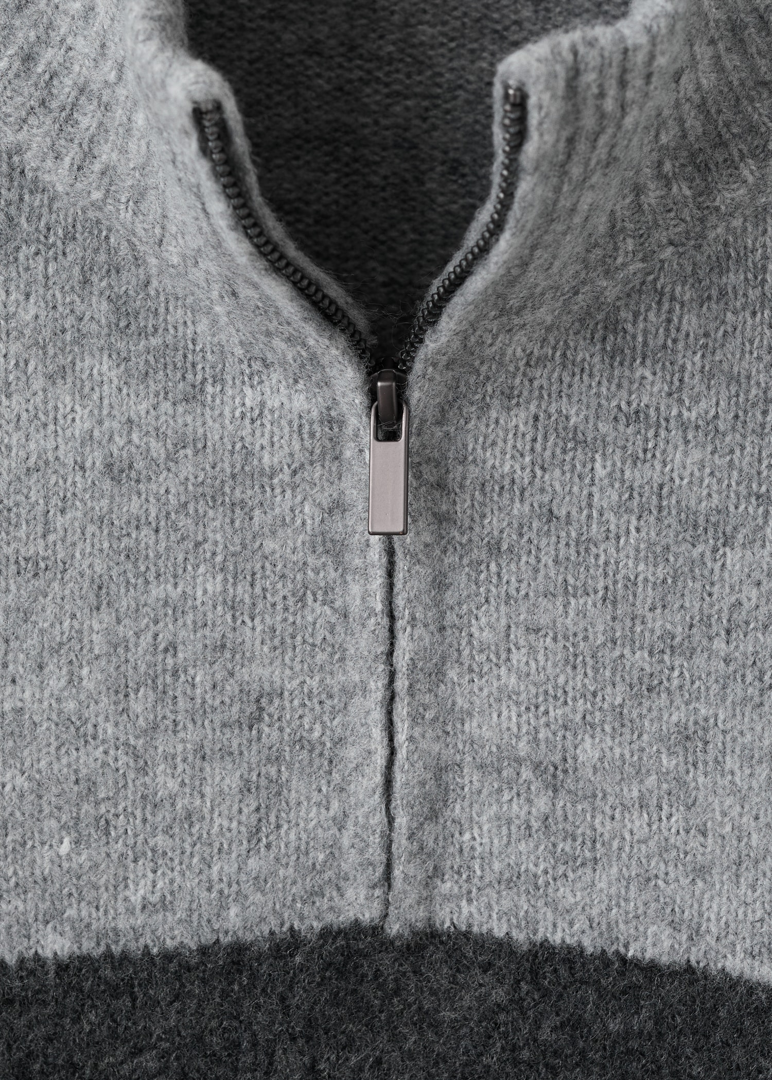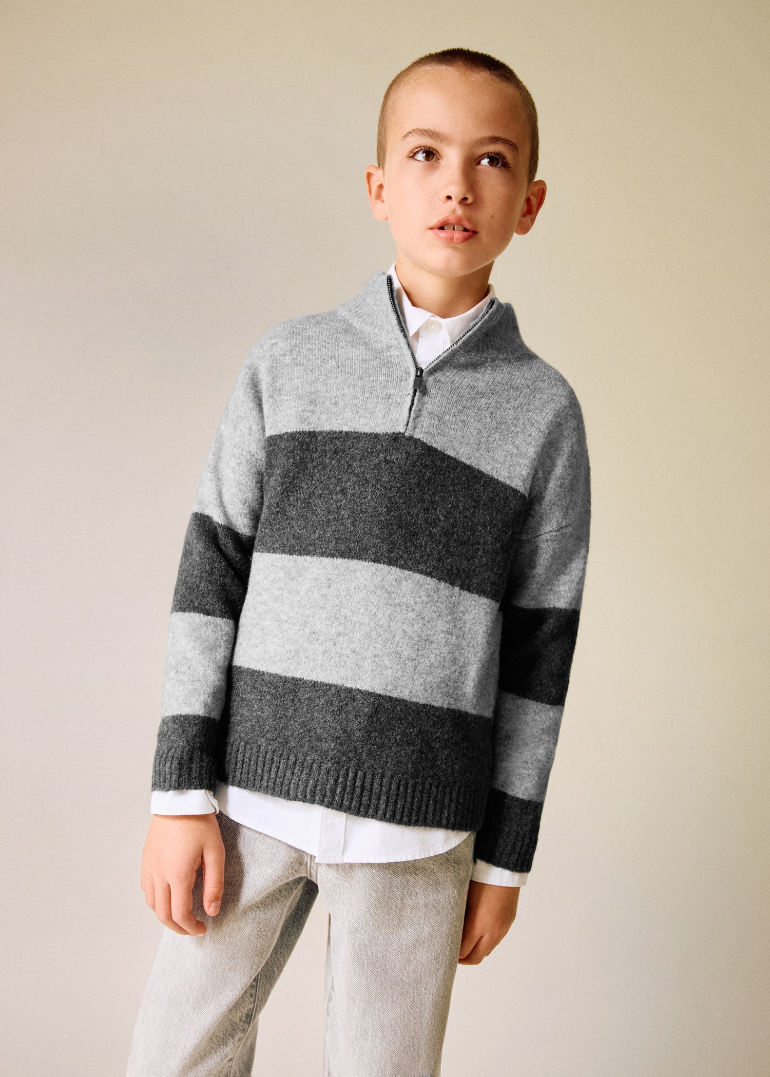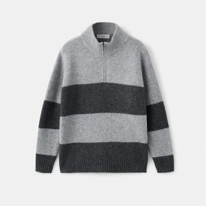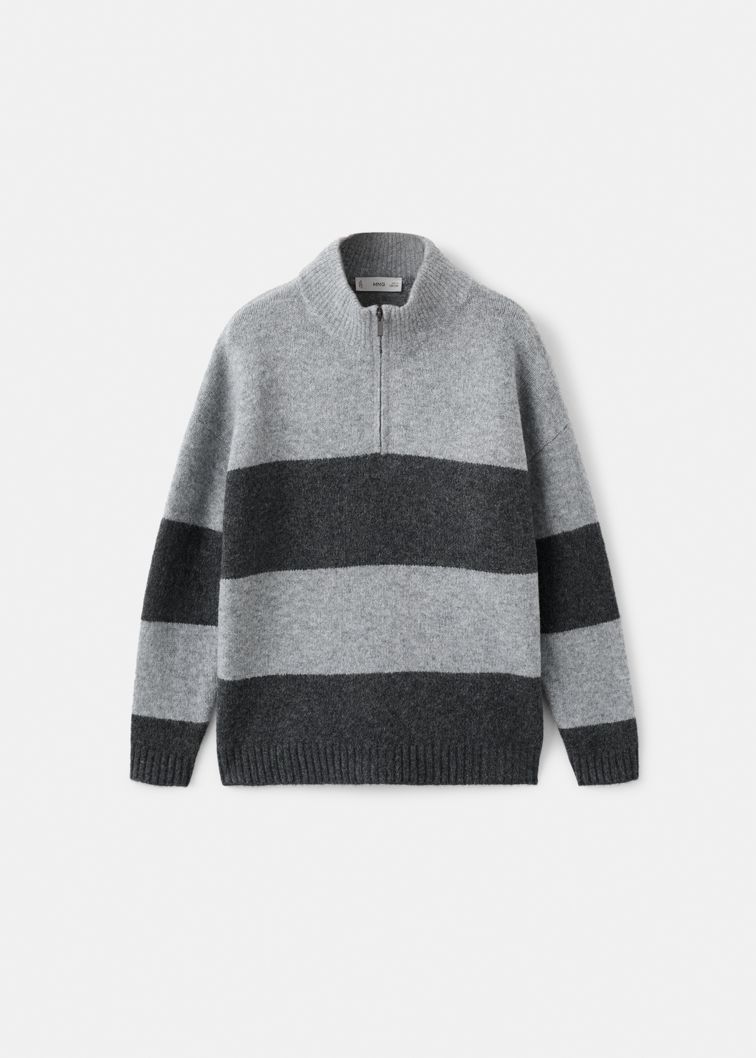 Knitted fabric. Straight Design. Striped design. Perkins neck with zipper. Long Sleeve