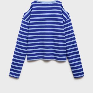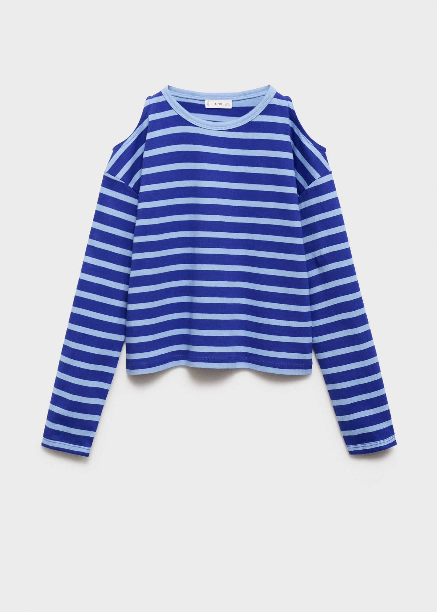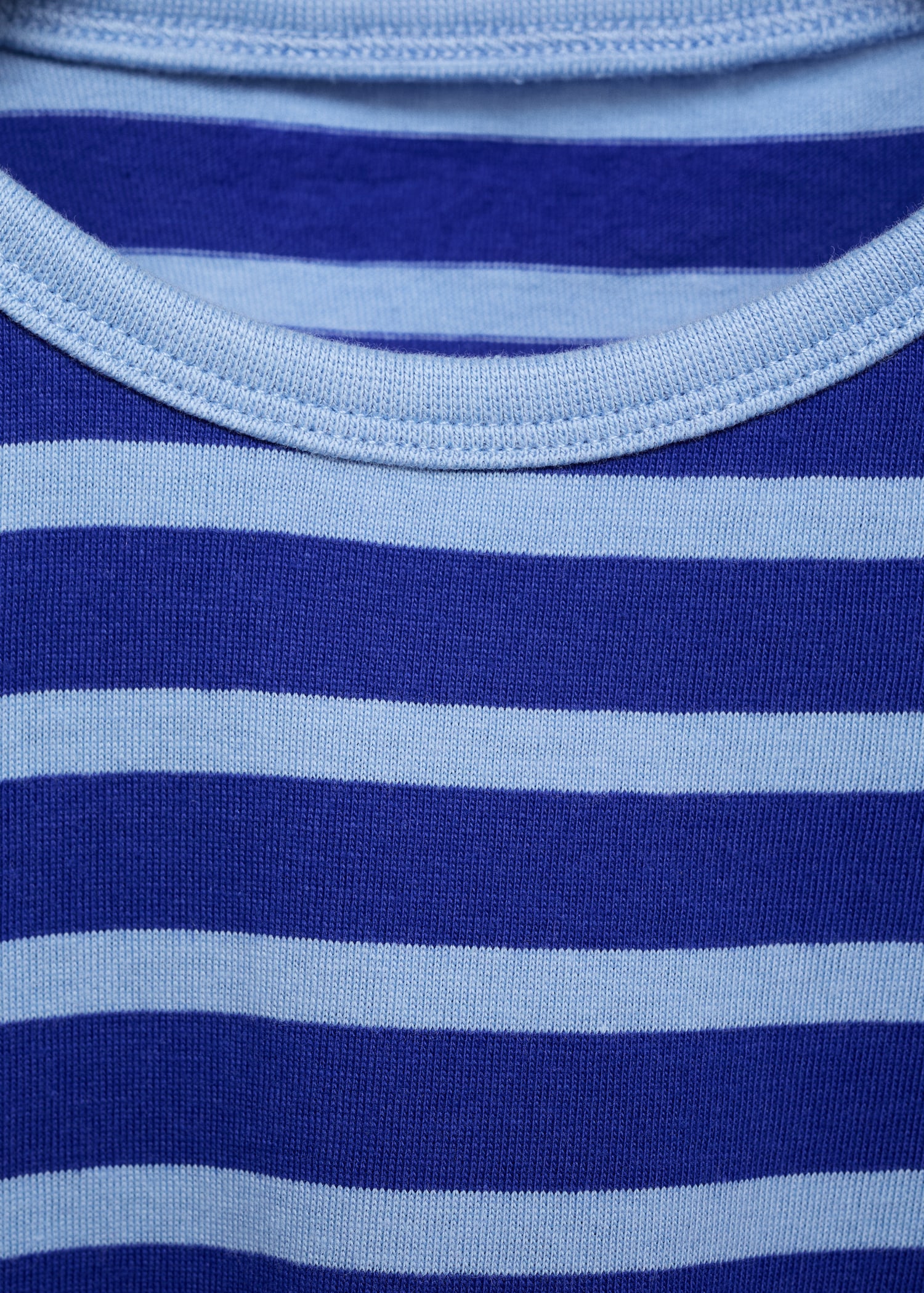 100% cotton fabric. Striped fabric. Straight design. Cut-out detail. Round Neck. Long Sleeve