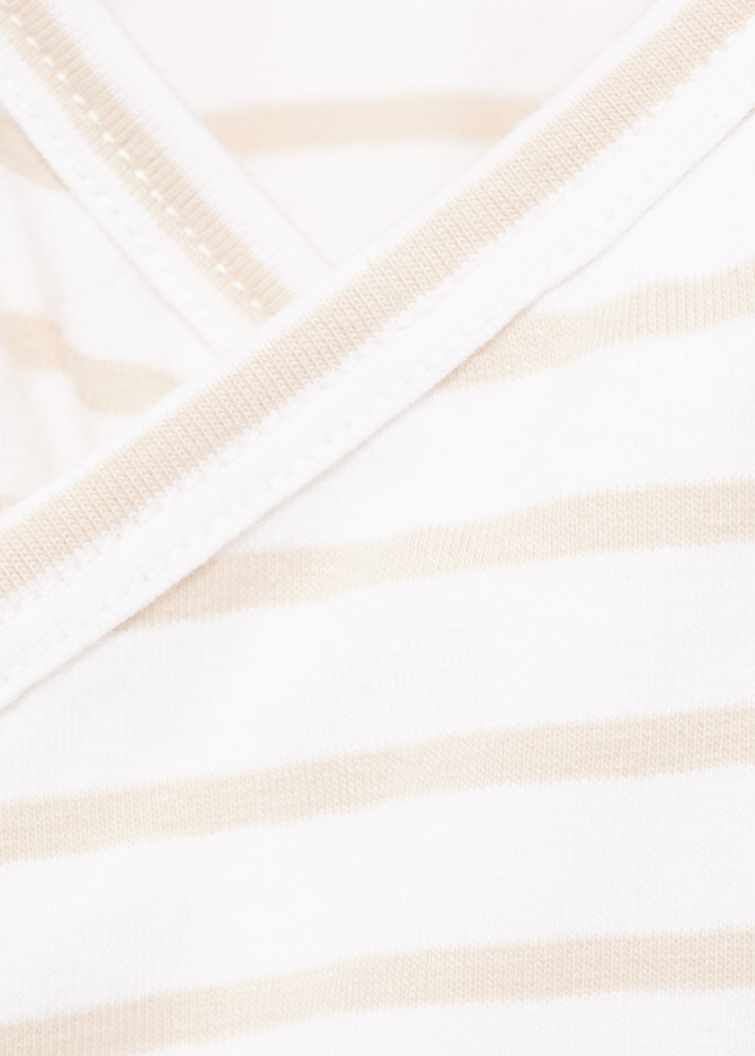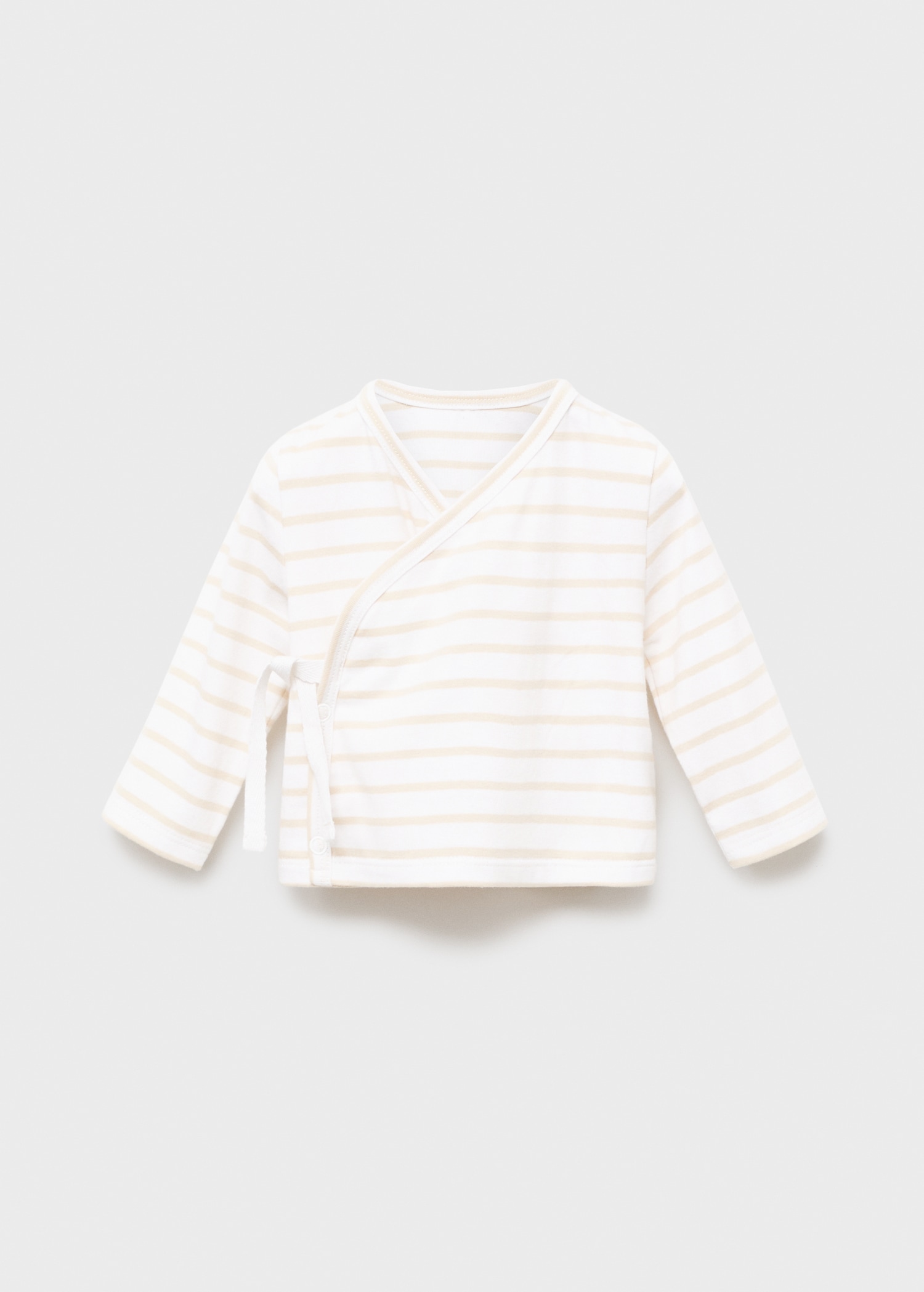 Crafted from stretch cotton fabric, this t-shirt features a straight design with crossed stripes. It has a side tie fastening, V-neck, and long sleeves. Part of the Maternity Collection