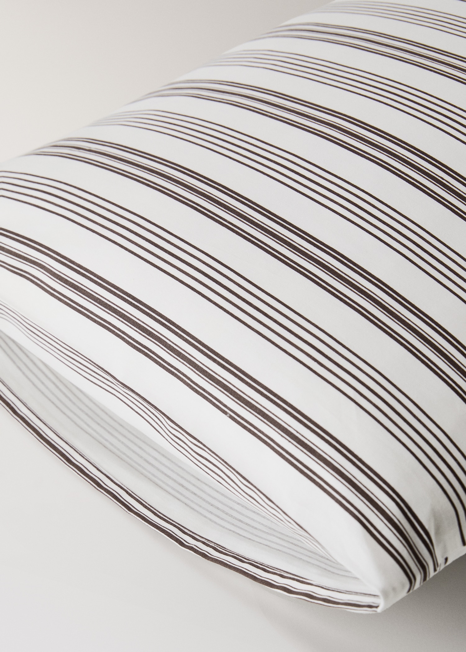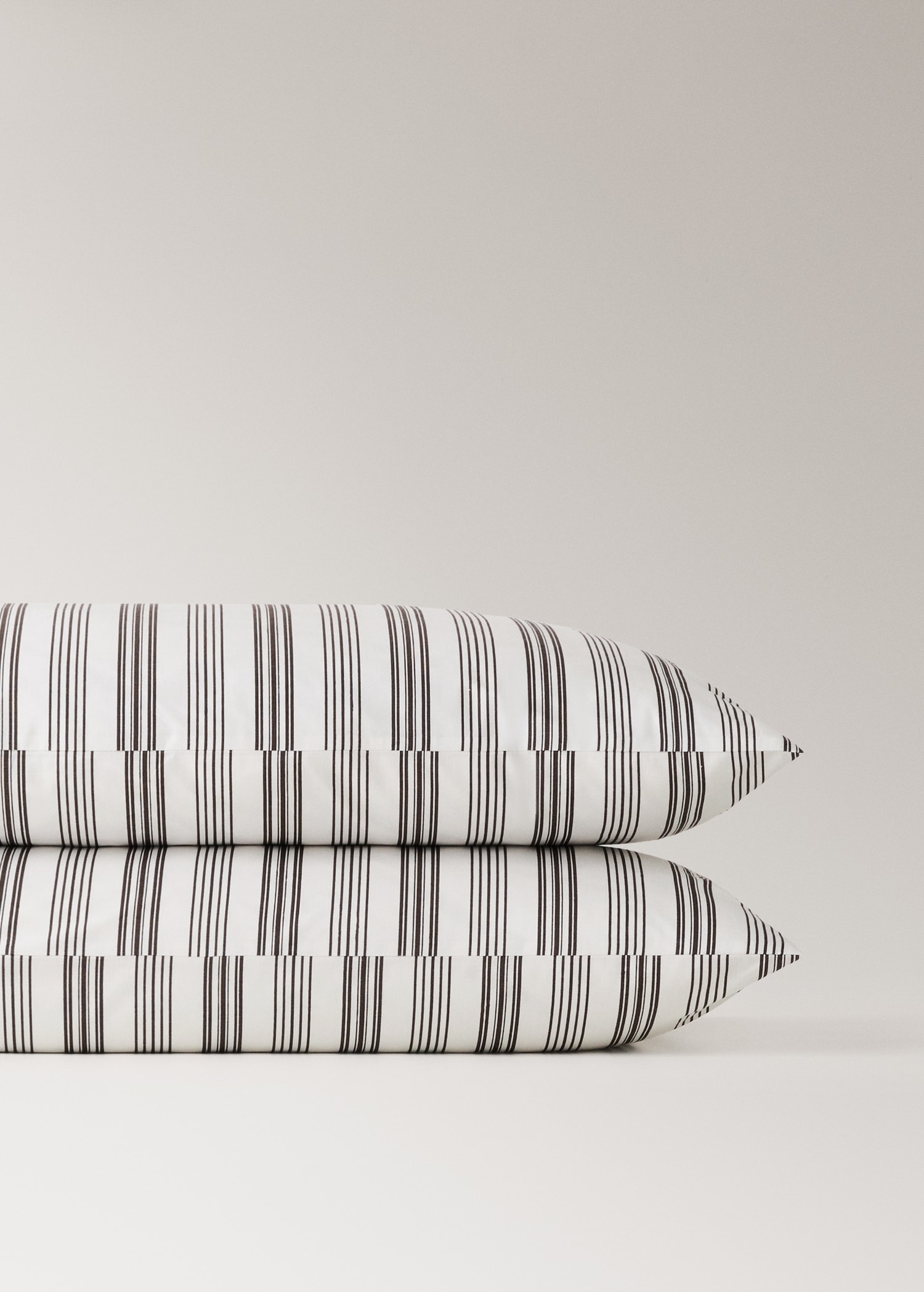 Size: 50x75cm. Pack of 2. Does not include insert. 100% Cotton. 200 cotton threads offering maximum softness, durability, and breathability, providing a sensation of lightness and smoothness to the touch. Striped print. Pleasant texture. Coordinates with more products from the collection