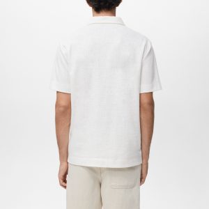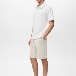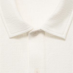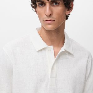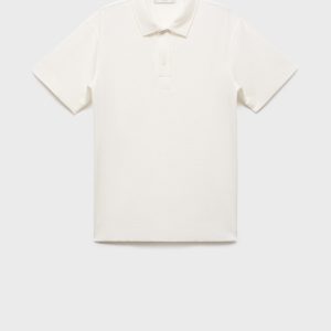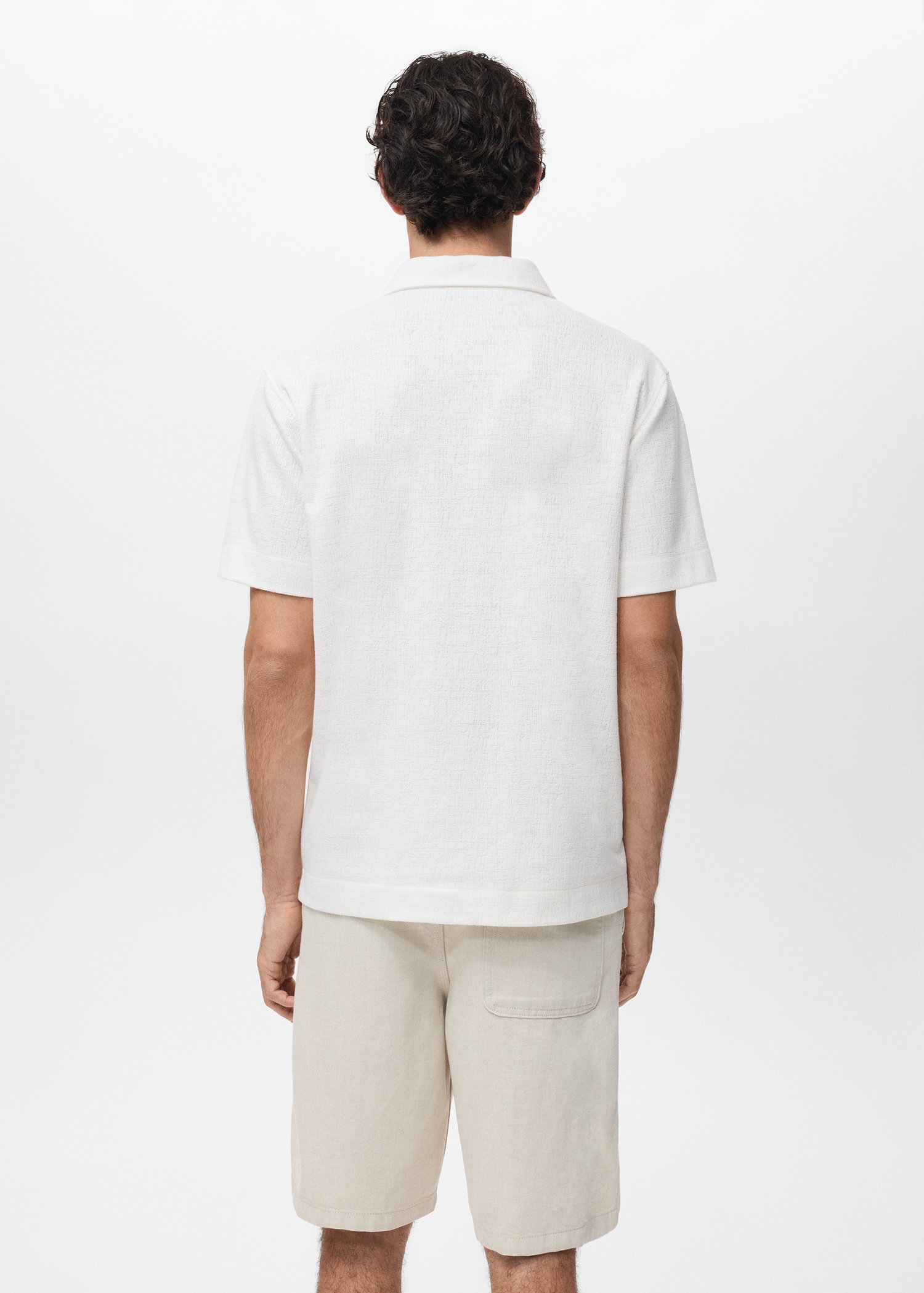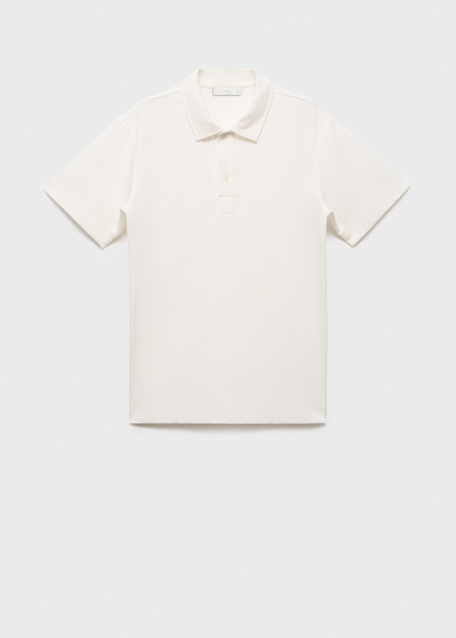 Regular fit. Cotton blend fabric. Polo collar with button closure. Short sleeve