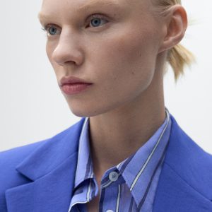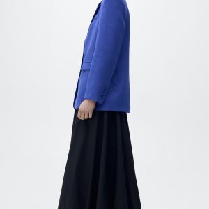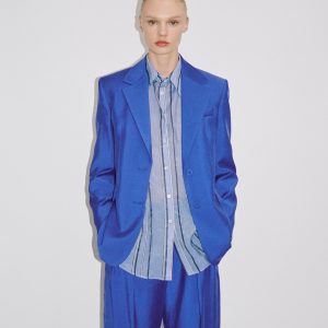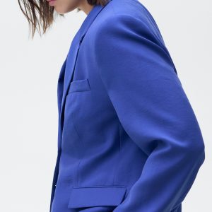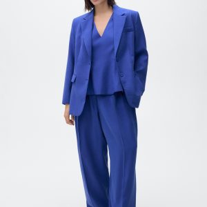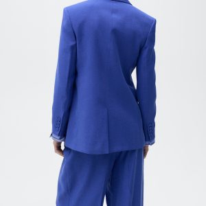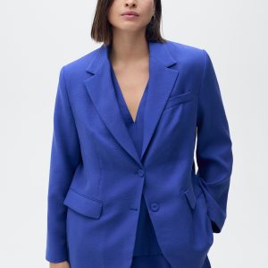 Modal fabric. Straight Design. Structured design. Lapel-collar V-neck collar. Long sleeves with buttoned cuffs. Chest welt pocket. Two side pockets with flaps. Front button closure. Suit style. Total look. Back Slit at the Hem. Available Plus