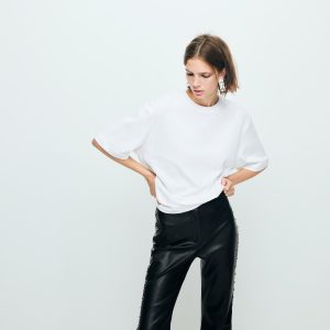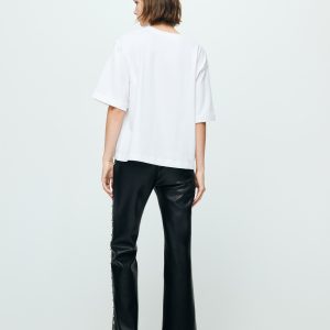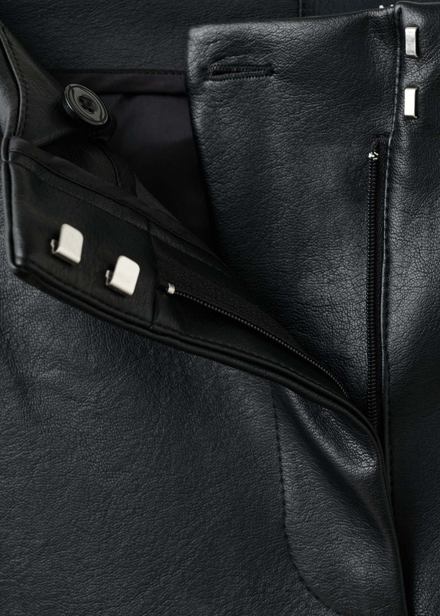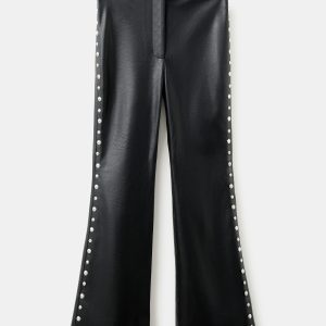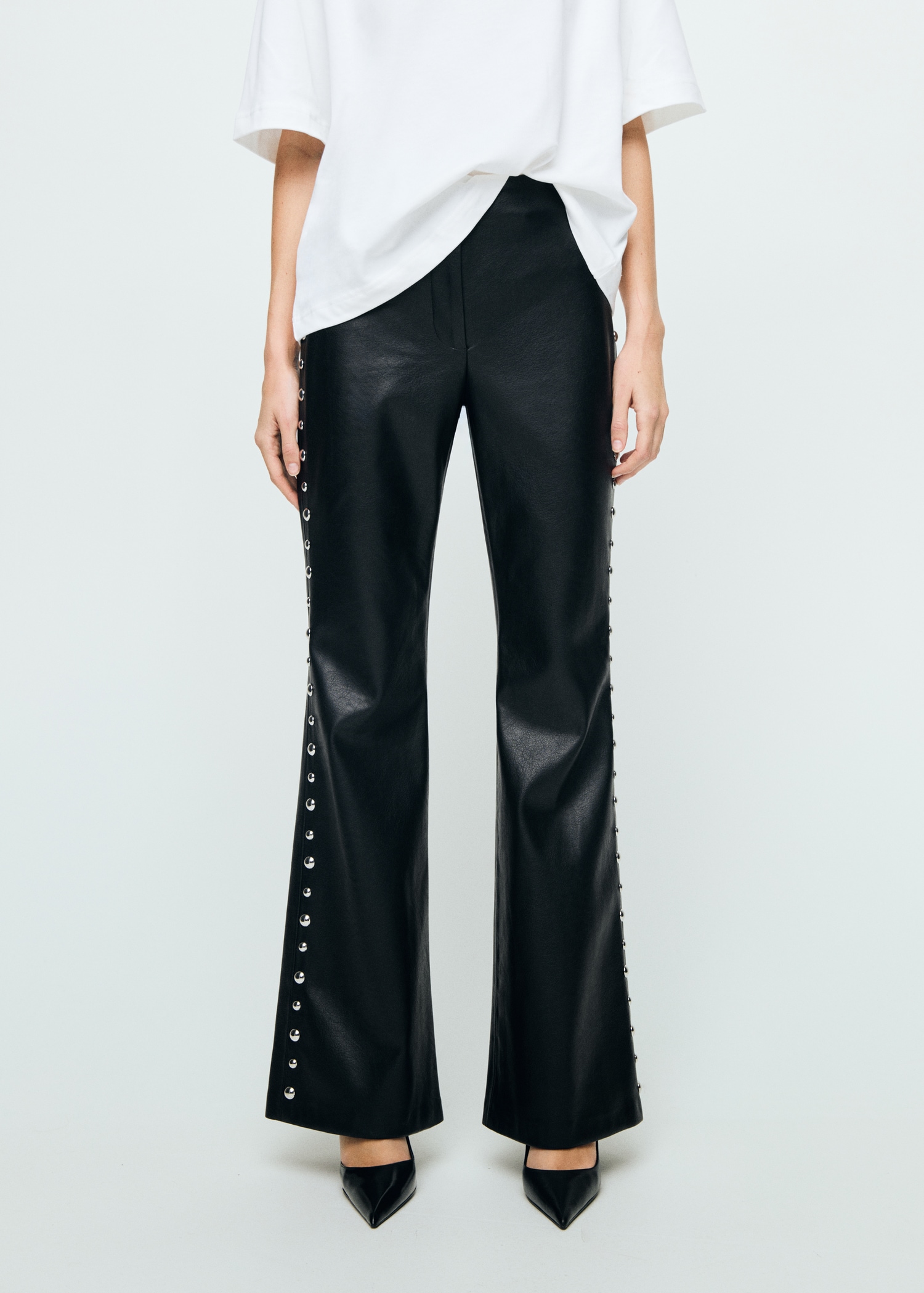 Leather effect. Long design. Flare design. Mid-rise. Stud embellishment. Concealed button, hook and zip fastening. Inner lining. This garment is part of our party and event collection, designed to elevate your looks for special occasions.