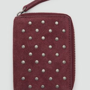 100% bovine leather. Square design. Two compartments. Zipper closure. Studded detail