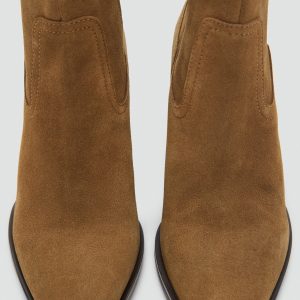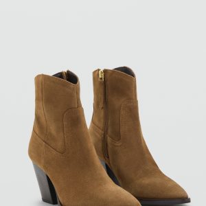 100% bovine leather. Suede. Pointed. Block heel. Zipper closure. 3.15 in heel