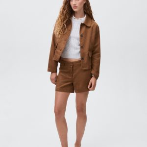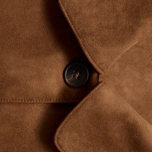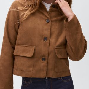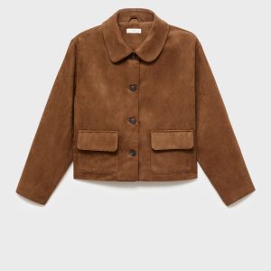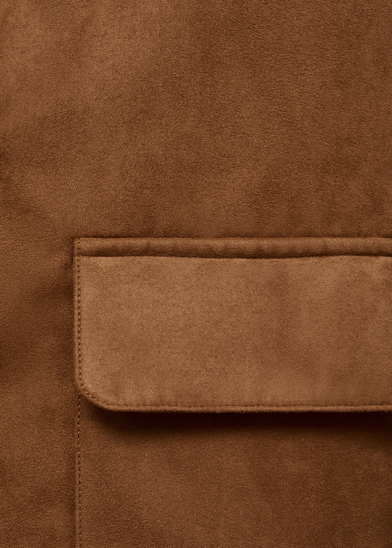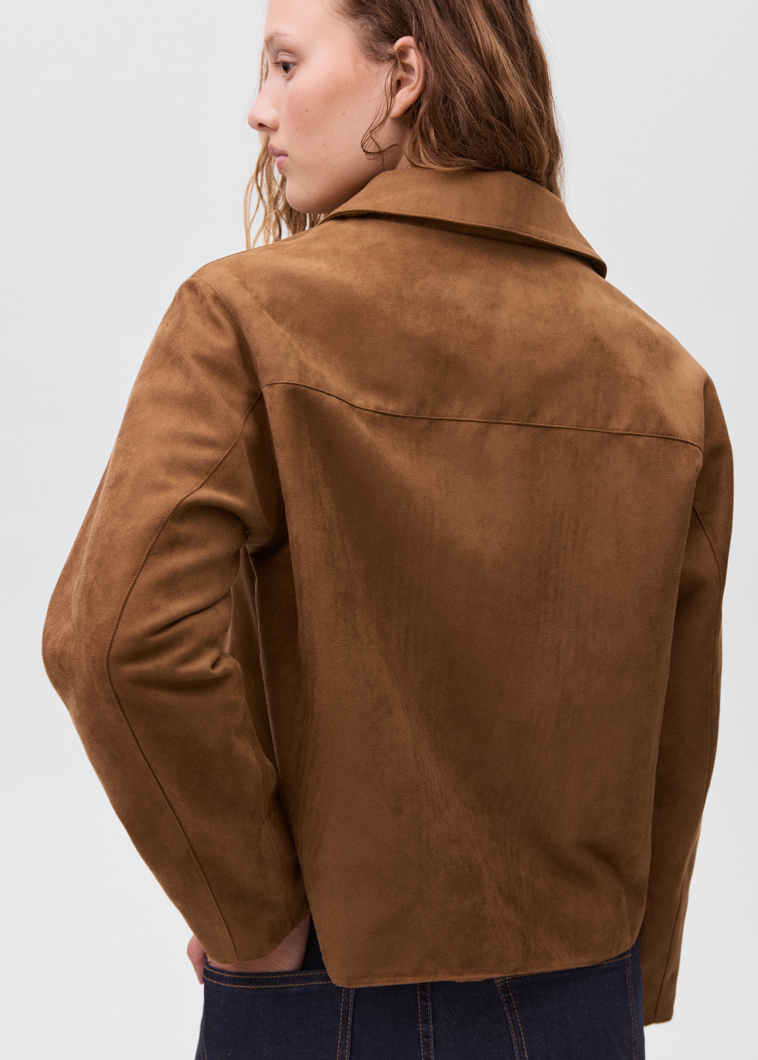Soft-effect fabric. Straight Design. Shirt collar. Long Sleeve. Front button closure. Two front pockets