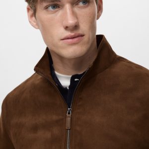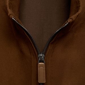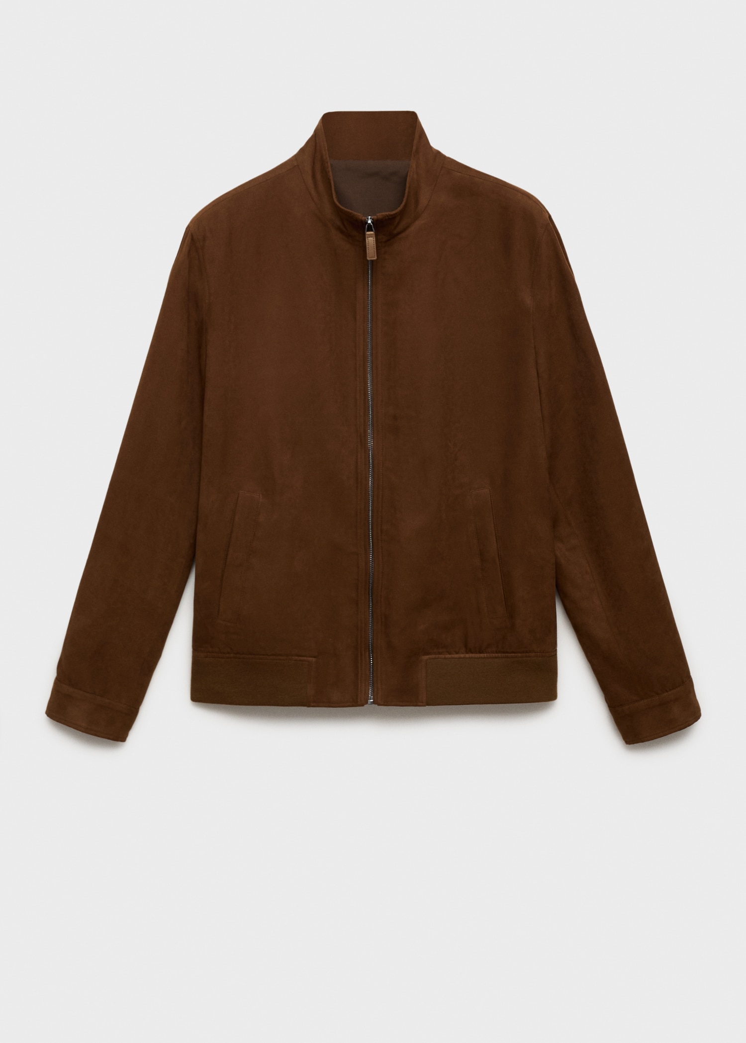 Straight silhouette. Funnel neck. Front zipper closure. Two side pockets with one press stud fastening. Buttoned cuffs. Hem with elastic band