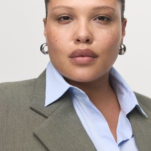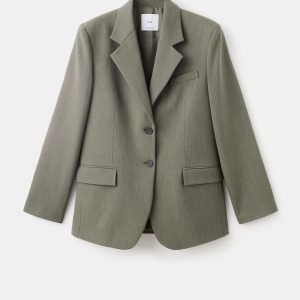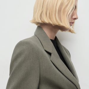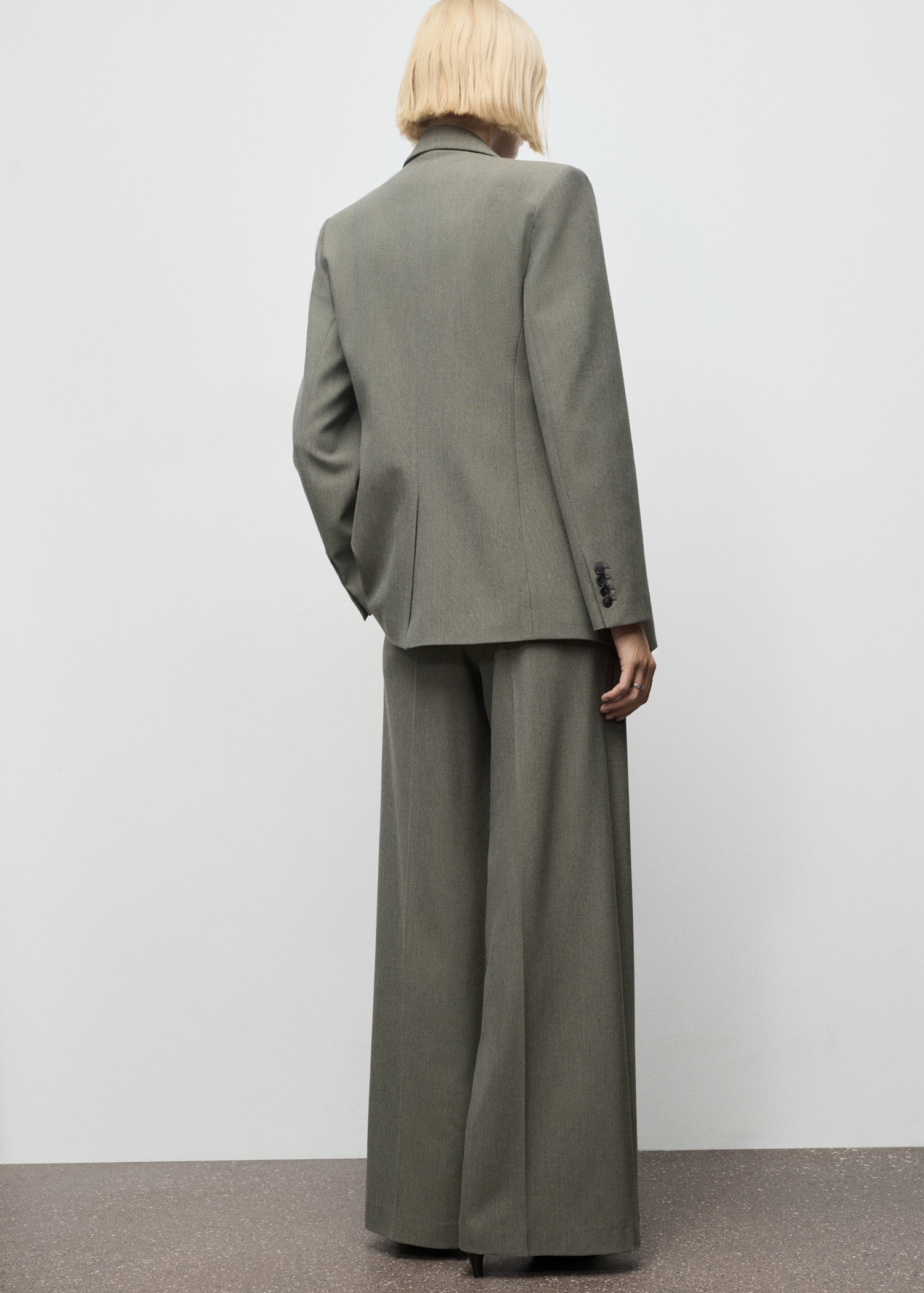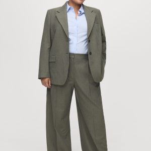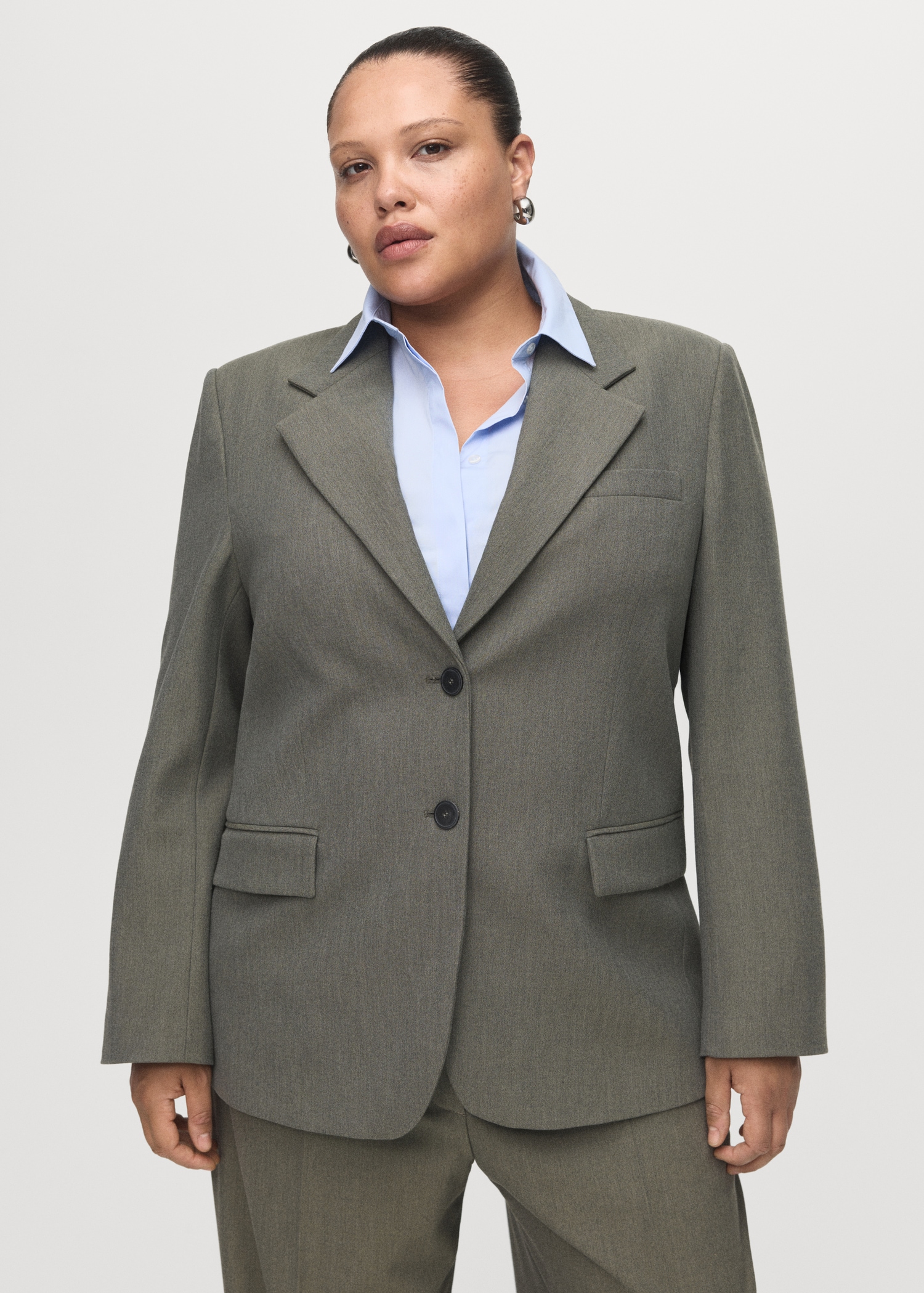 Straight Design. Lapel-collar V-neck collar. Notch lapels. Long sleeves with buttoned cuffs. Chest welt pocket. Two pockets with flaps on the front. Back Slit at the Hem. Front button closure. Inner lining. Total look. Available Plus