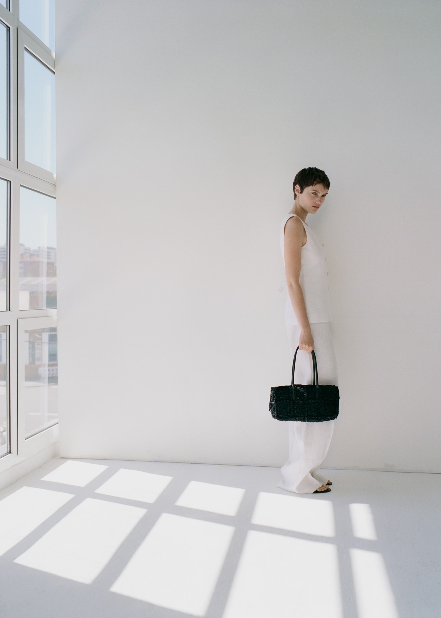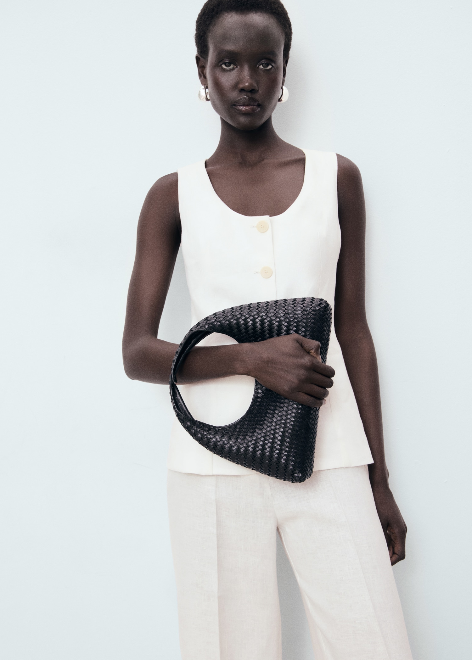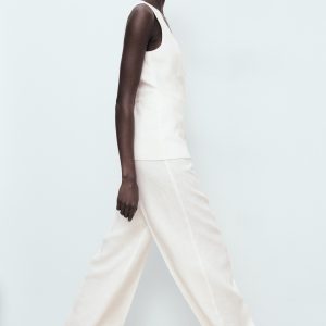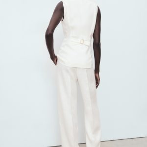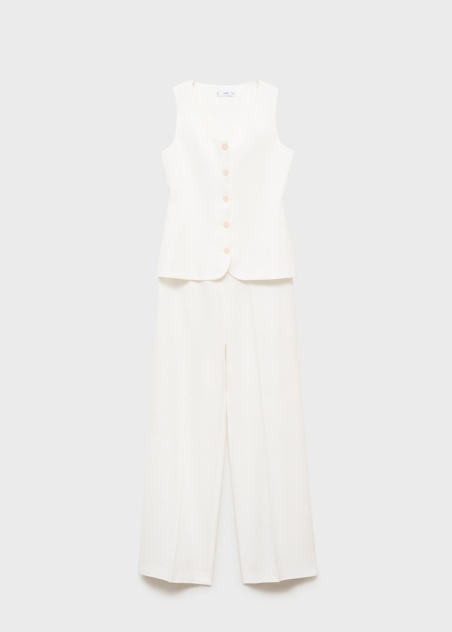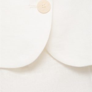 100% linen fabric. Long design. Straight Design. Suit style. Low neckline. Buckle detail on the back. Front button closure. 100% cotton lining