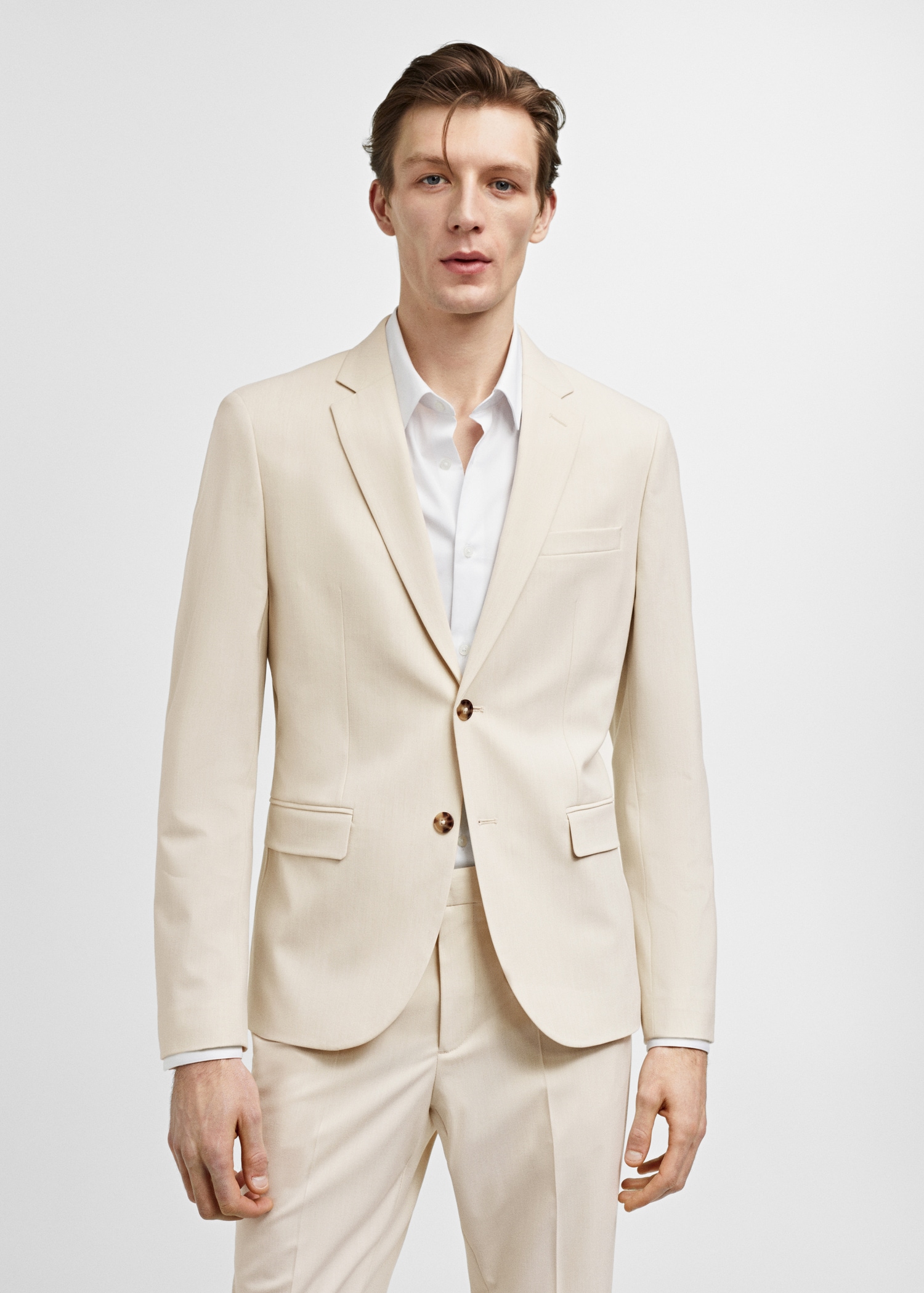Super slim fit. Comfort Stretch: Stretch fabric that provides extra comfort. Notch lapels and buttonhole. Two-button closure at the front. Chest welt pocket. Two pockets with flaps on the front. Long sleeves with buttoned cuffs. Double back slit. Inner lining. Two welt pockets inside. Tailoring collection. Comfort: Horizontal and vertical stretch fabric for added comfort. The Super Slim model is the tightest fit you will find in our suit collection. It has been designed in different colours and prints to wear at different times of the day and adjust to your personality. Ideal for informal events and celebrations.