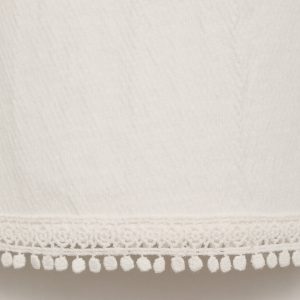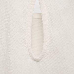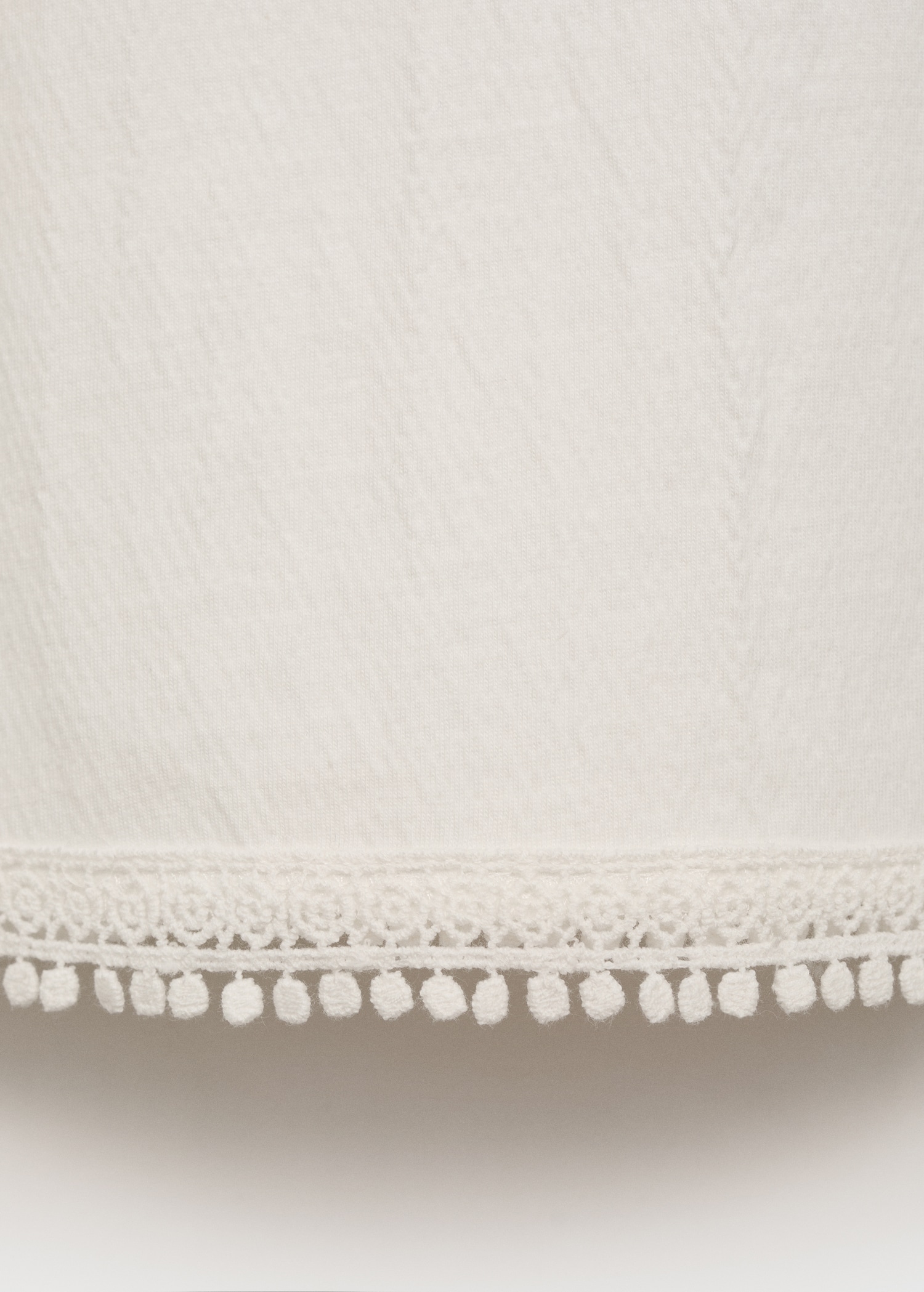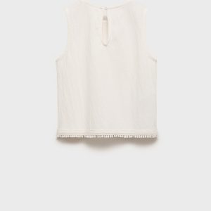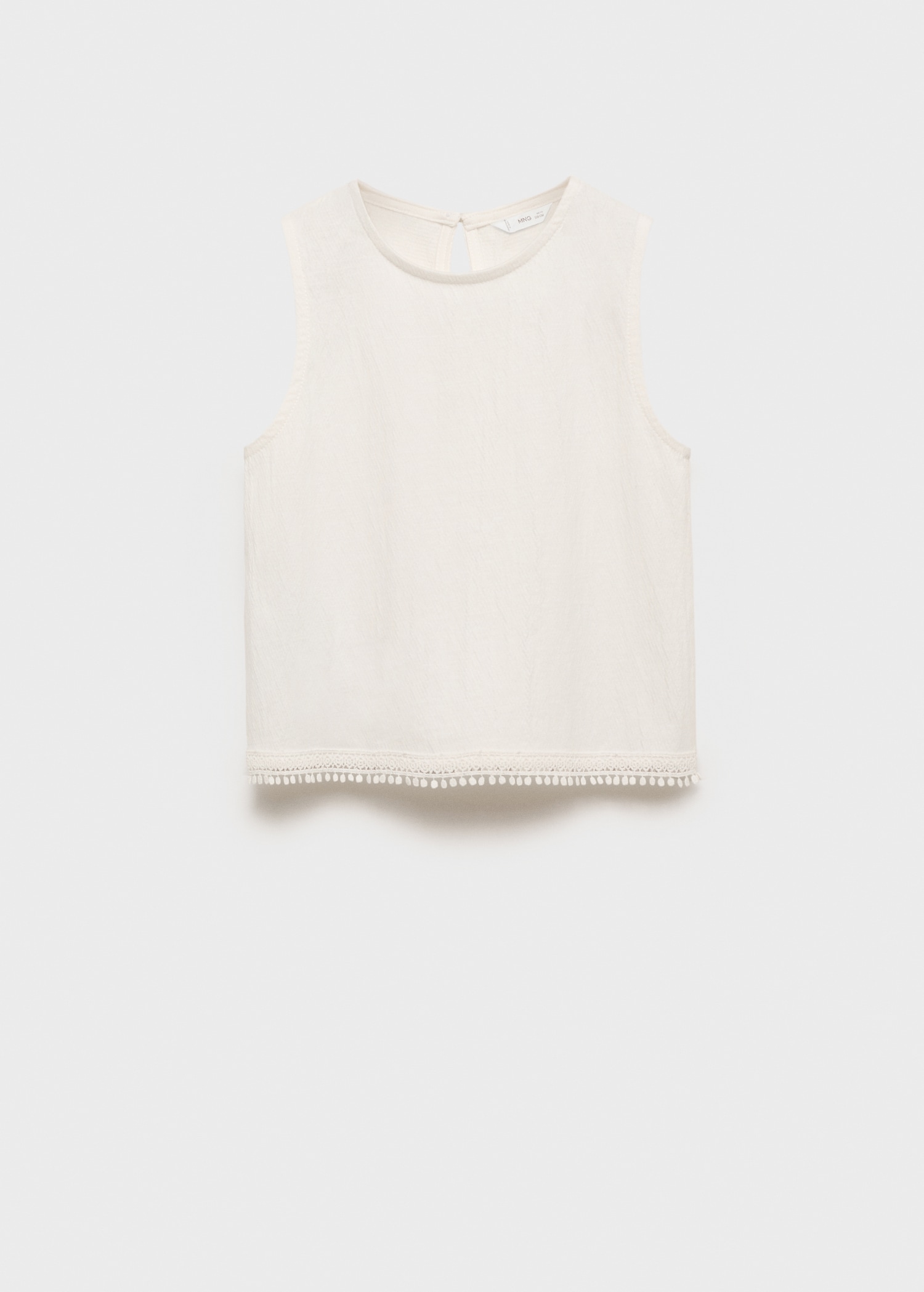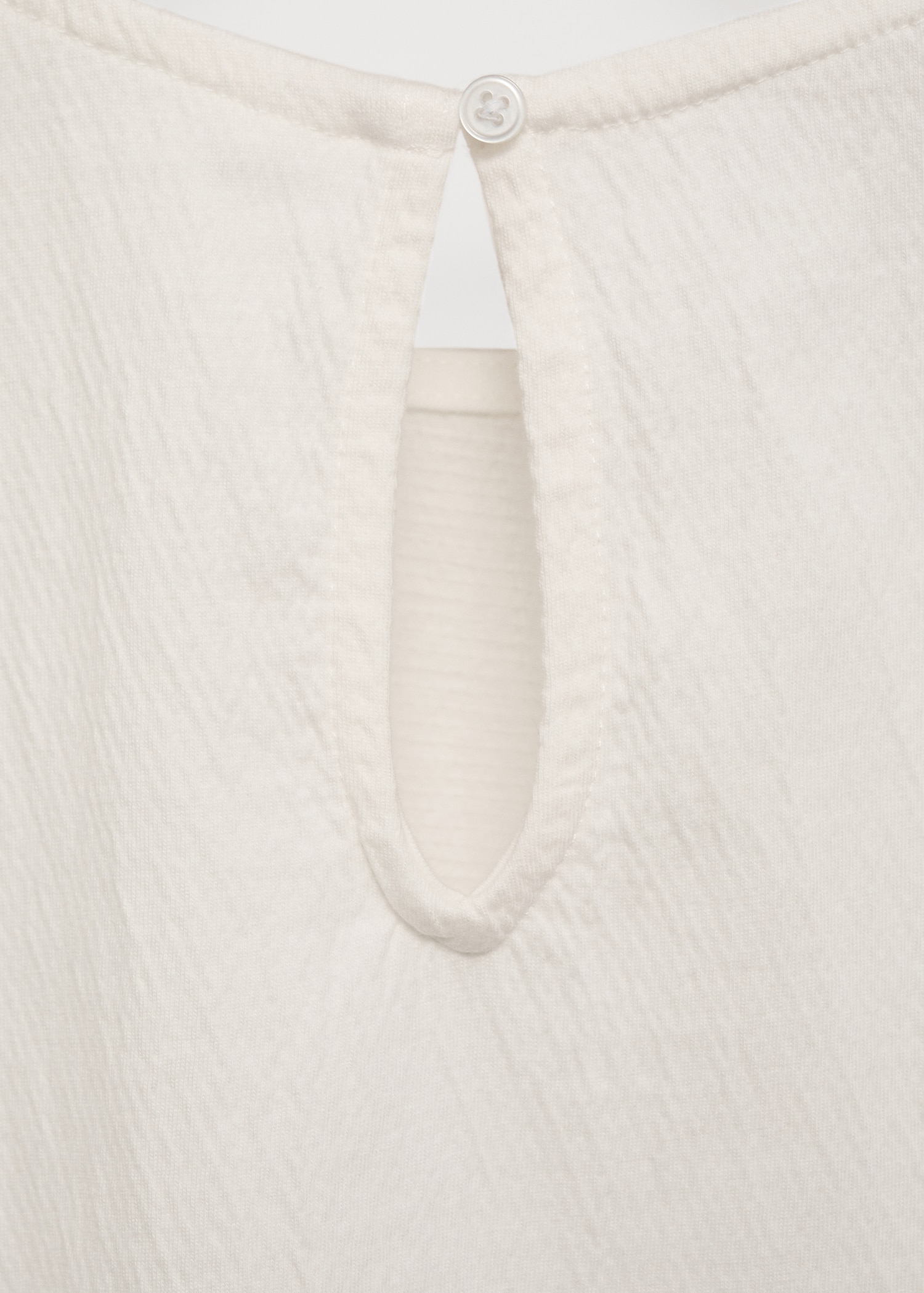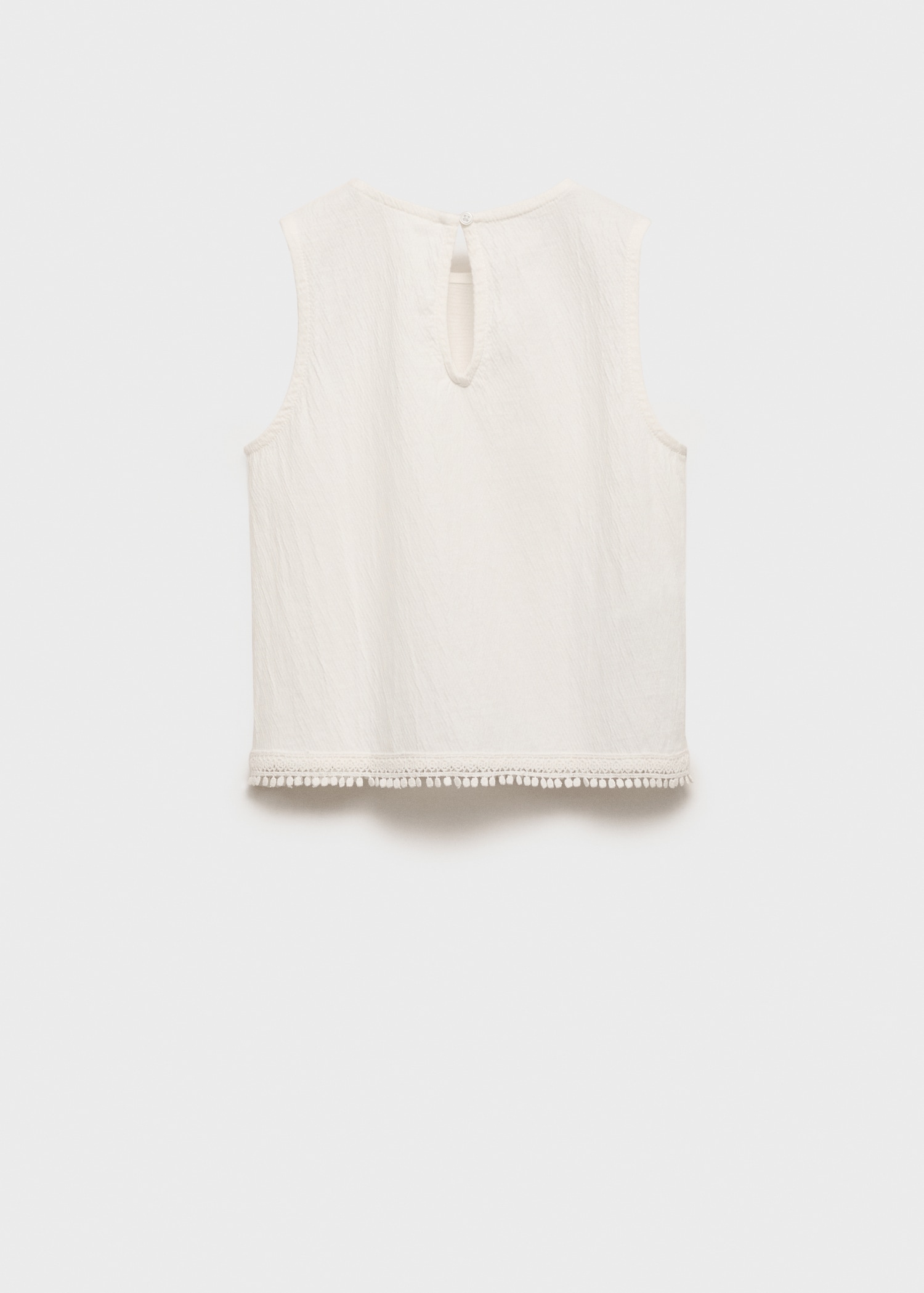 Cotton fabric. Textured fabric. Straight Design. Crew neck. Sleeveless. Decorative embroidery on the hem. Button closure at the back