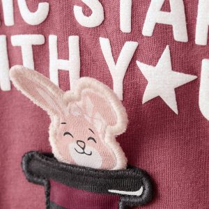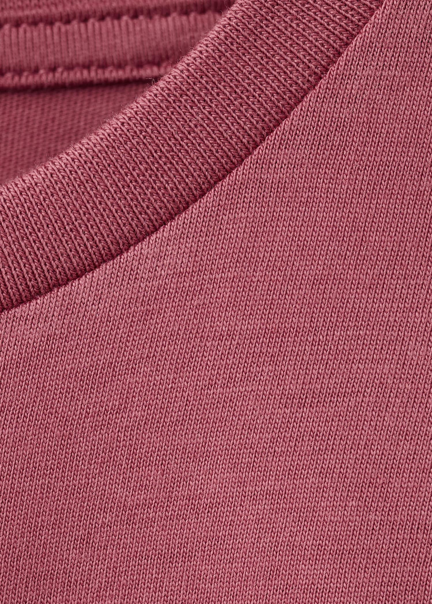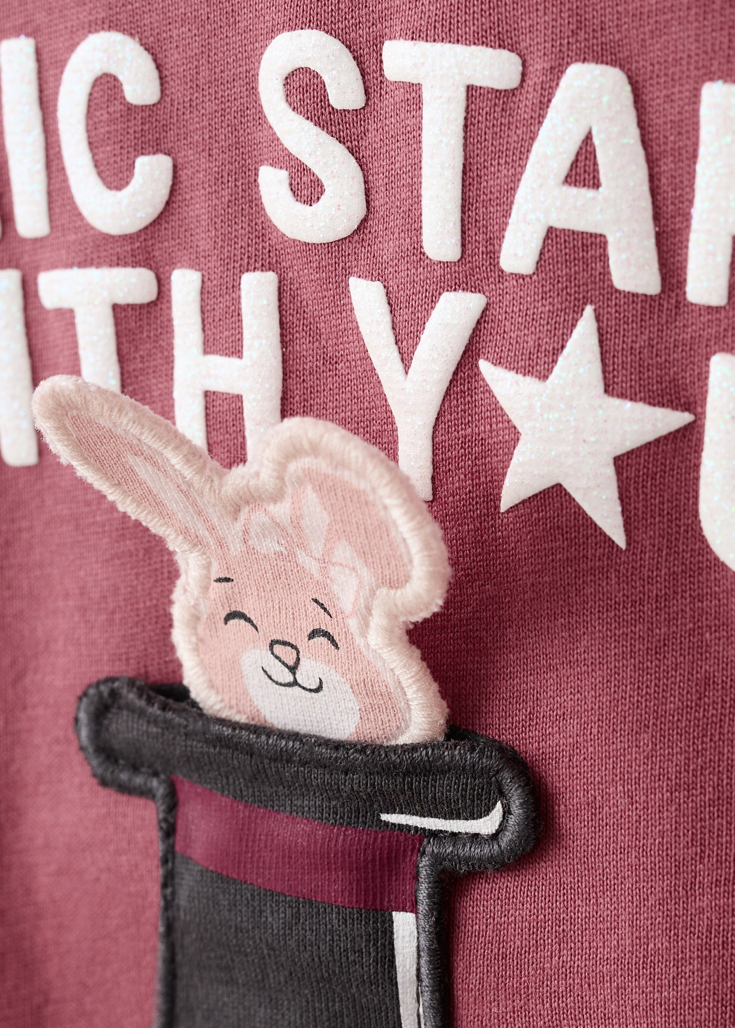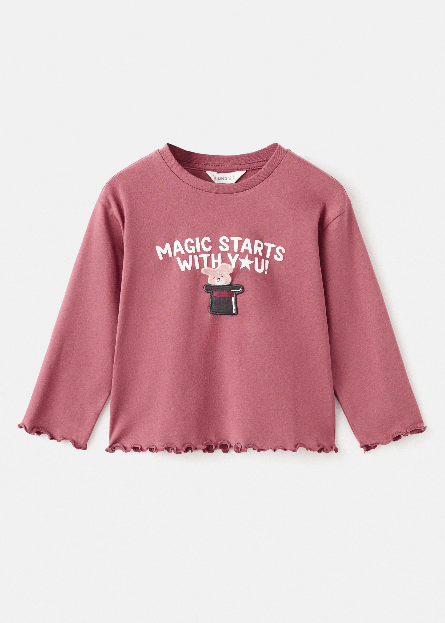 Crafted from 100% cotton fabric, this garment features a straight design with a print and embroidery on the front. The texture is complemented by long sleeves, a round neckline, and ribbed finishes