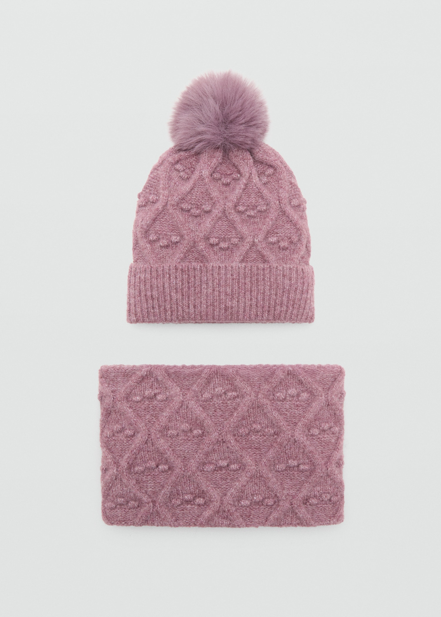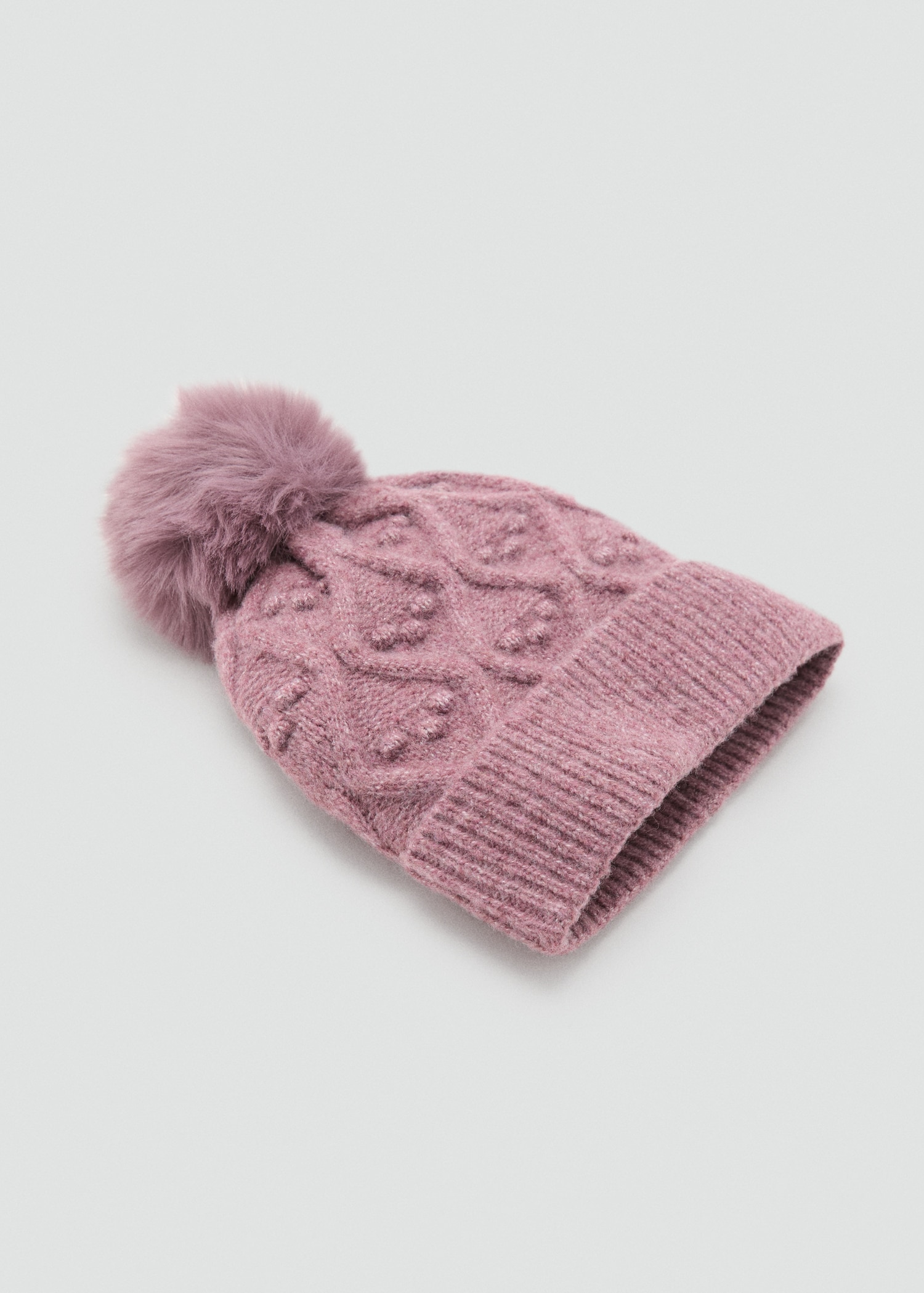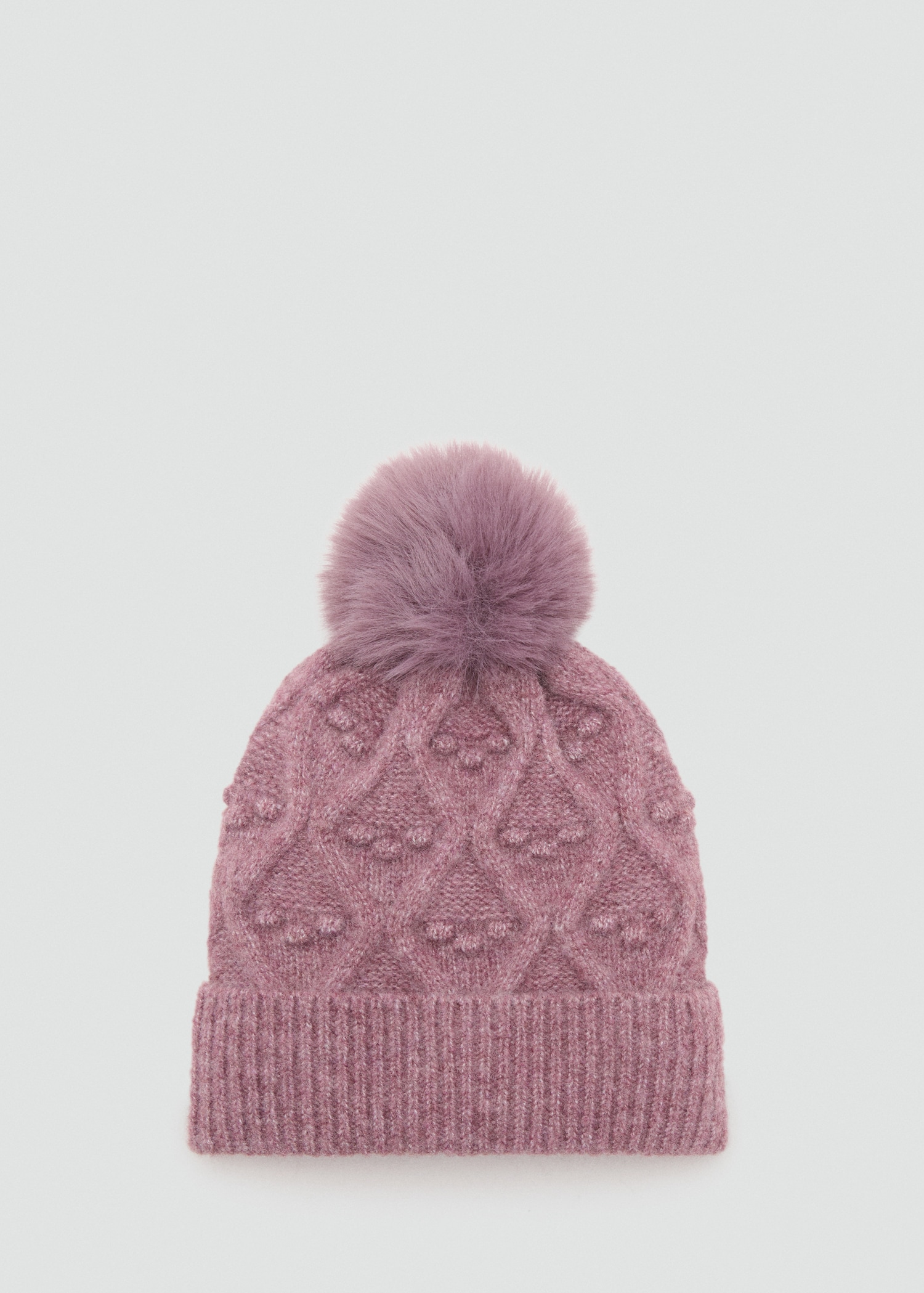 Knitted fabric. Textured design. Rolled-up hem. Decorative tassel. Available set. This hat has a matching scarf available