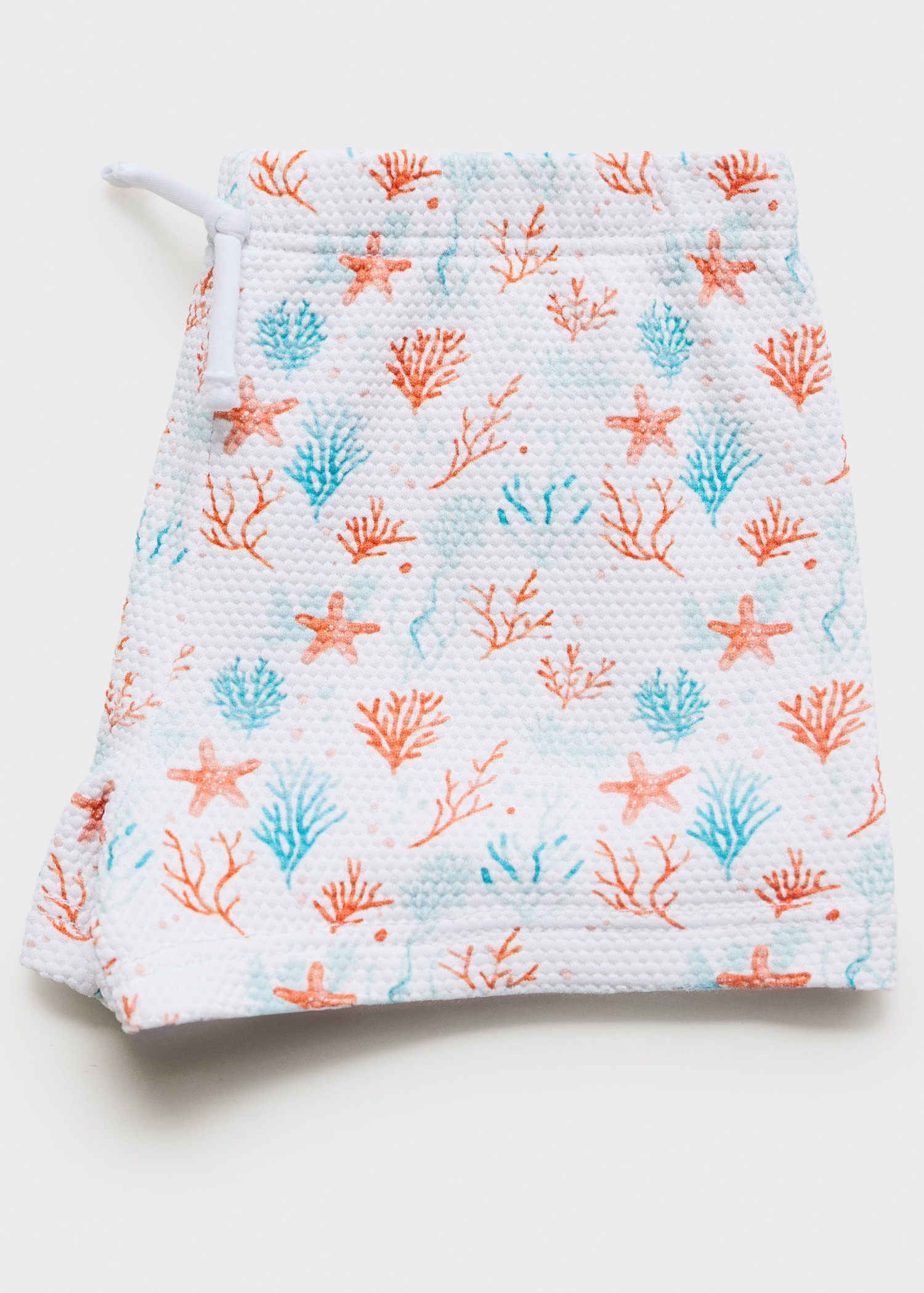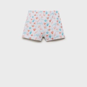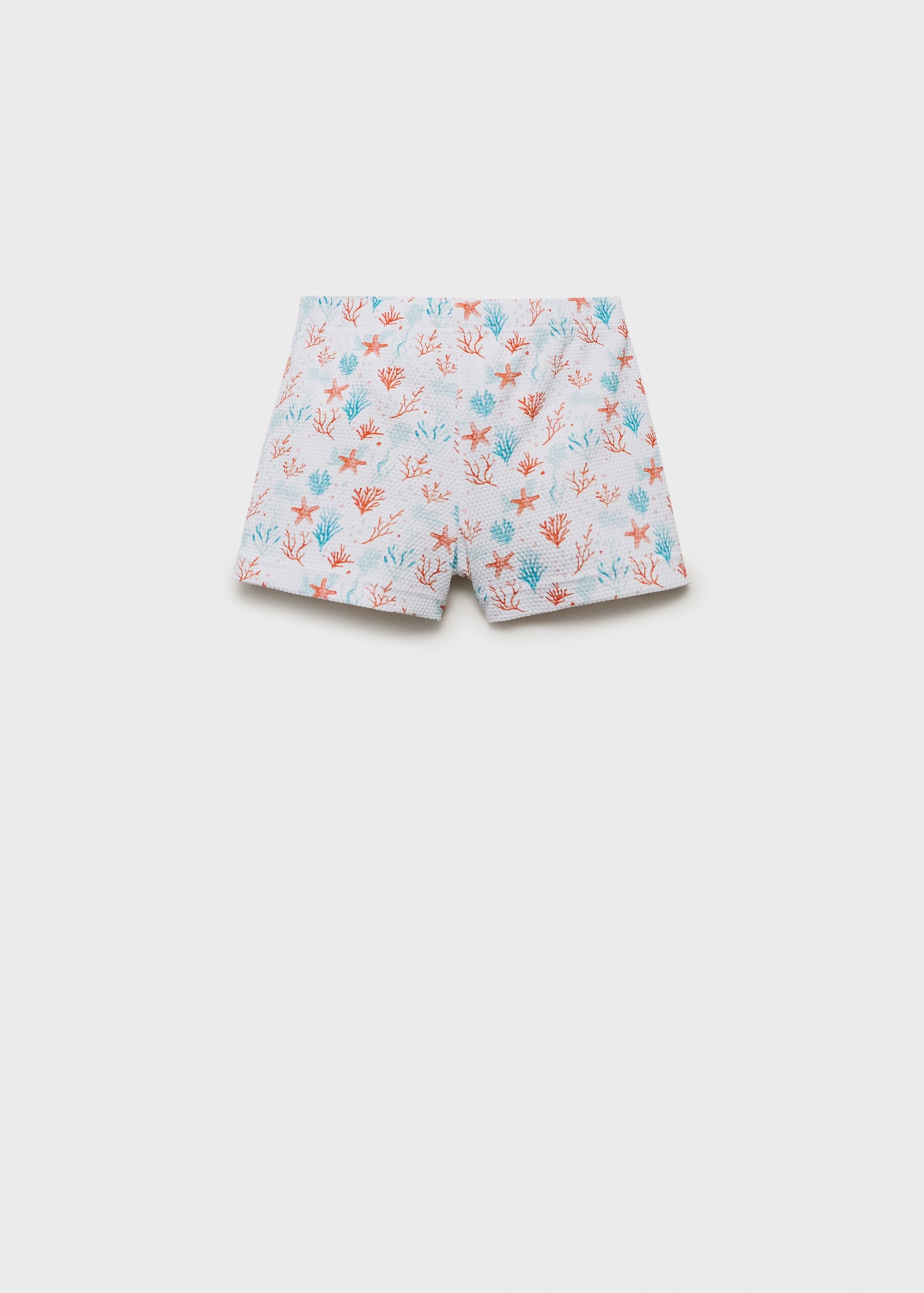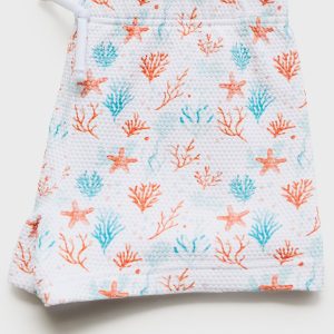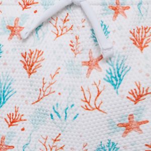 Textured fabric. Straight Design. Short design. Printed design. Marine print. Elastic waist with drawstring. Inner lining. Promotional product