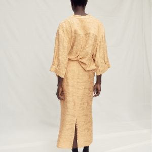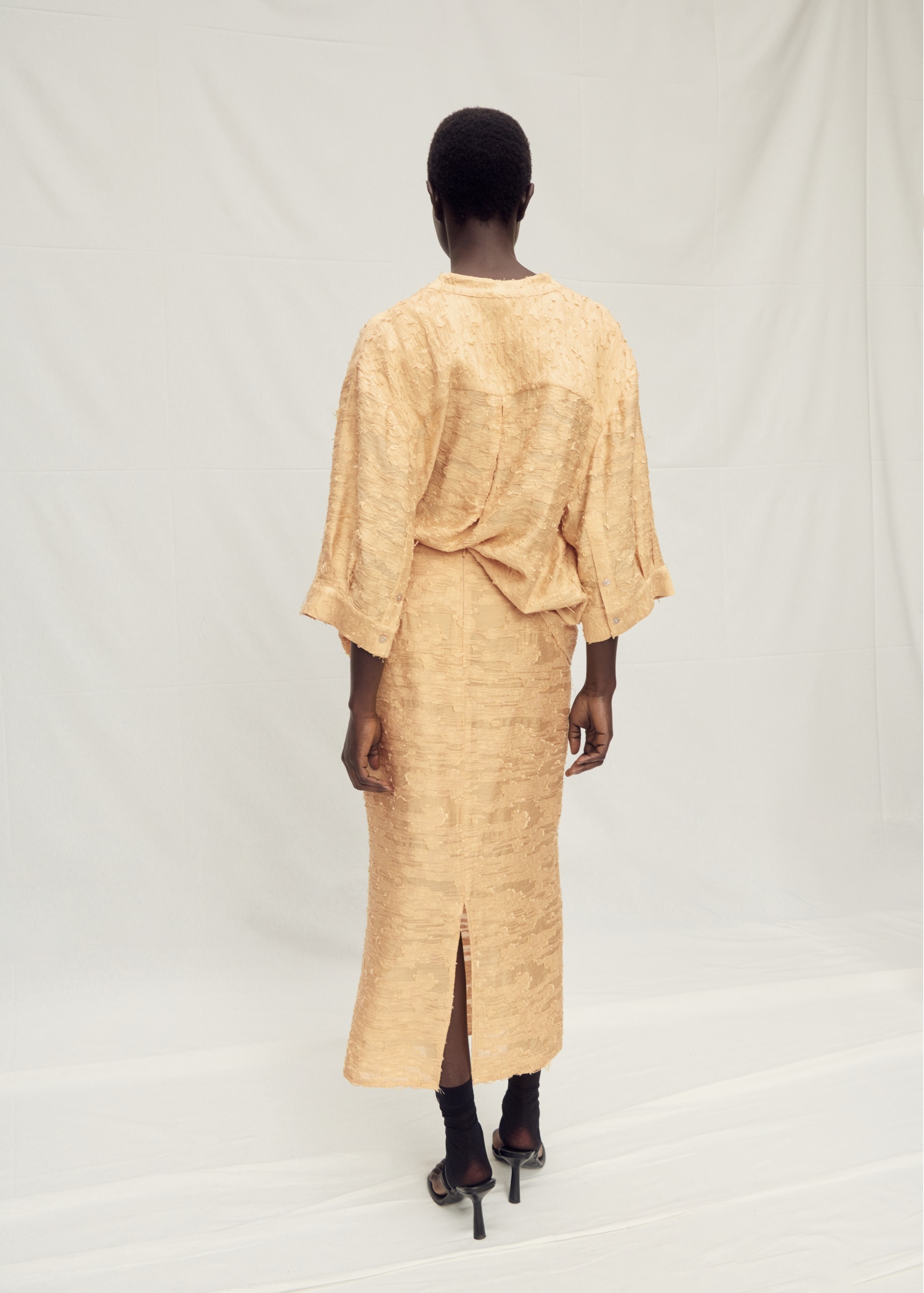 Textured fabric. Midi design. Straight Design. Mid-rise. Back Slit at the Hem. Back zipper closure. Inner lining. Total look. Selection Collection. A selection of refined garments, made with quality materials to create a feminine and contemporary closet