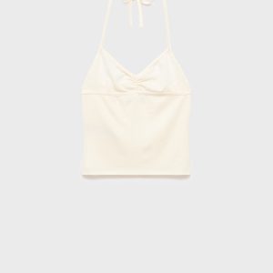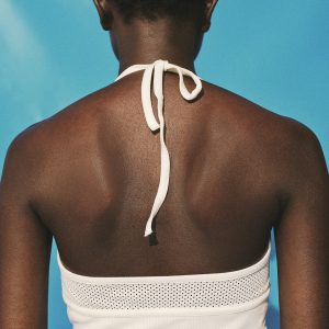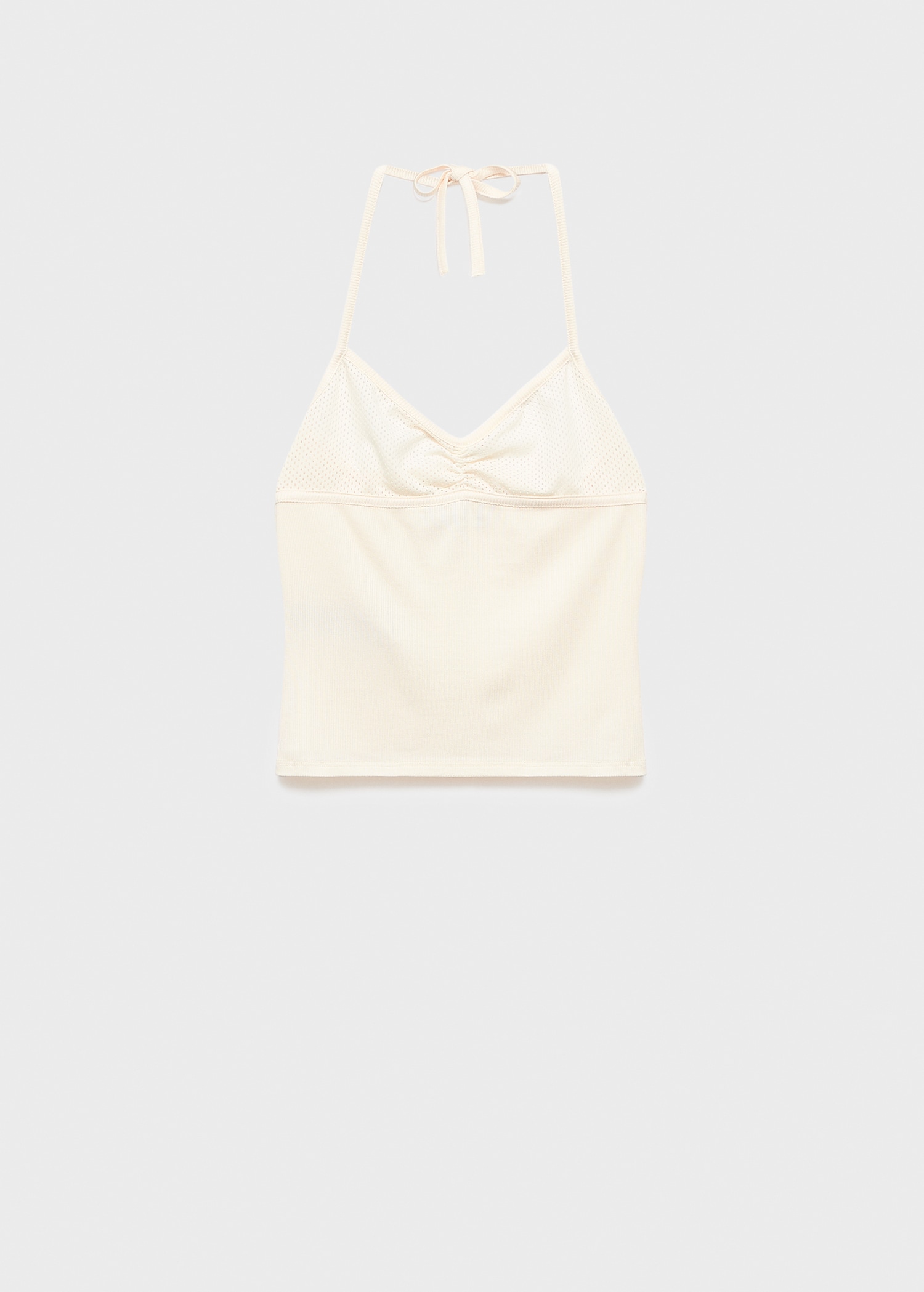 With a fitted design and in stretch fabric, this top features a low neckline and thin straps. It has a perforated panel and a back cut-out, with a knot closure at the neck