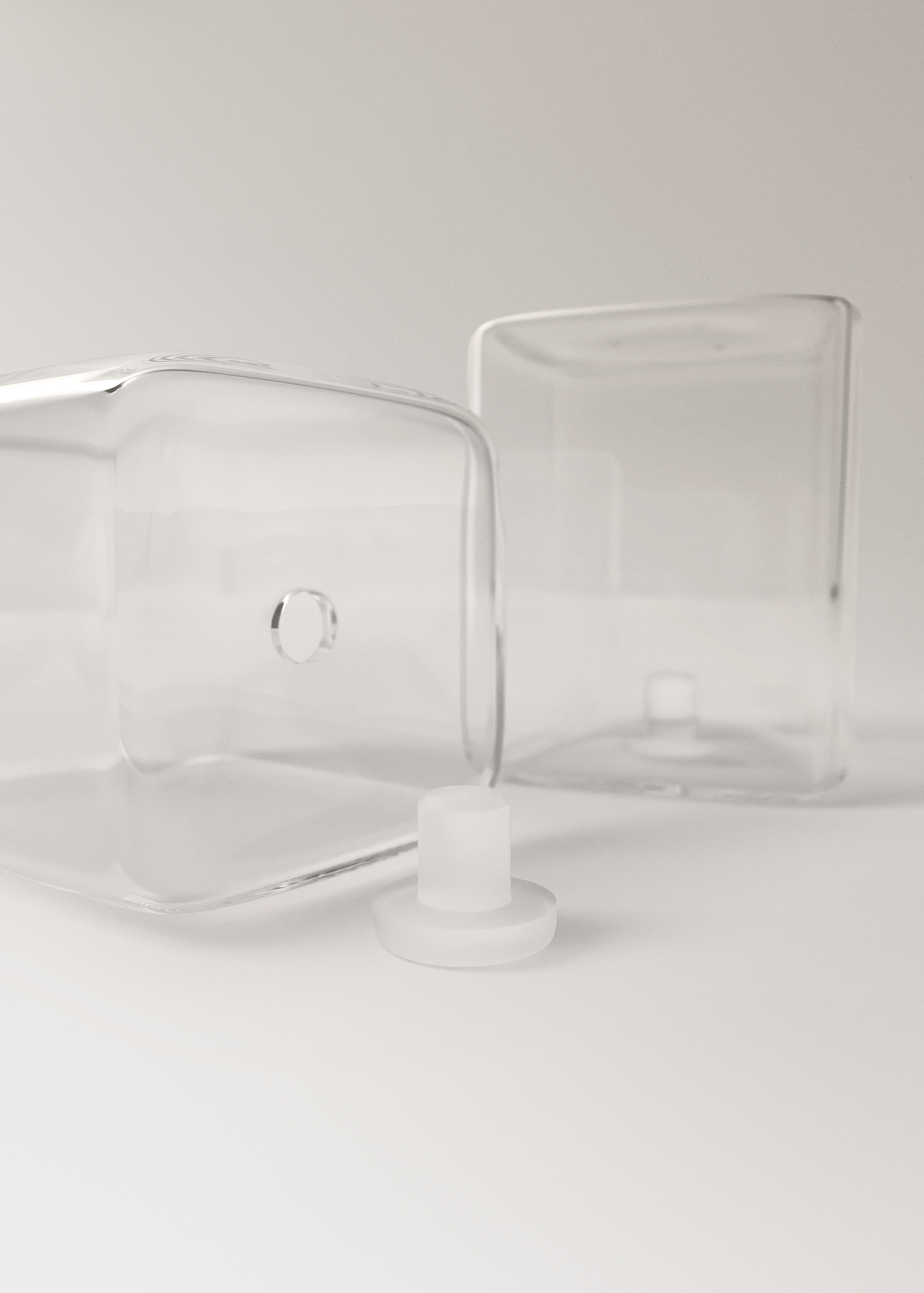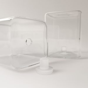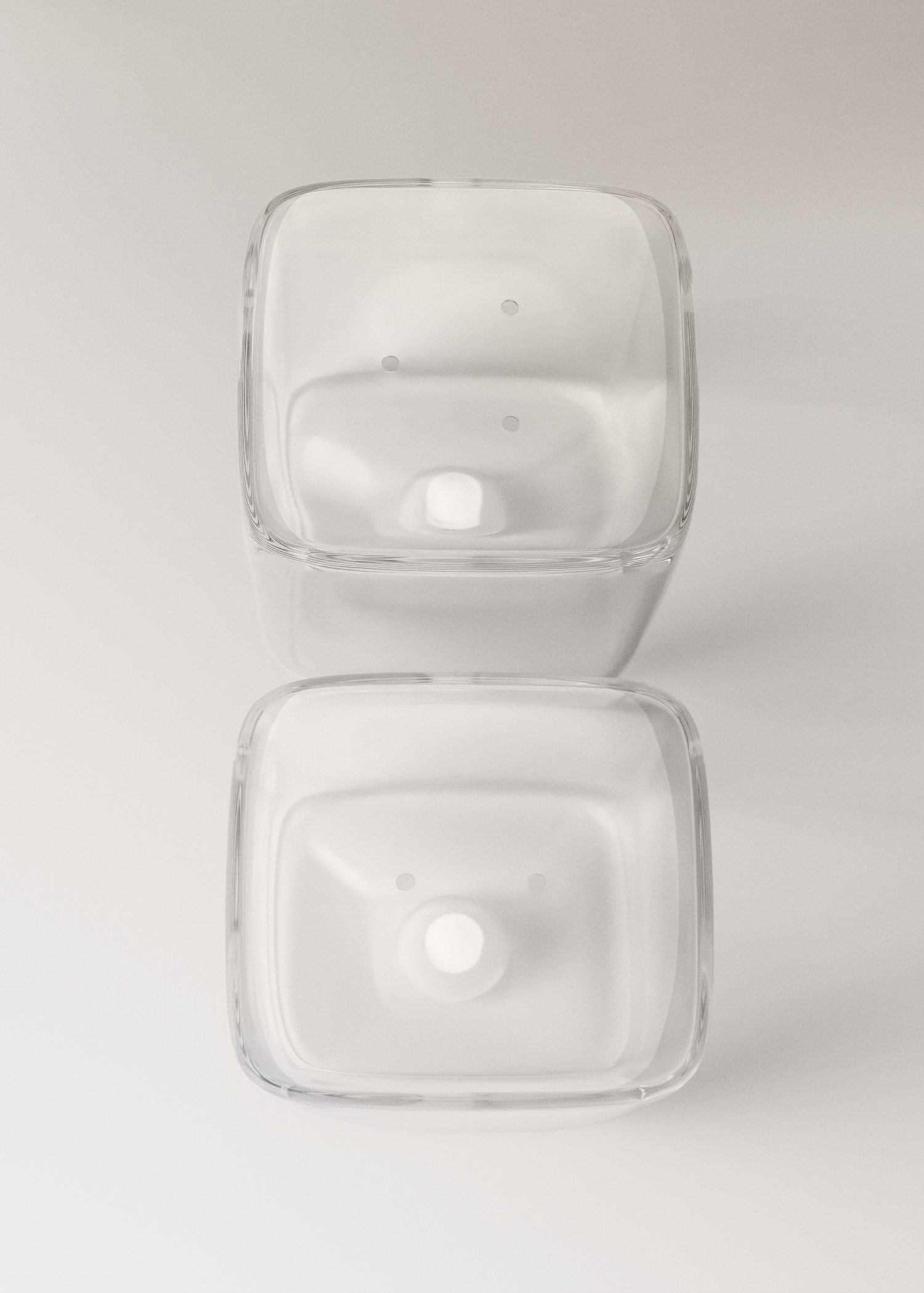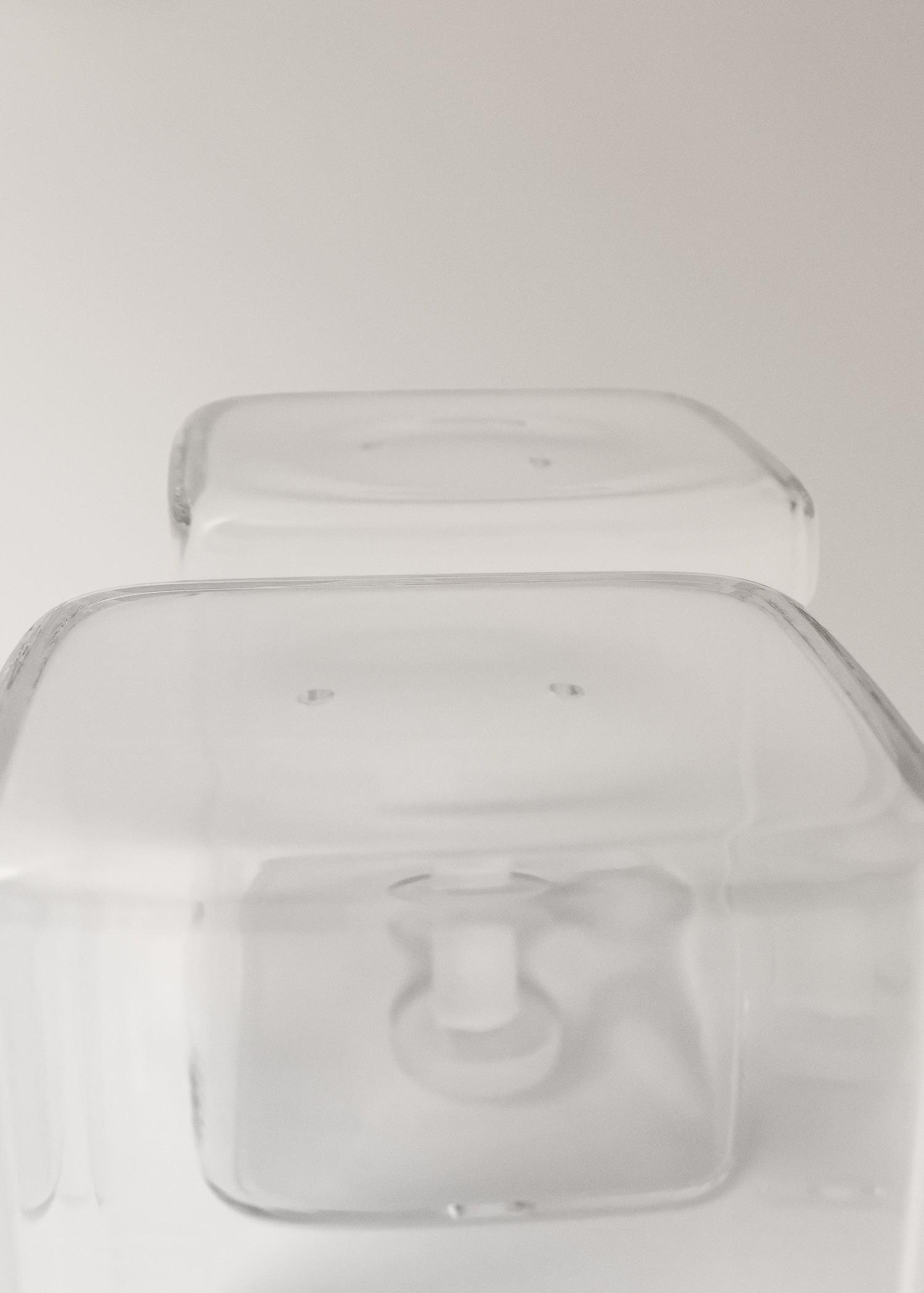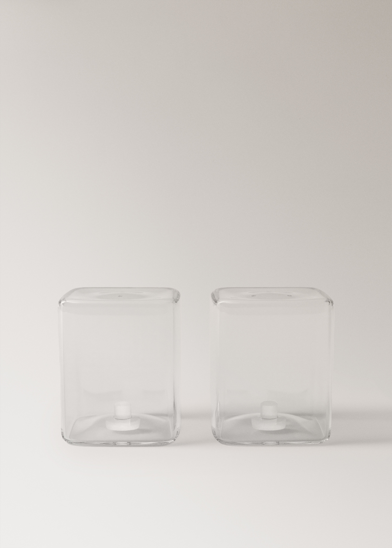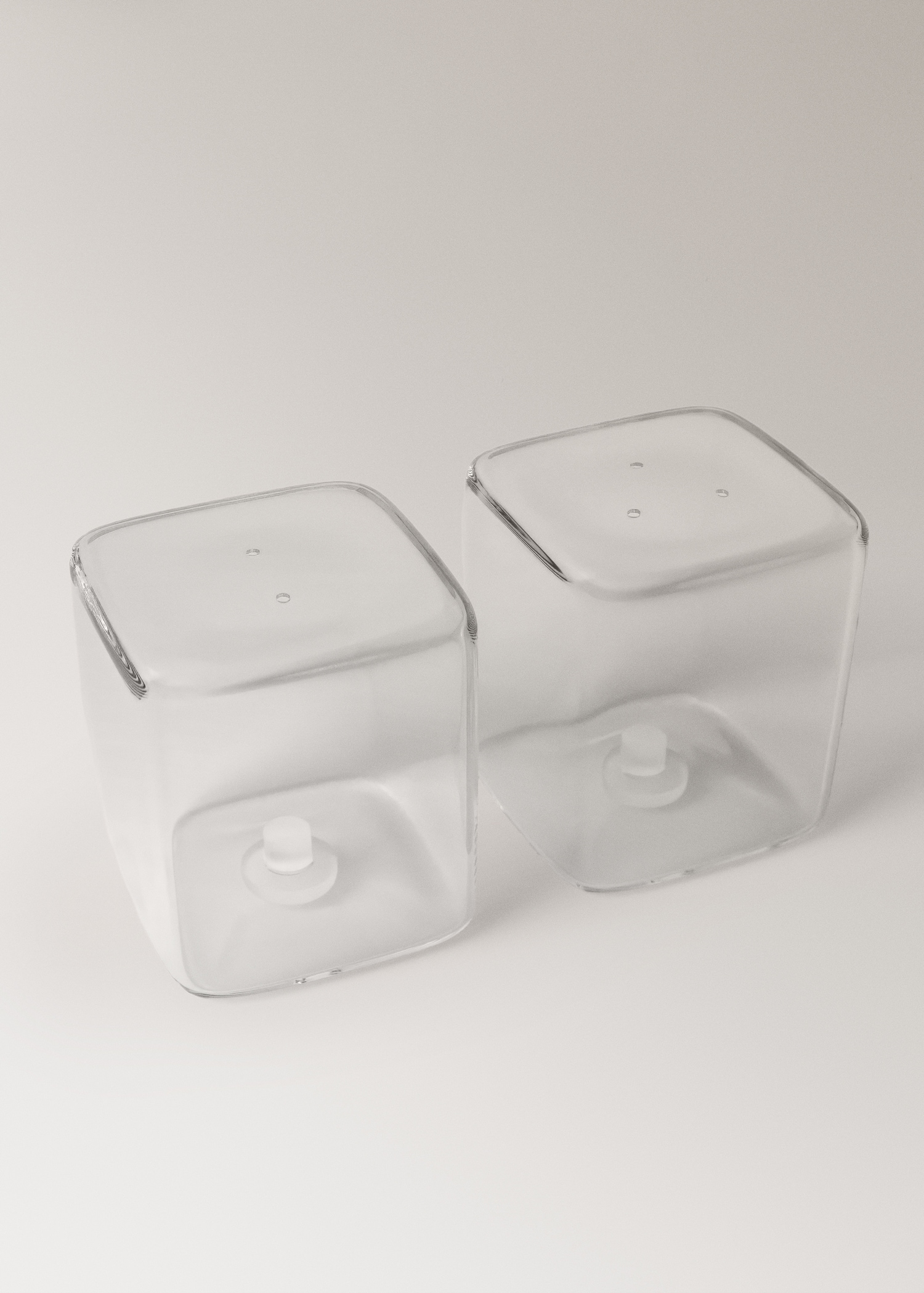 100% borosilicate. Borosilicate salt and pepper set. Made from 100% borosilicate glass, a material renowned for its thermal resistance, durability and crystal-clear transparency, making it both a functional and aesthetic choice. This salt and pepper set is designed with a modern and minimalist approach, perfect for adding a sophisticated touch to any table or kitchen. Perfect for those seeking decorative elements that are both functional and harmonious with a simple and refined design