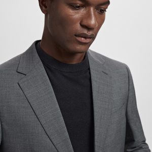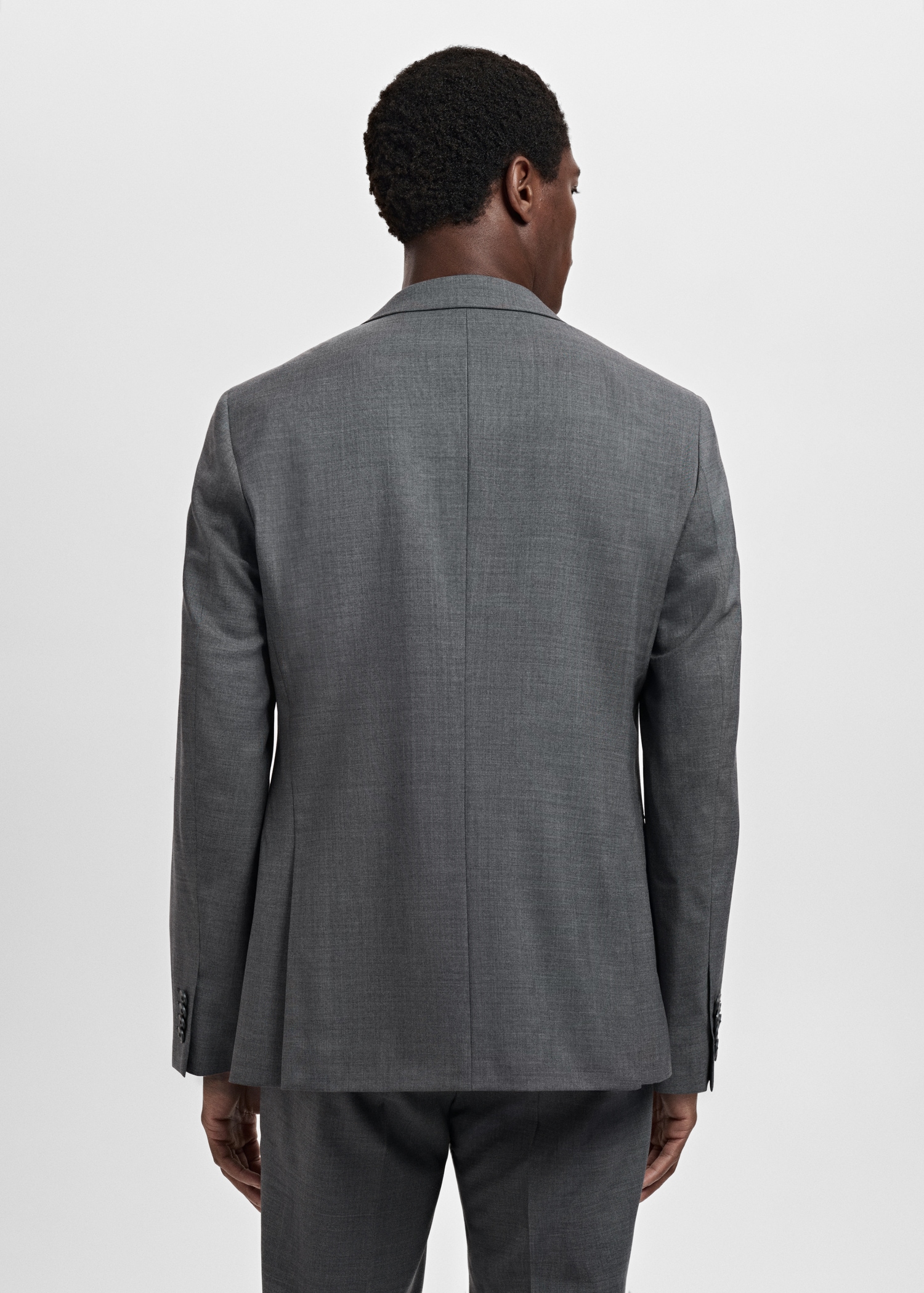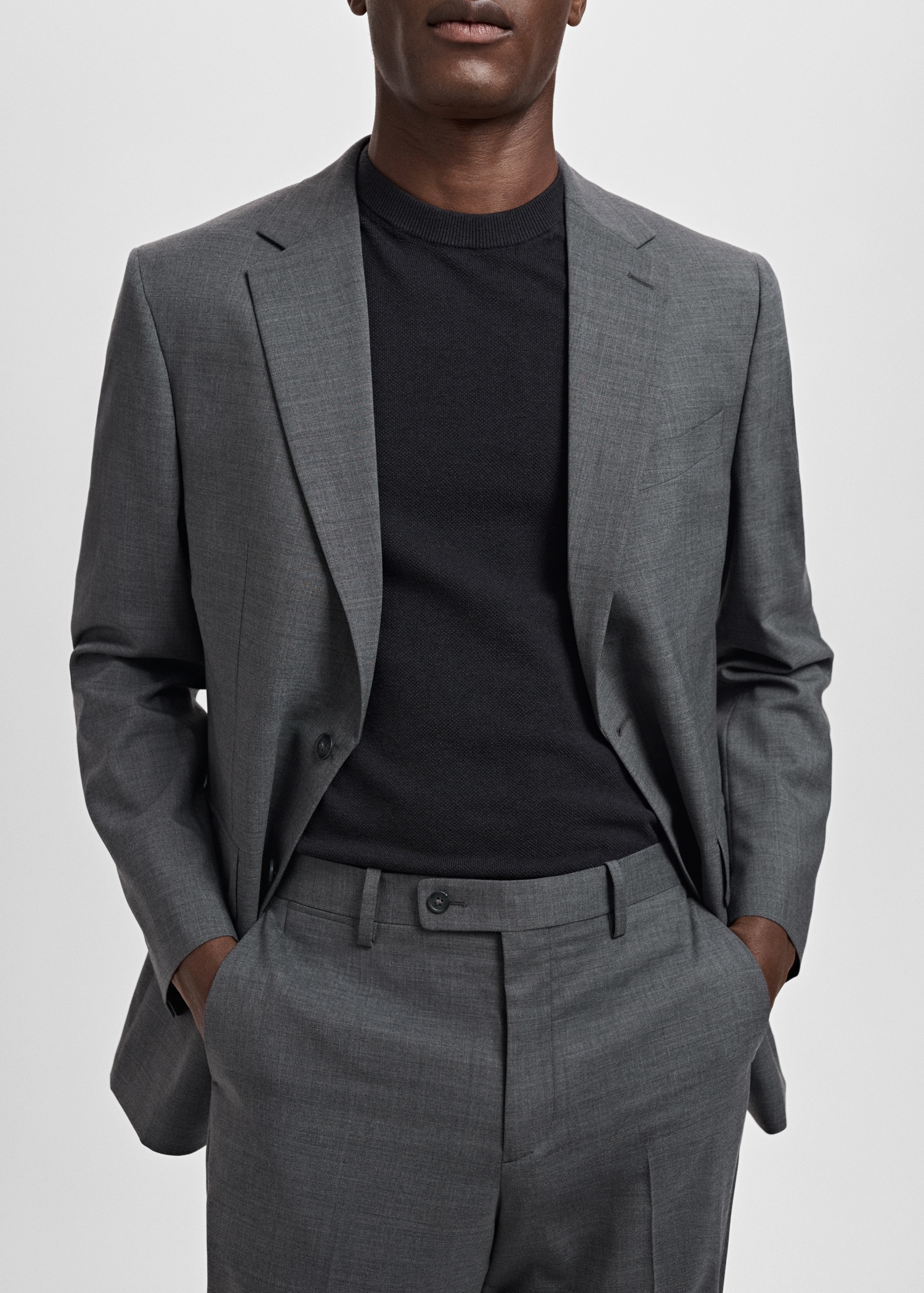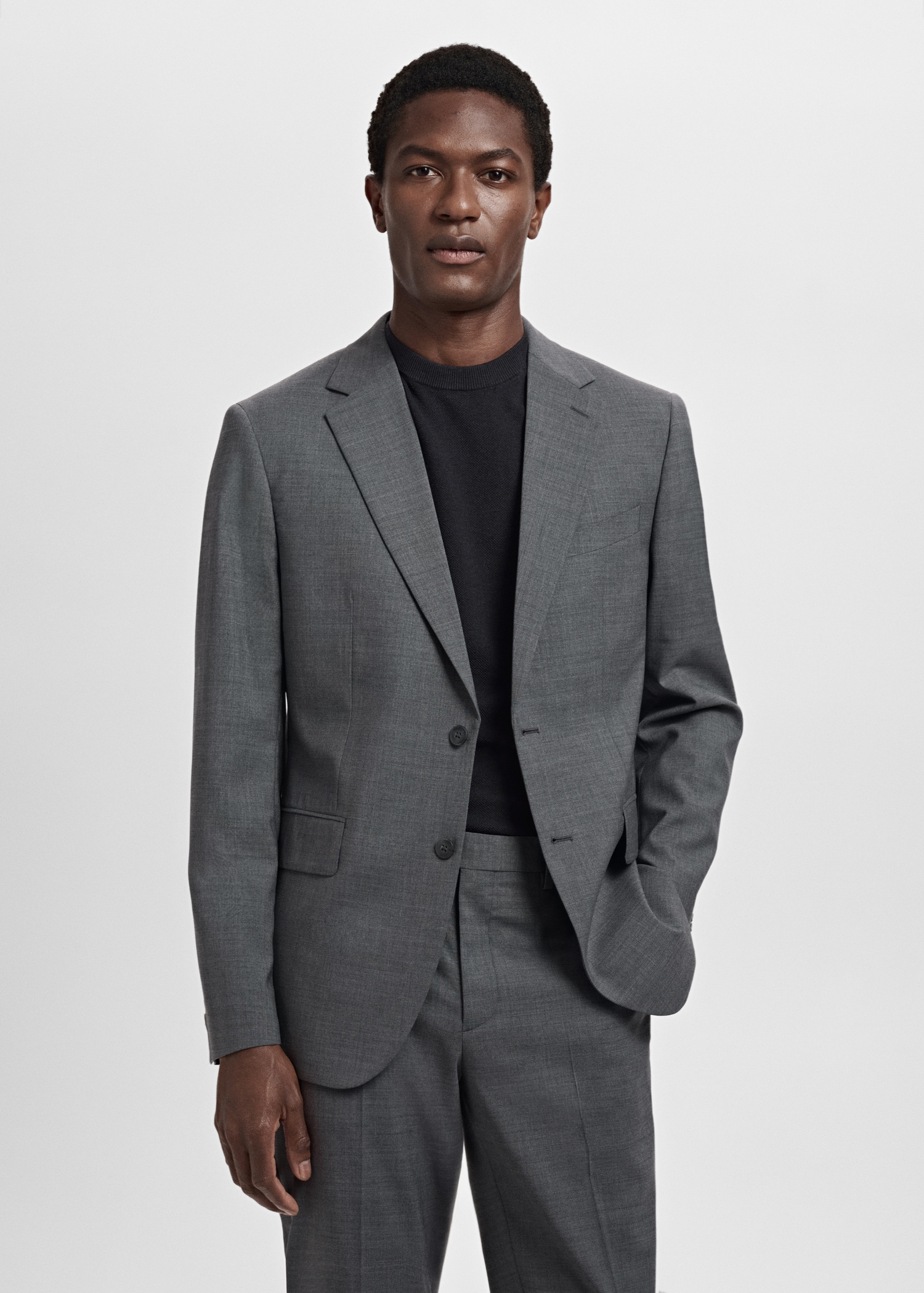 Slim fit. 100% virgin wool fabric. Inner lining. Chest welt pocket. Two front welt pockets. Two vents at the back hem. ESSENTIALS: Made to last. We have strengthened our quality standards by adding new endurance tests to our garments. Designed with careful consideration of their construction, they are even more durable, versatile and timeless