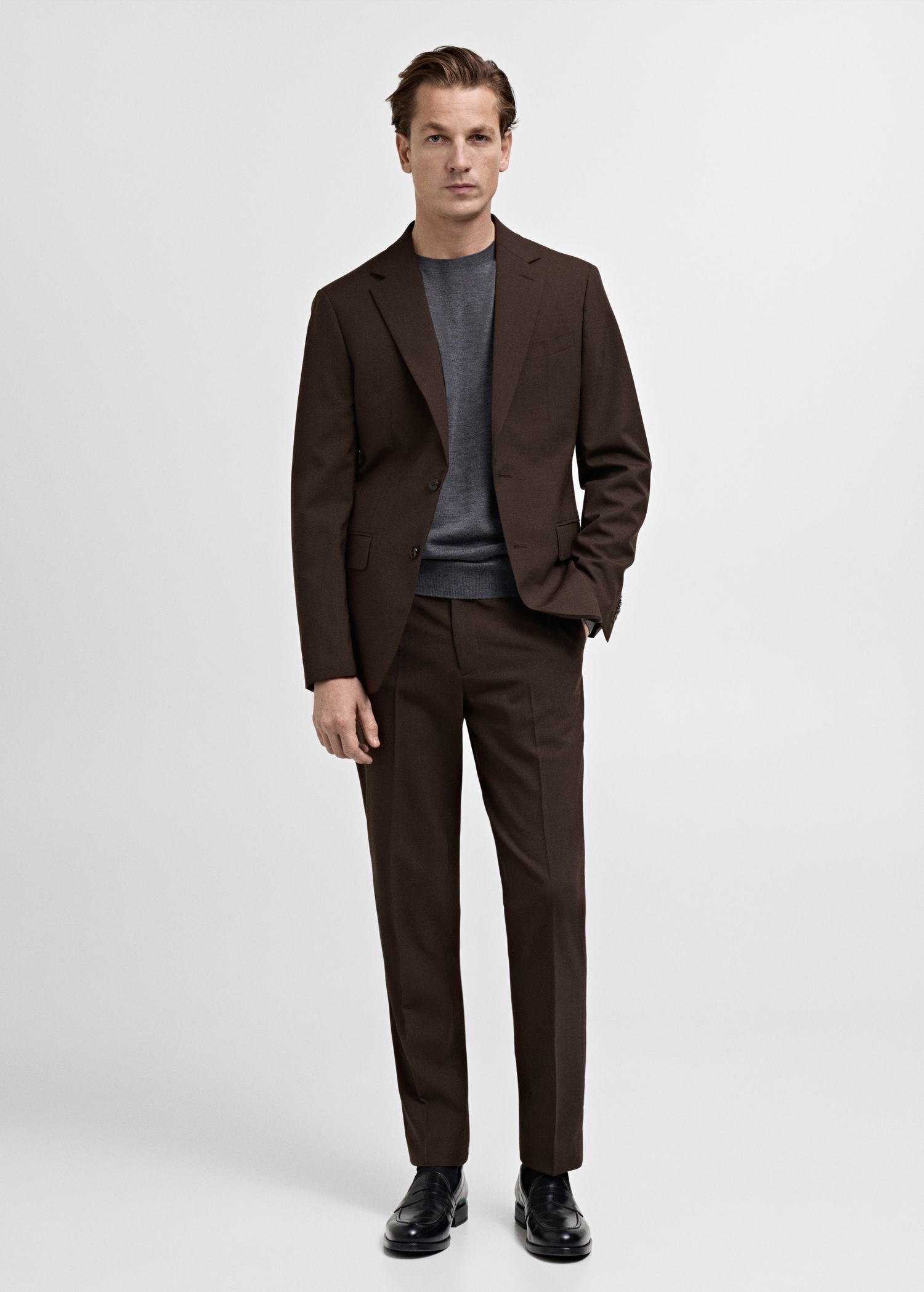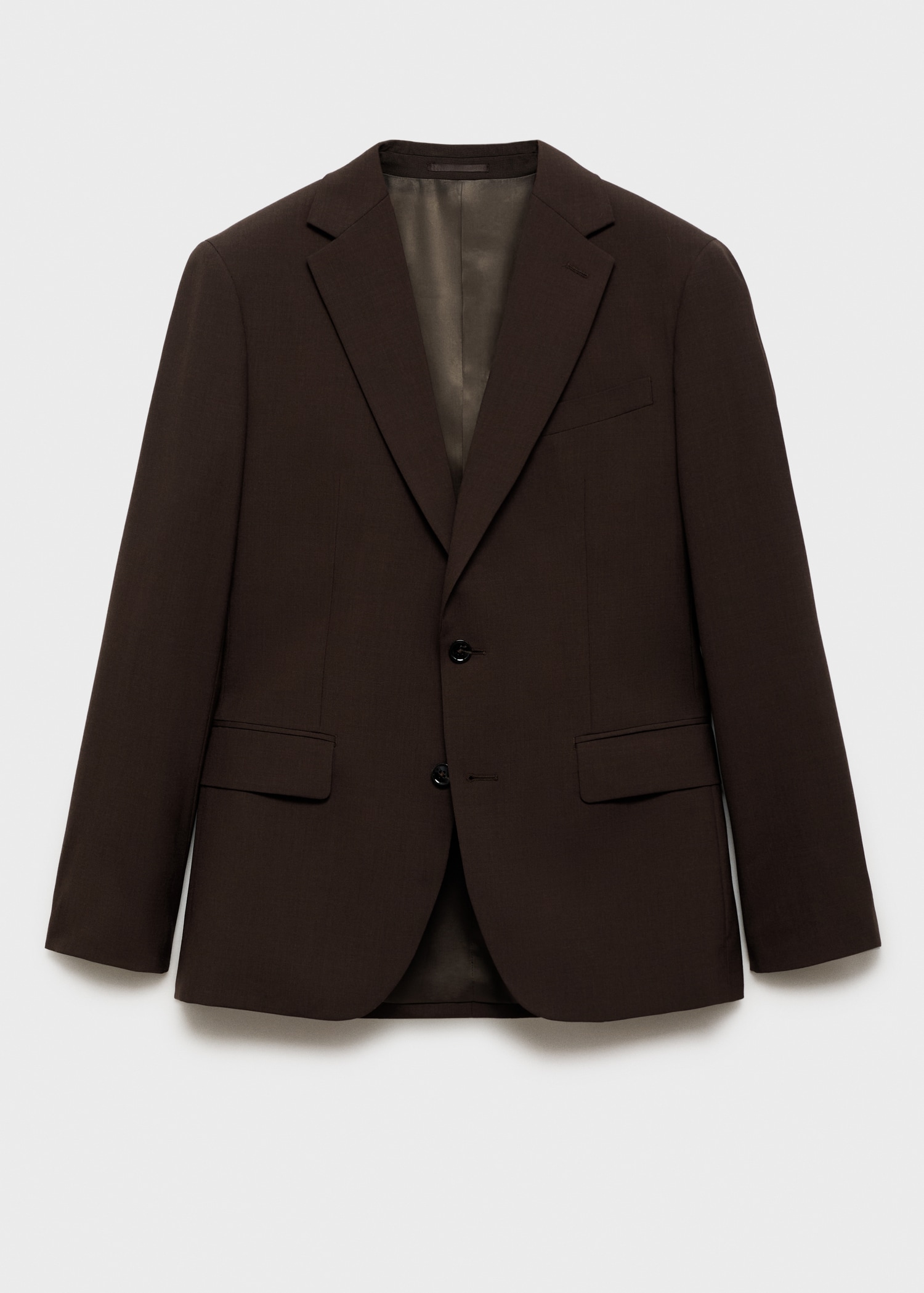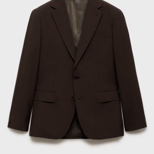 Casper Ruud x Mango Collection. 100% wool. Notched lapel collar. Two side flap welt pockets. Buttoned cuffs. Double button fastening. Chest welt pocket. Inner lining. ESSENTIALS: Made to last. We have strengthened our quality standards by adding new endurance tests to our garments. Designed with careful consideration of their construction, they are even more durable, versatile and timeless