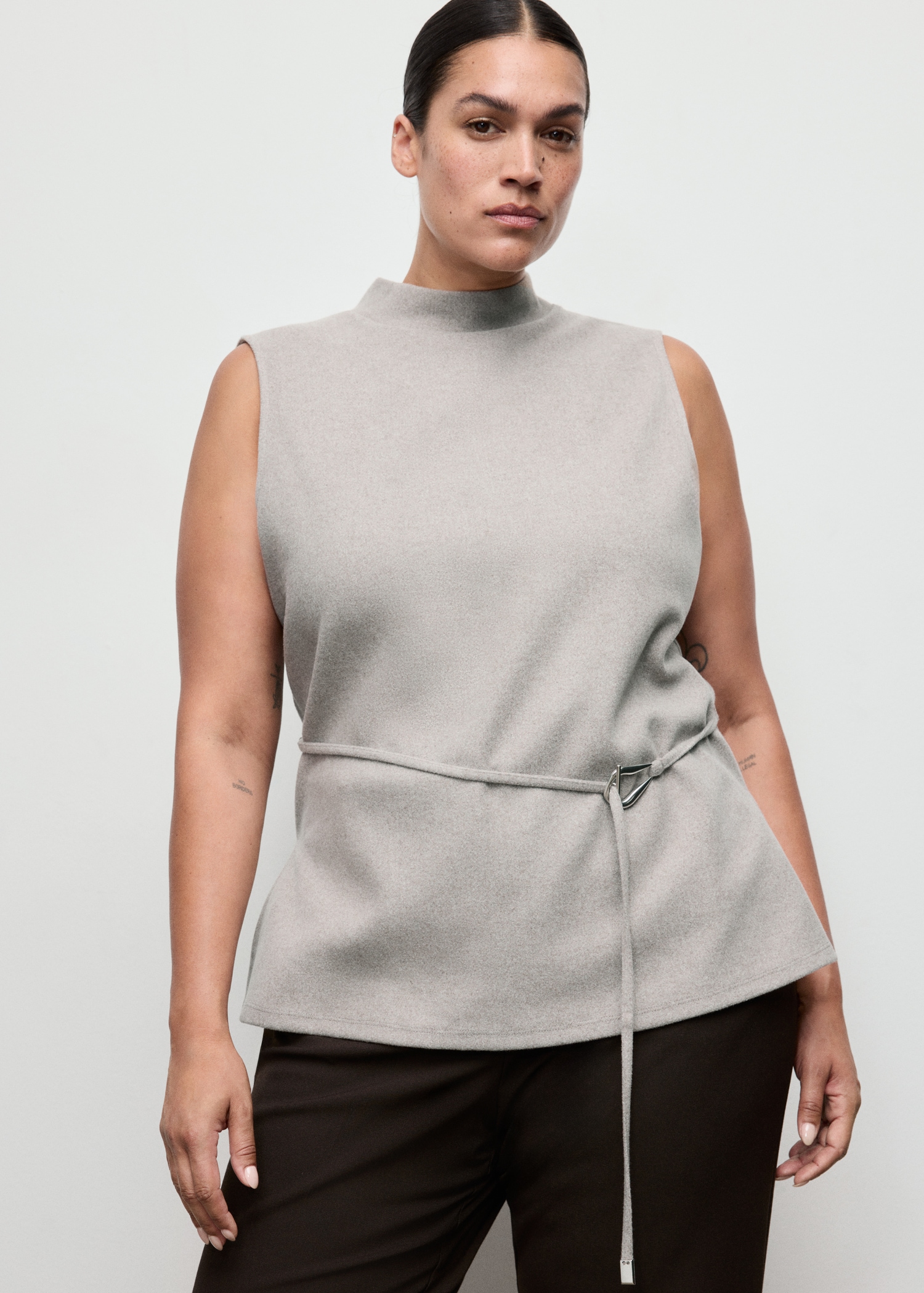 Turtleneck top with belt