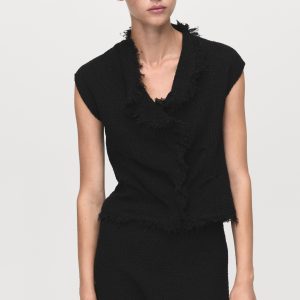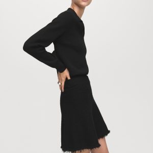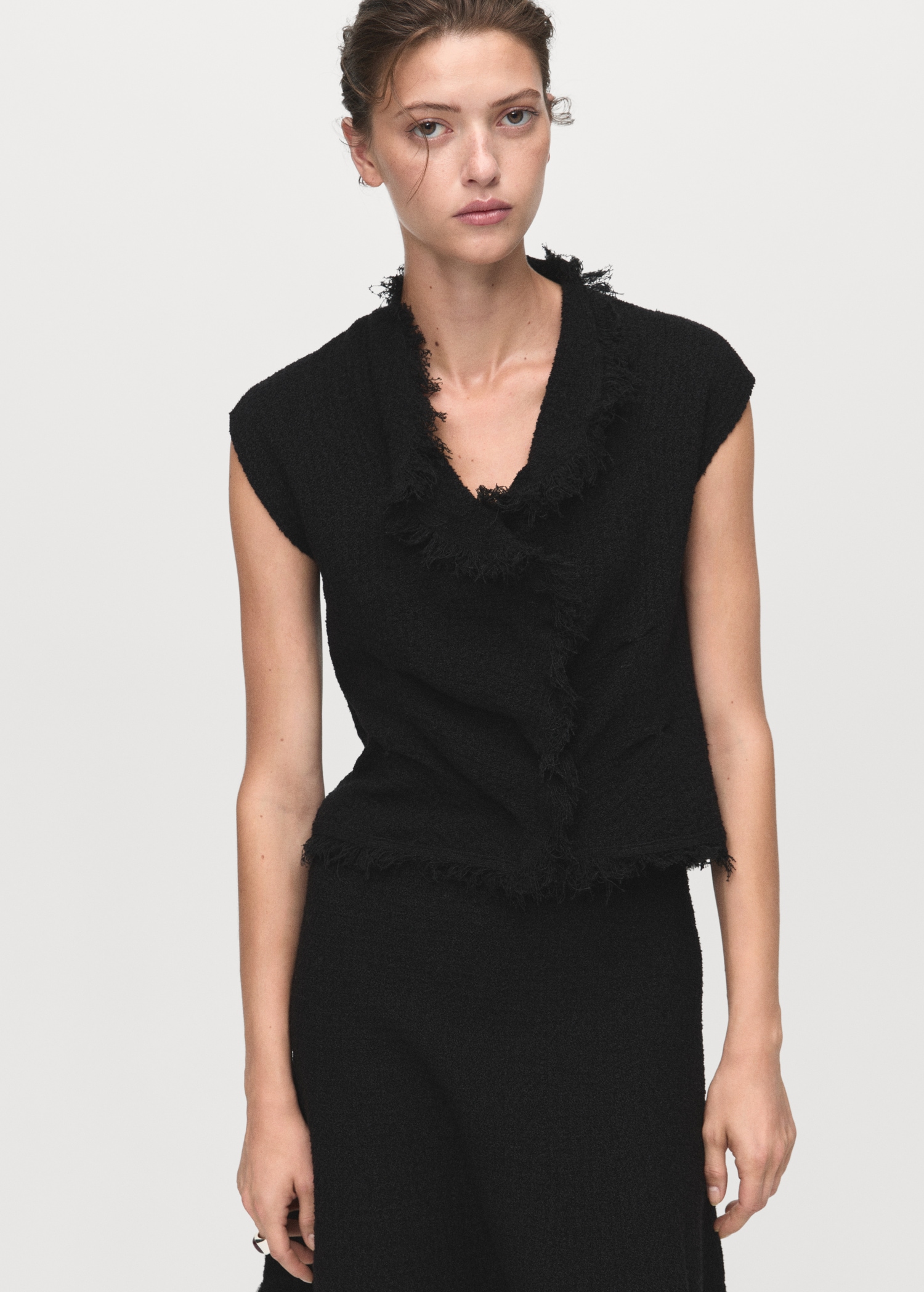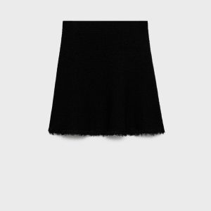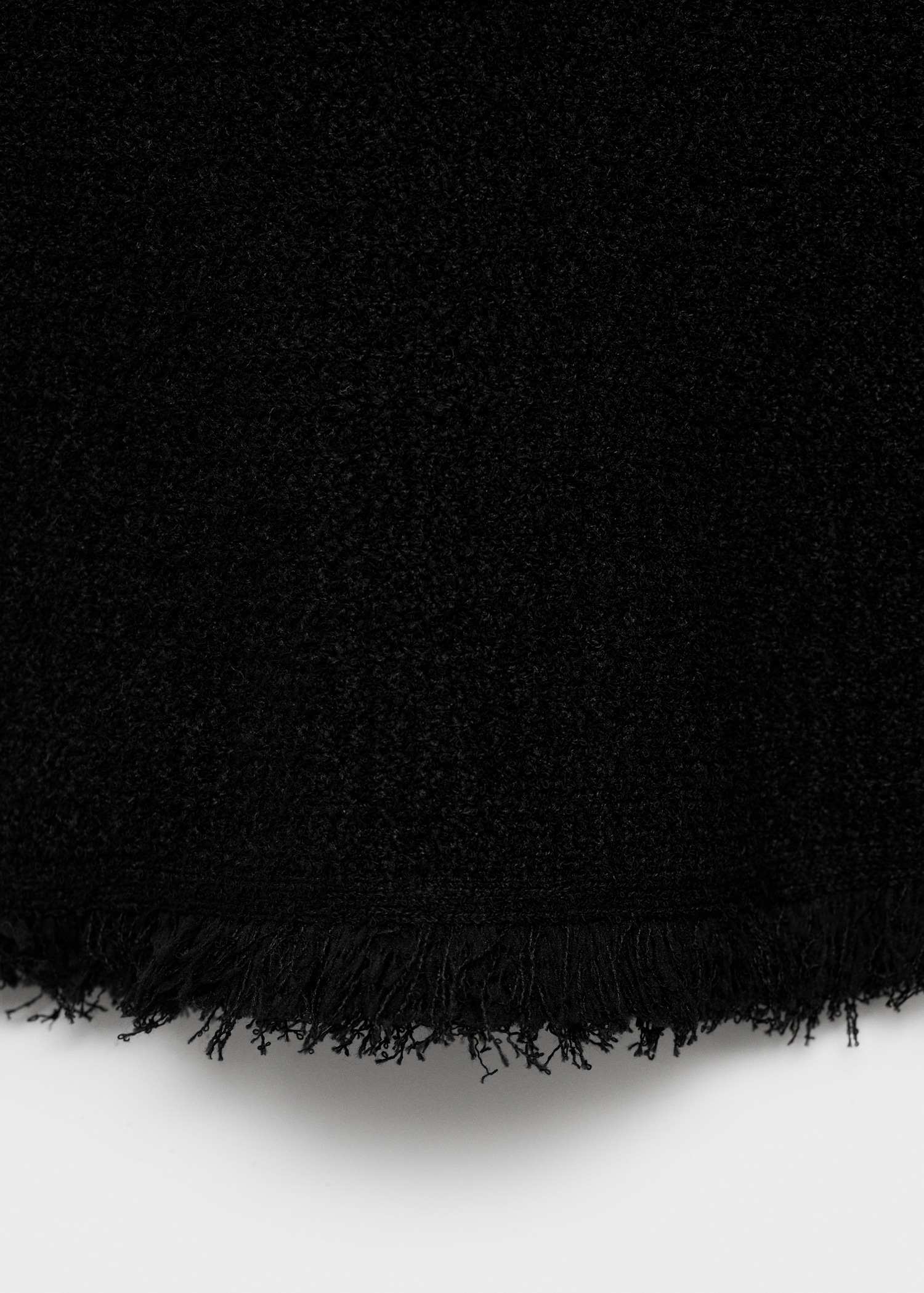 Crafted from a cotton-blend tweed fabric, this skirt features a short, tailored design with frayed edges. It comes with a matching top